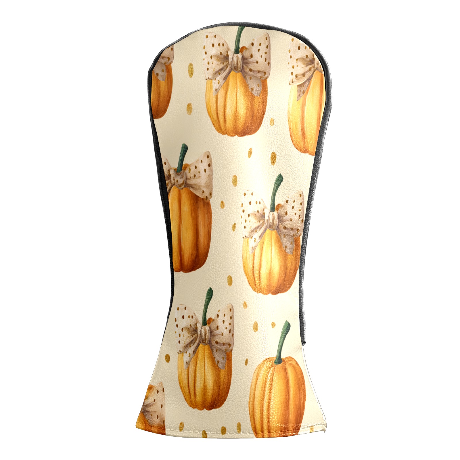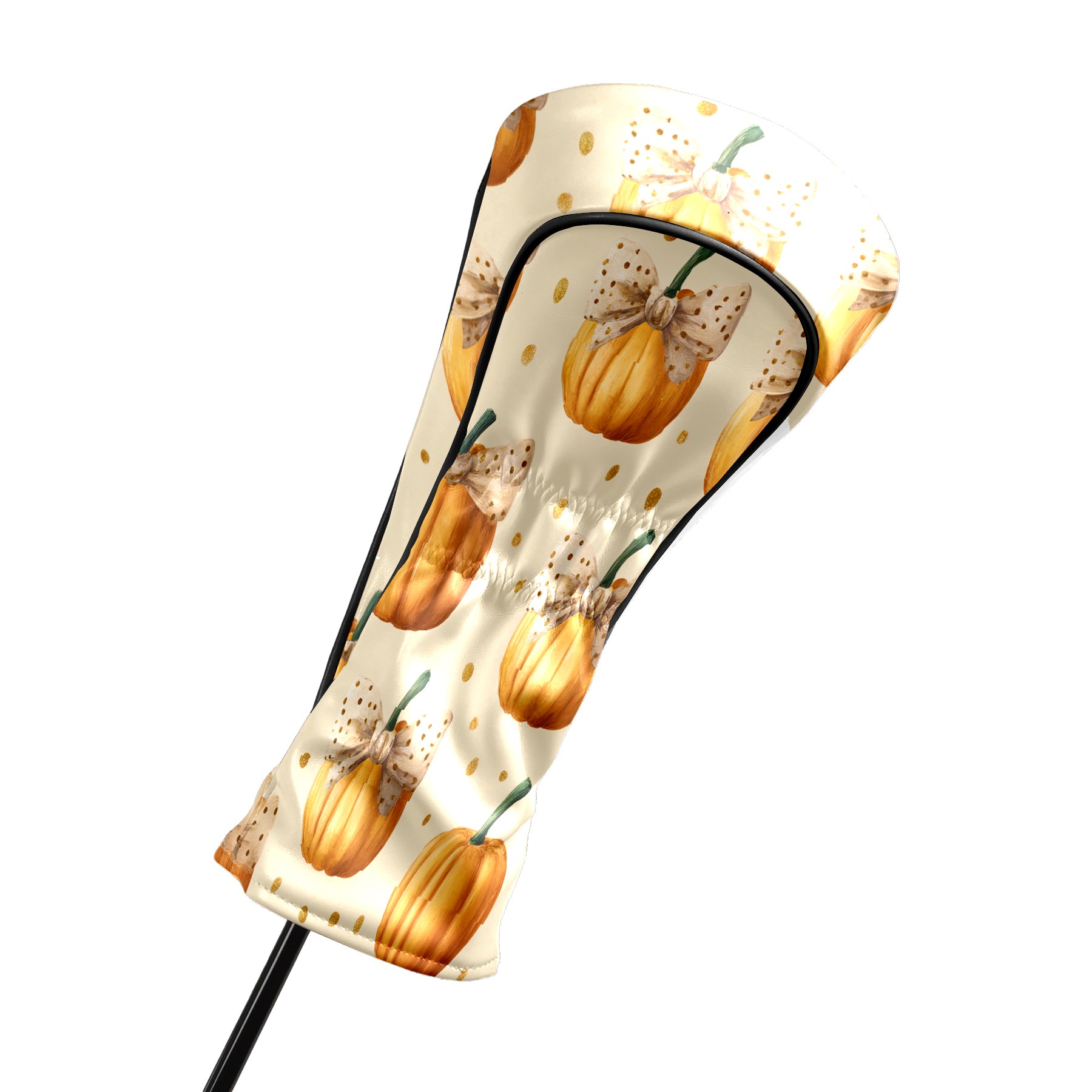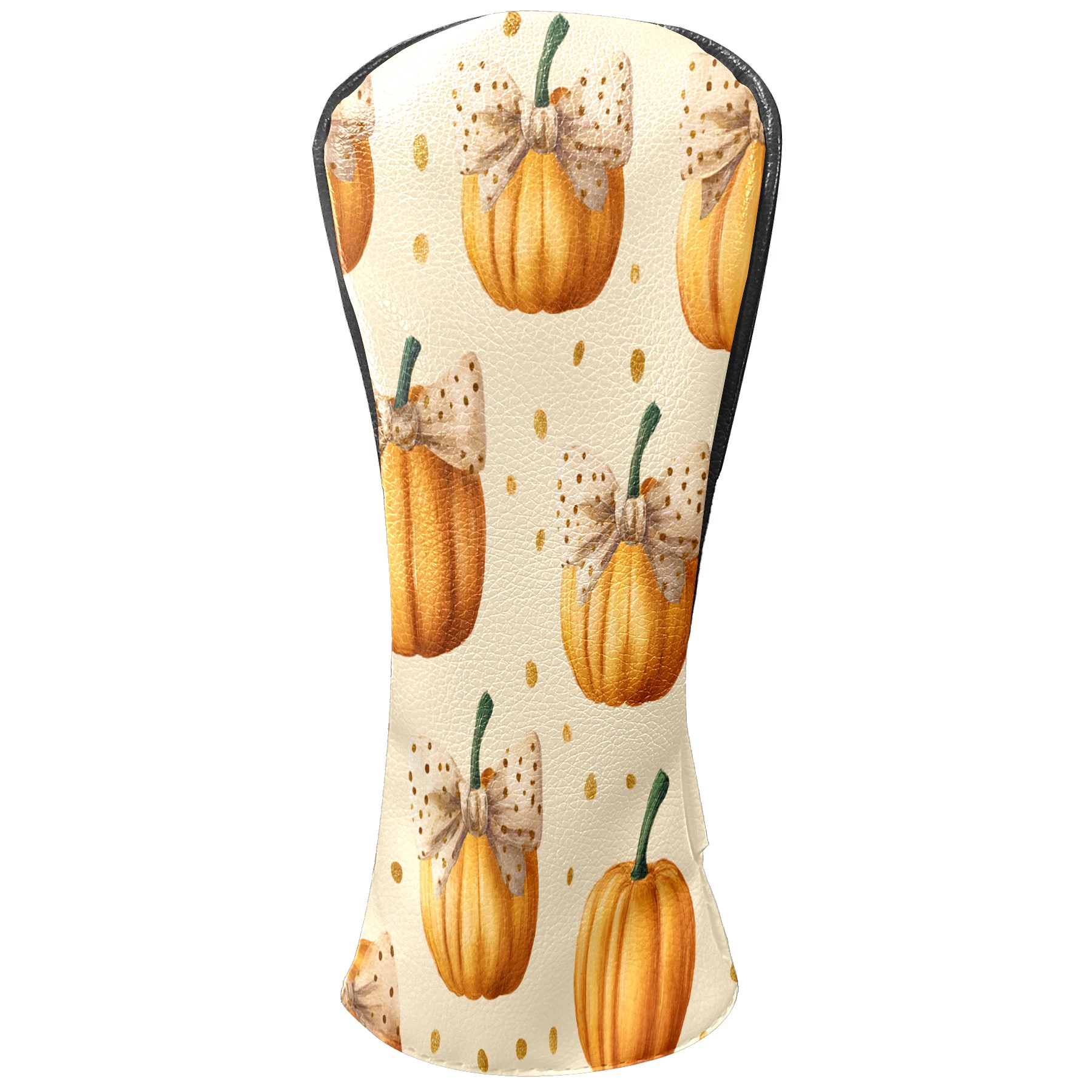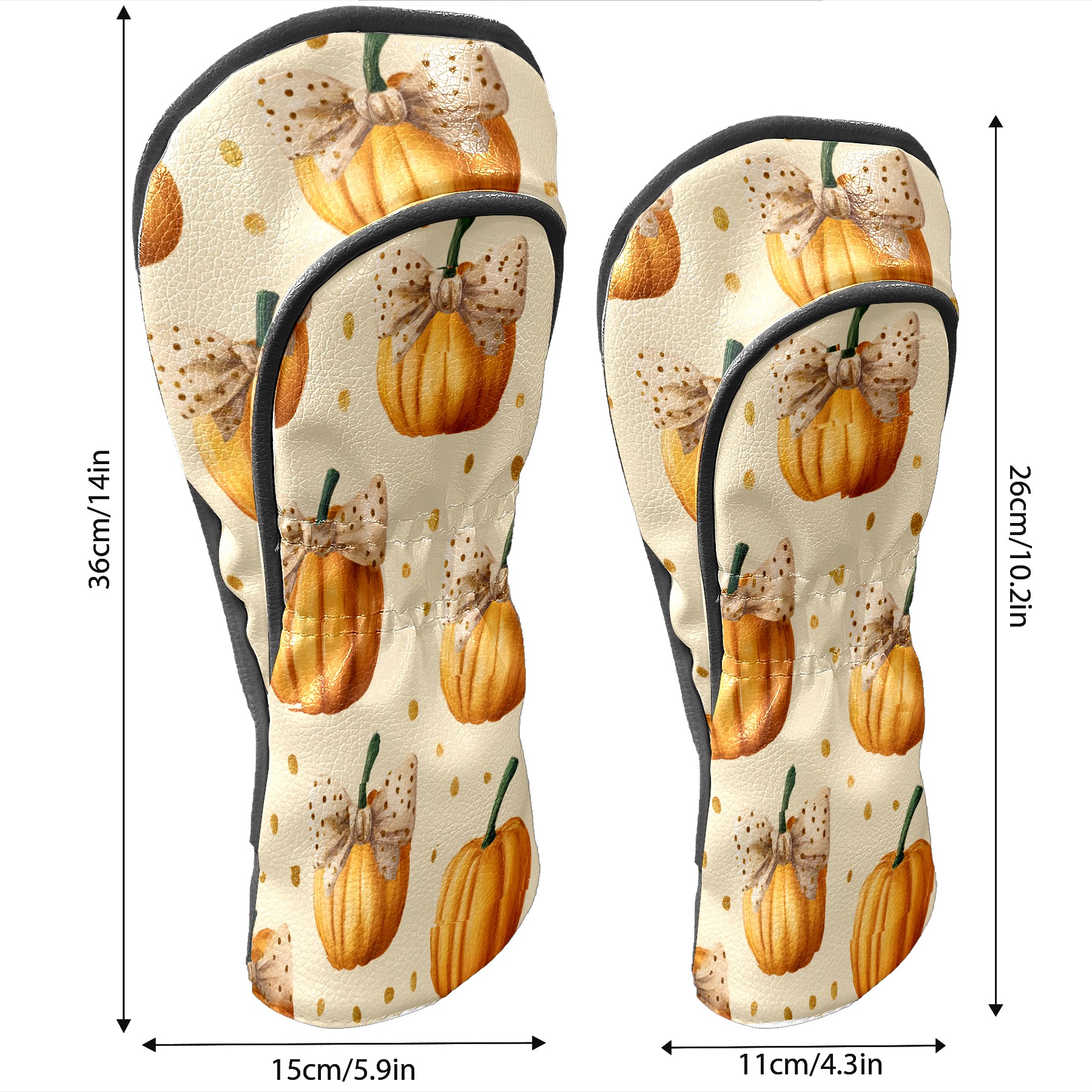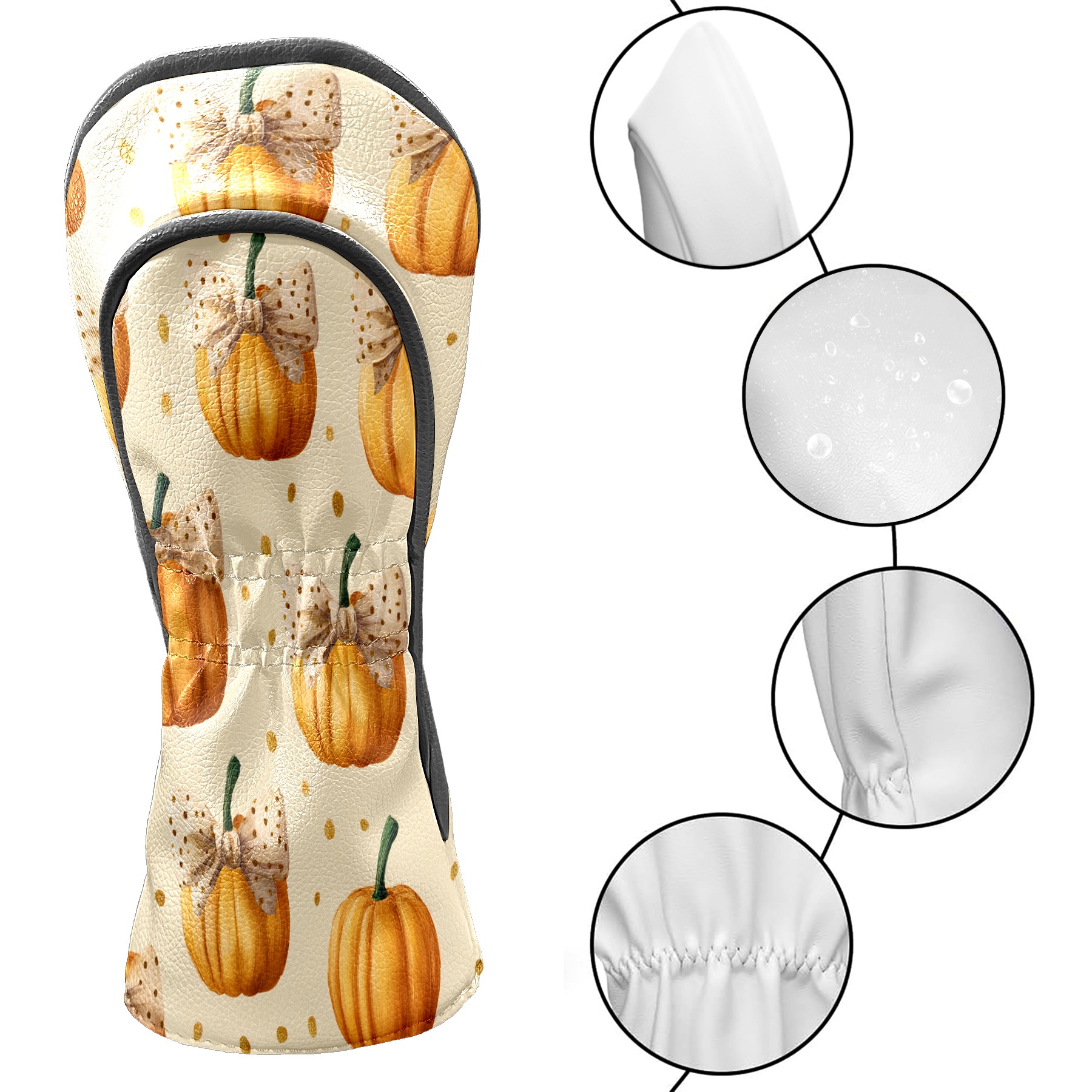 Golf Club Head Covers Counullo for Driver & Fairway Woods Orange PumpkinBow Premium Plush Velvet Lining, Waterproof Golf Headcovers for Scratch Protection Novelty Gift for Men & Women
