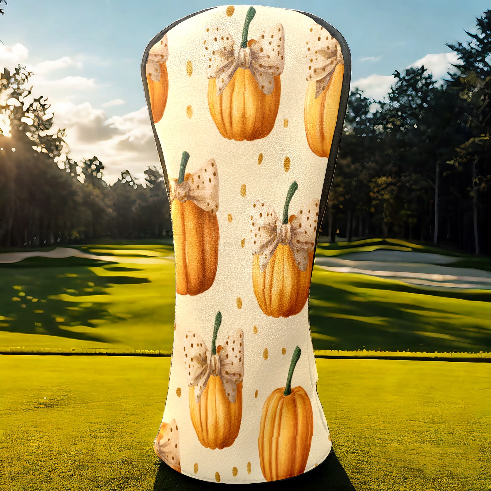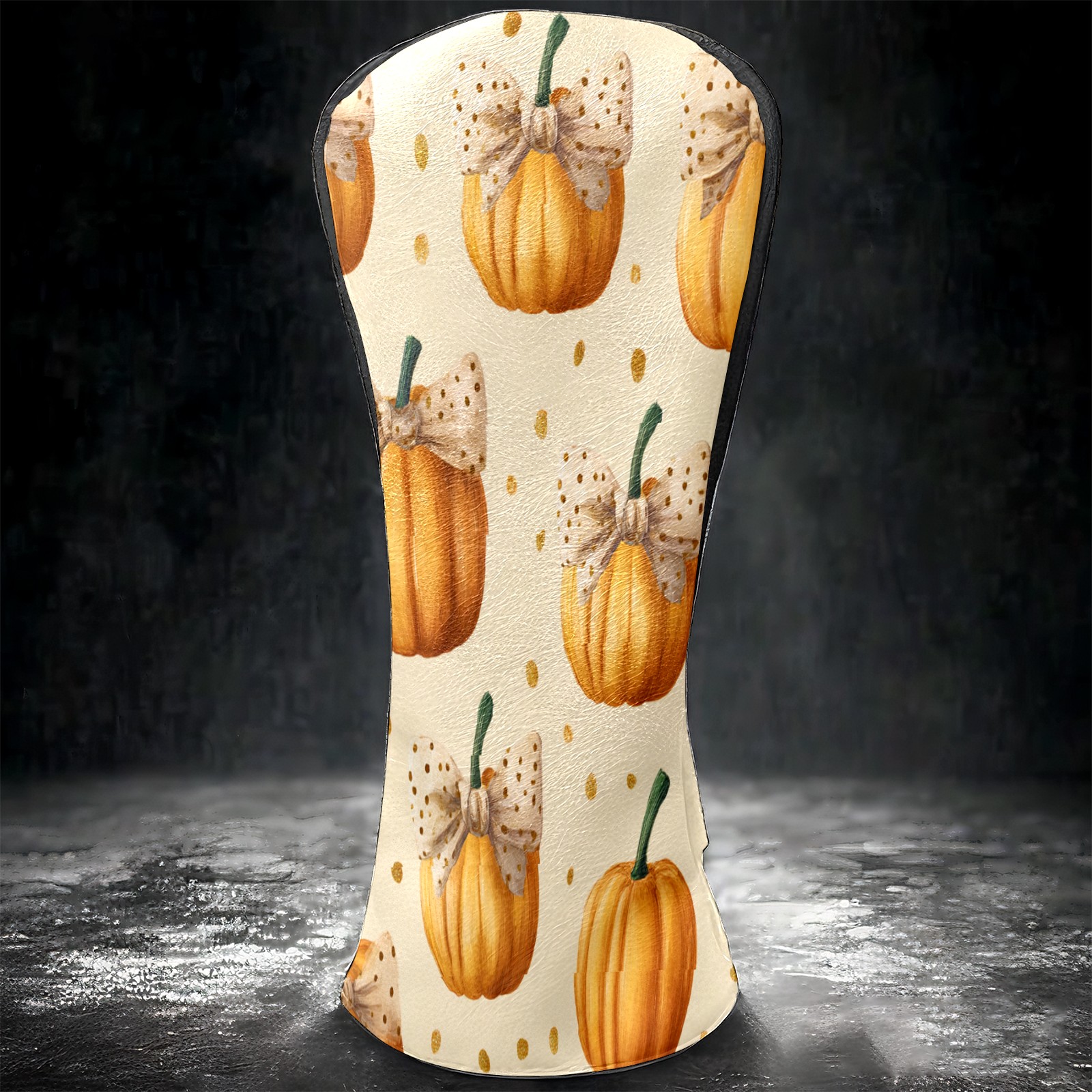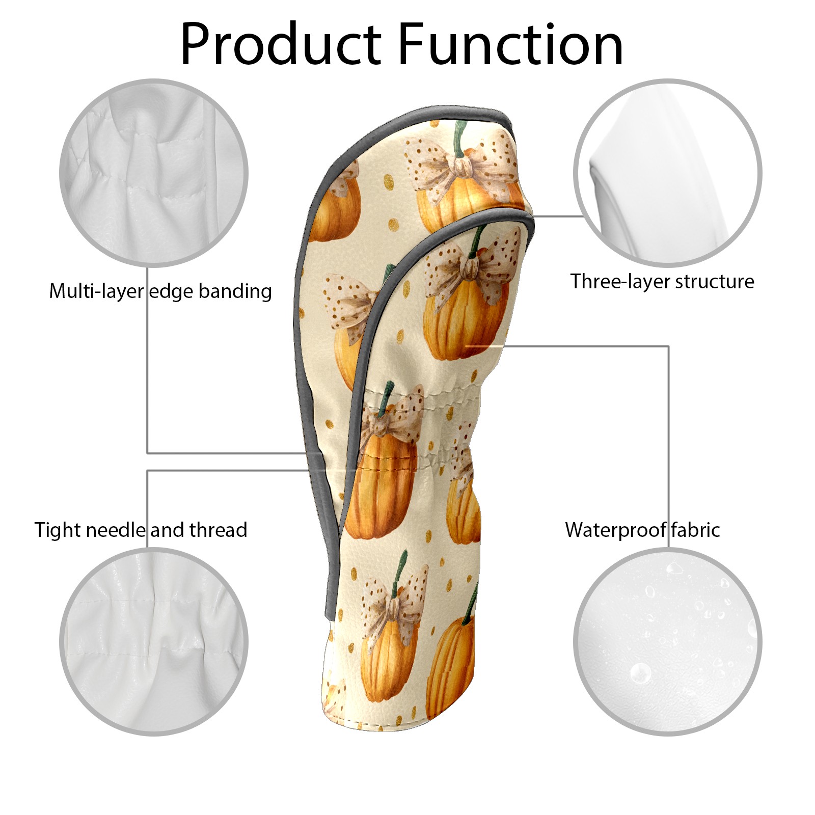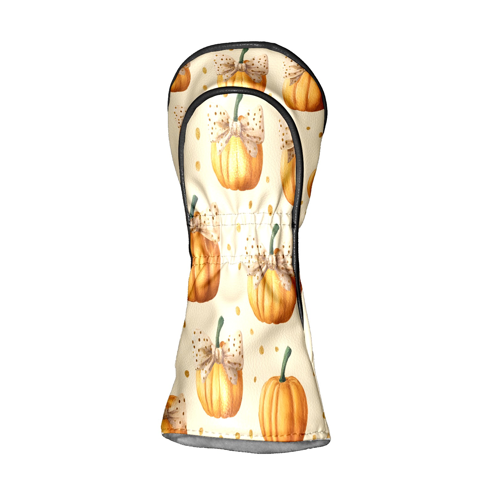 Golf Club Head Covers Counullo for Driver & Fairway Woods Orange PumpkinBow Premium Plush Velvet Lining, Waterproof Golf Headcovers for Scratch Protection Novelty Gift for Men & Women