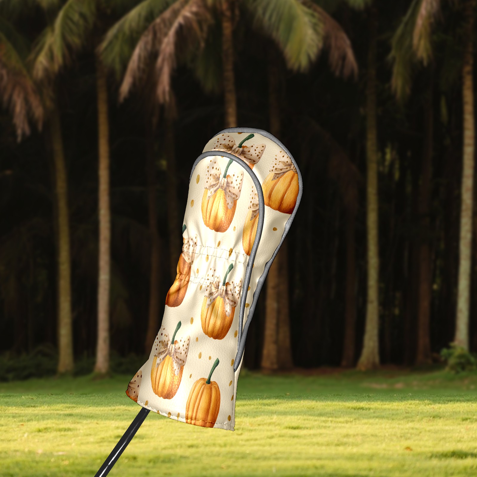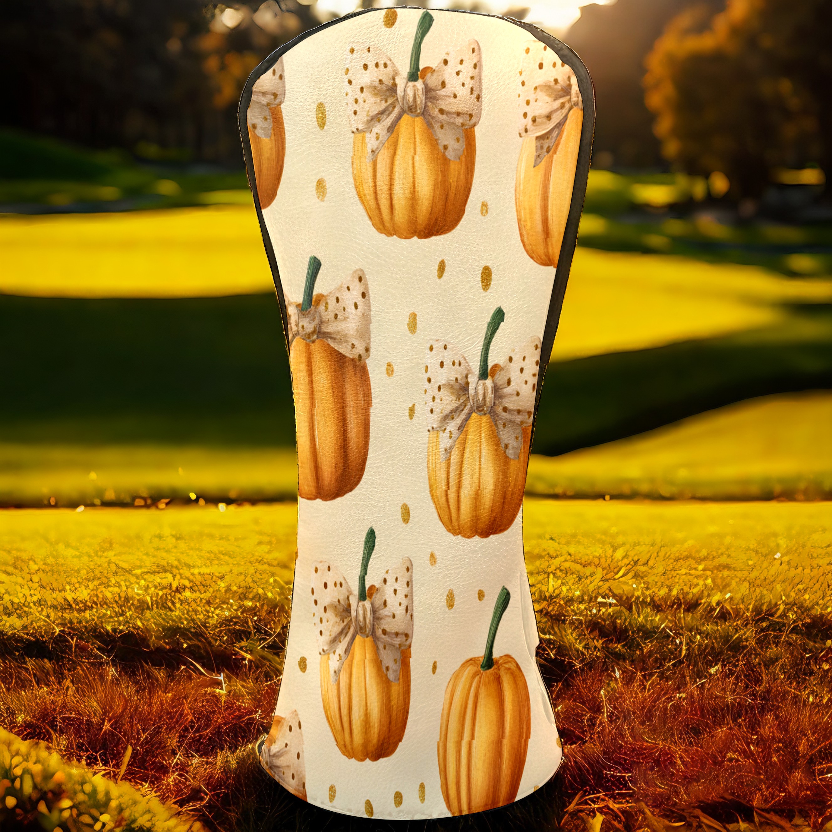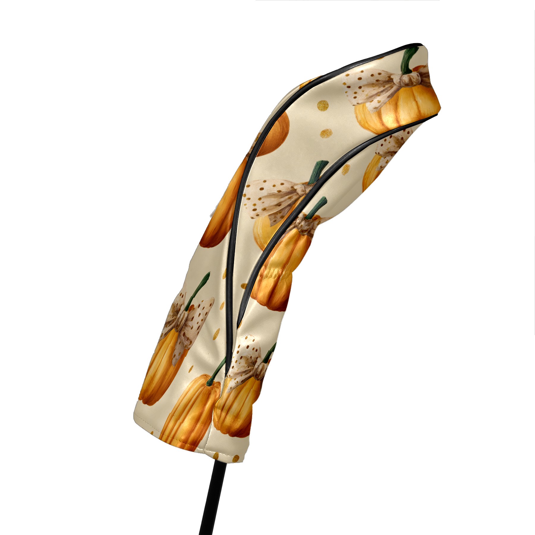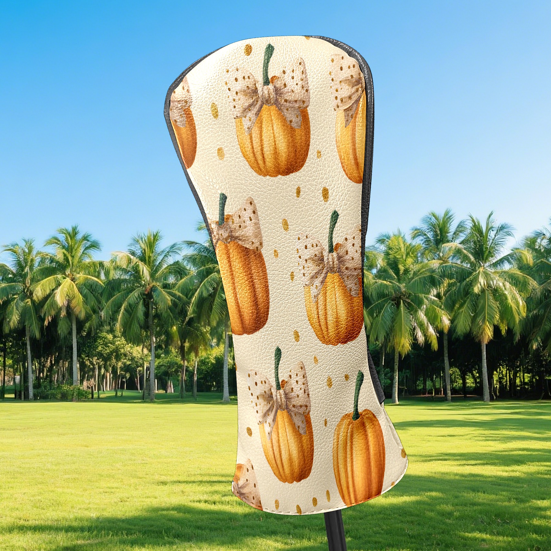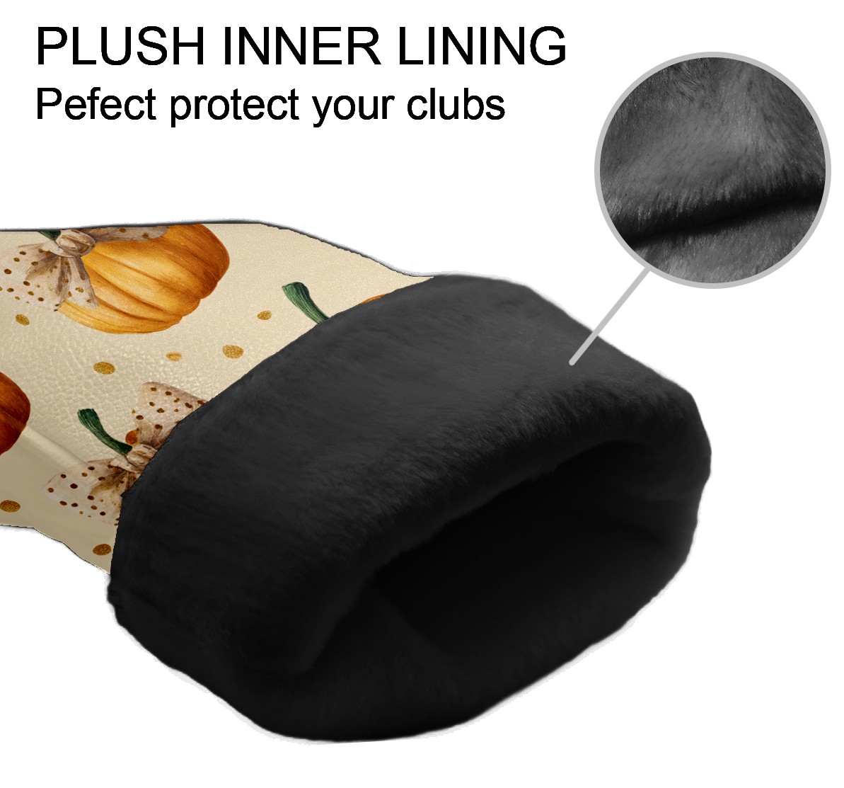 Golf Club Head Covers Counullo for Driver & Fairway Woods Orange PumpkinBow Premium Plush Velvet Lining, Waterproof Golf Headcovers for Scratch Protection Novelty Gift for Men & Women