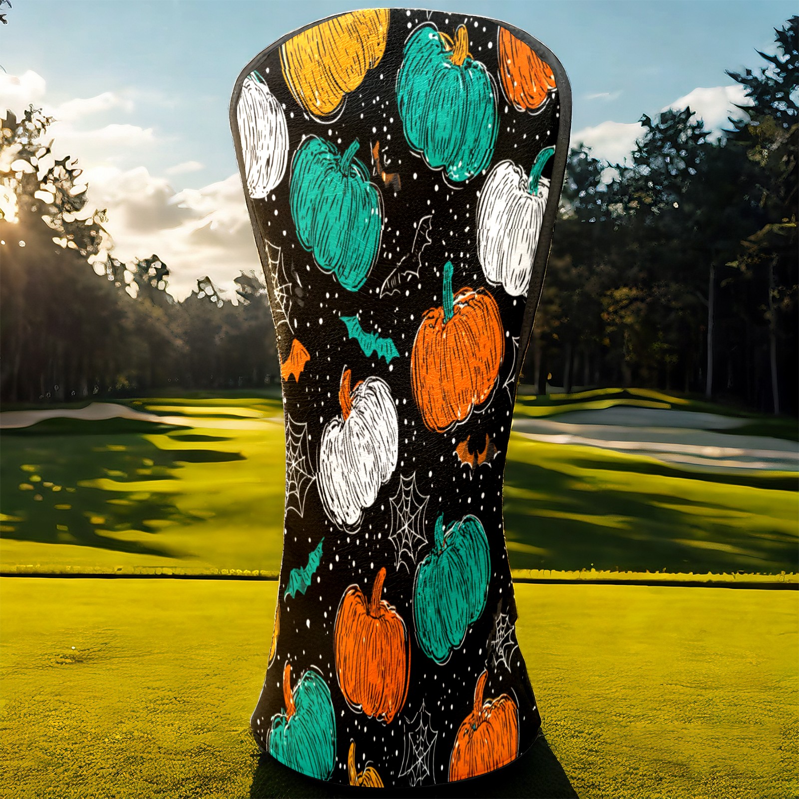 Golf Club Head Covers Counullo for Driver & Fairway Woods Multicolor Pumpkin Premium Plush Velvet Lining, Waterproof Golf Headcovers for Scratch Protection Novelty Gift for Men & Women