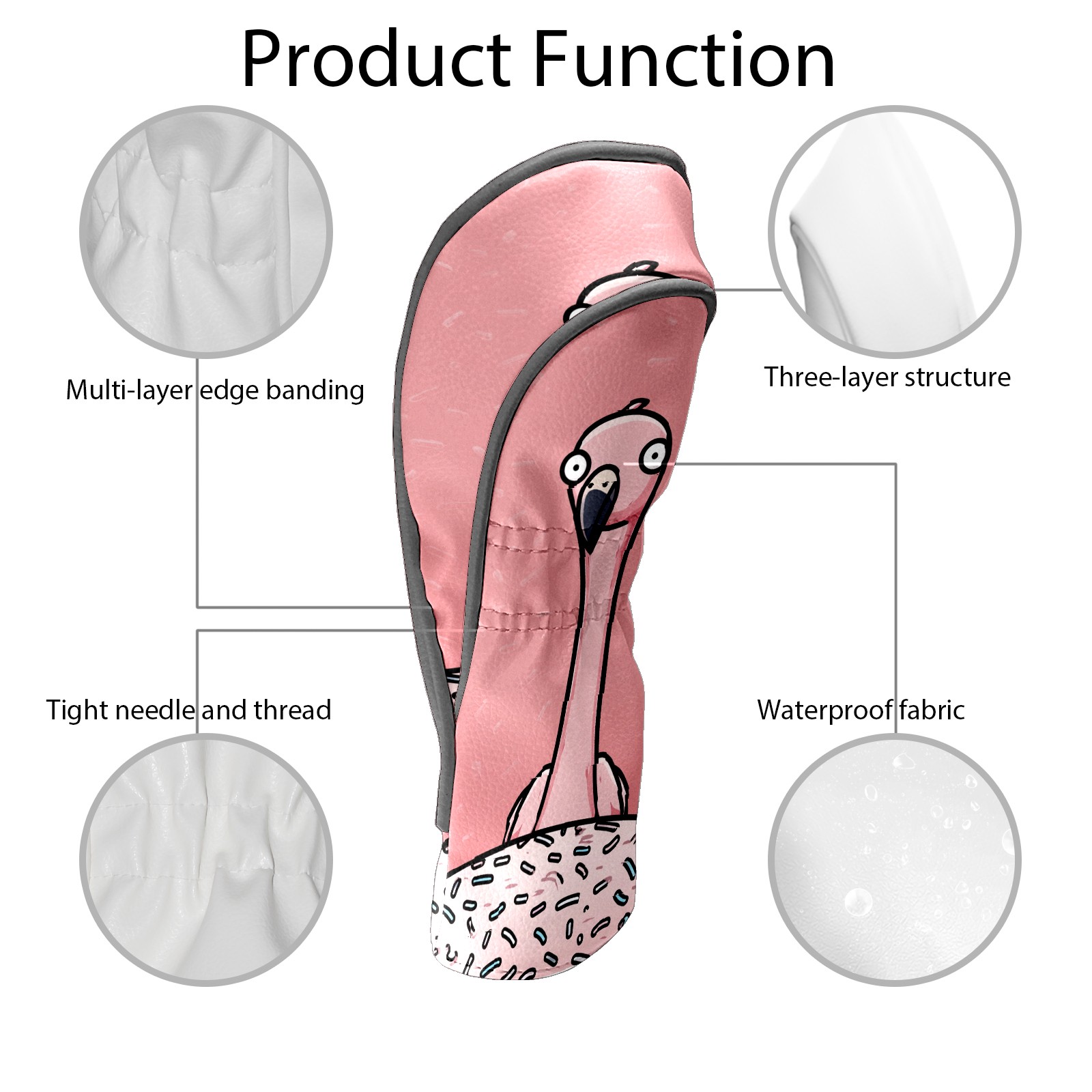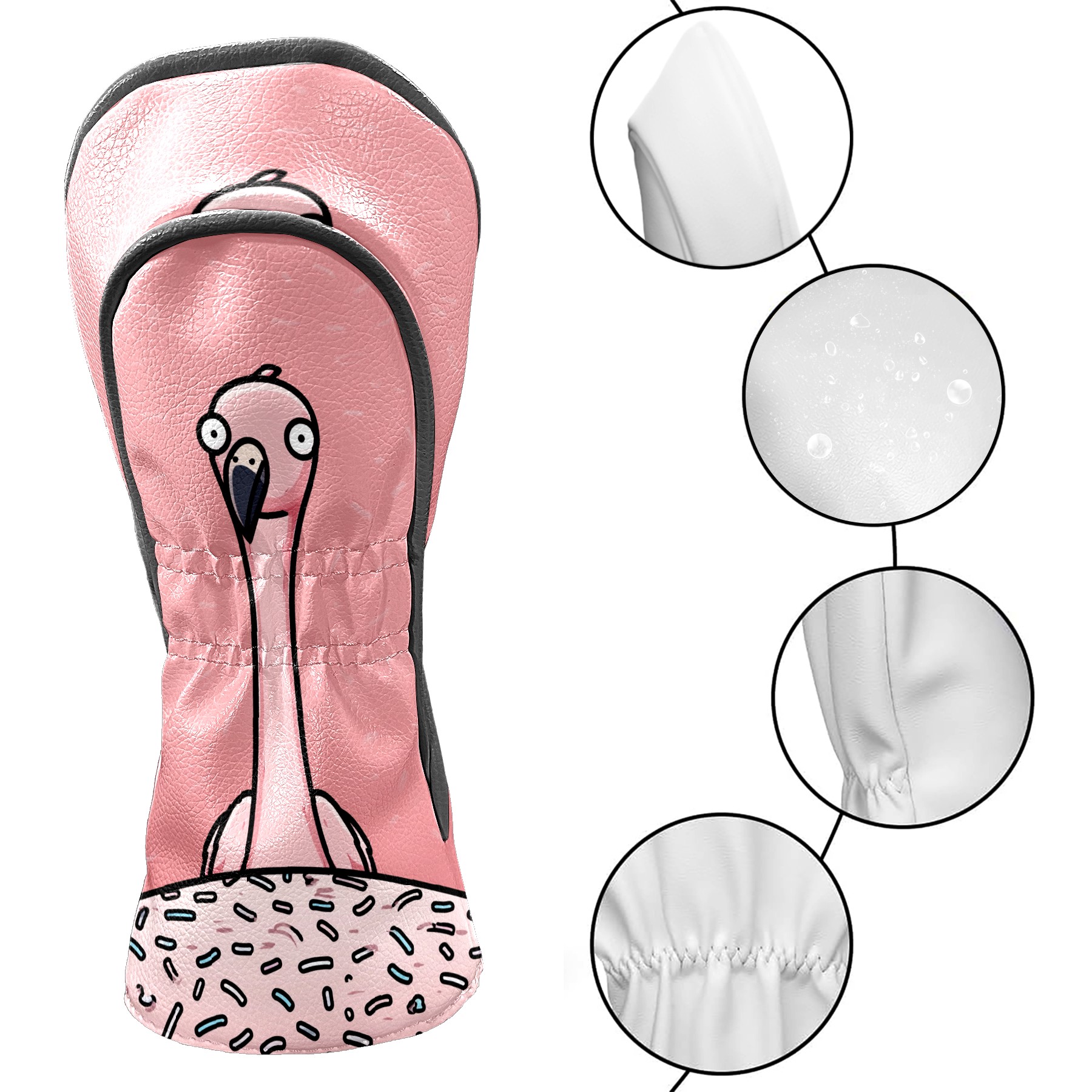 Golf Club Head Covers Counullo for Driver & Fairway Woods Red Flamingo Premium Plush Velvet Lining, Waterproof Golf Headcovers for Scratch Protection Novelty Gift for Men & Women