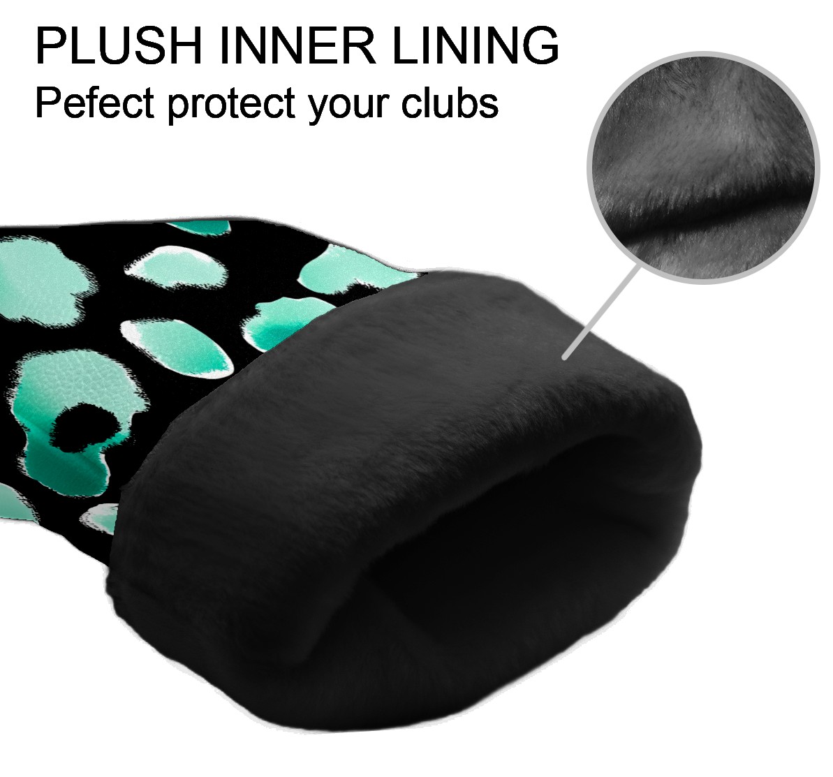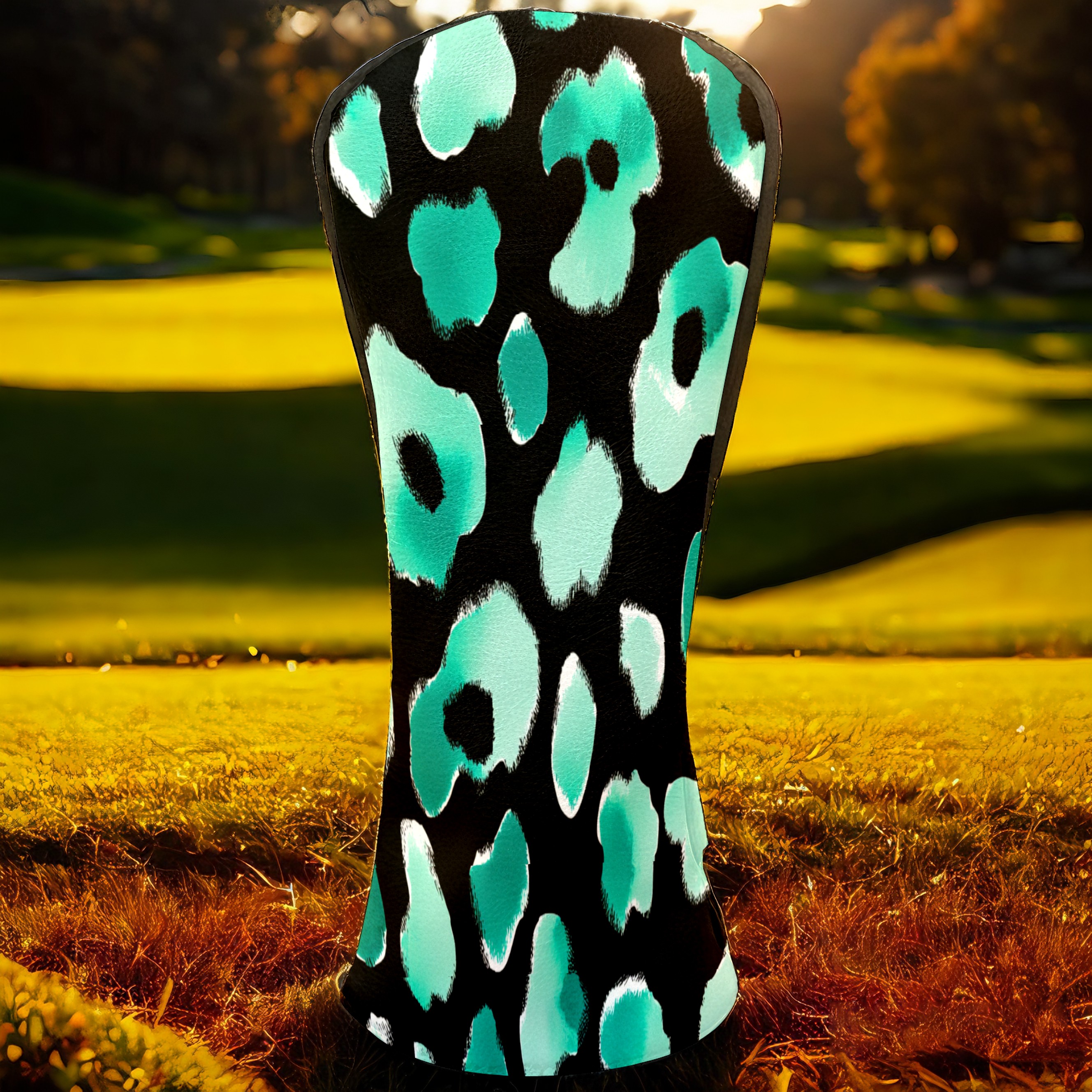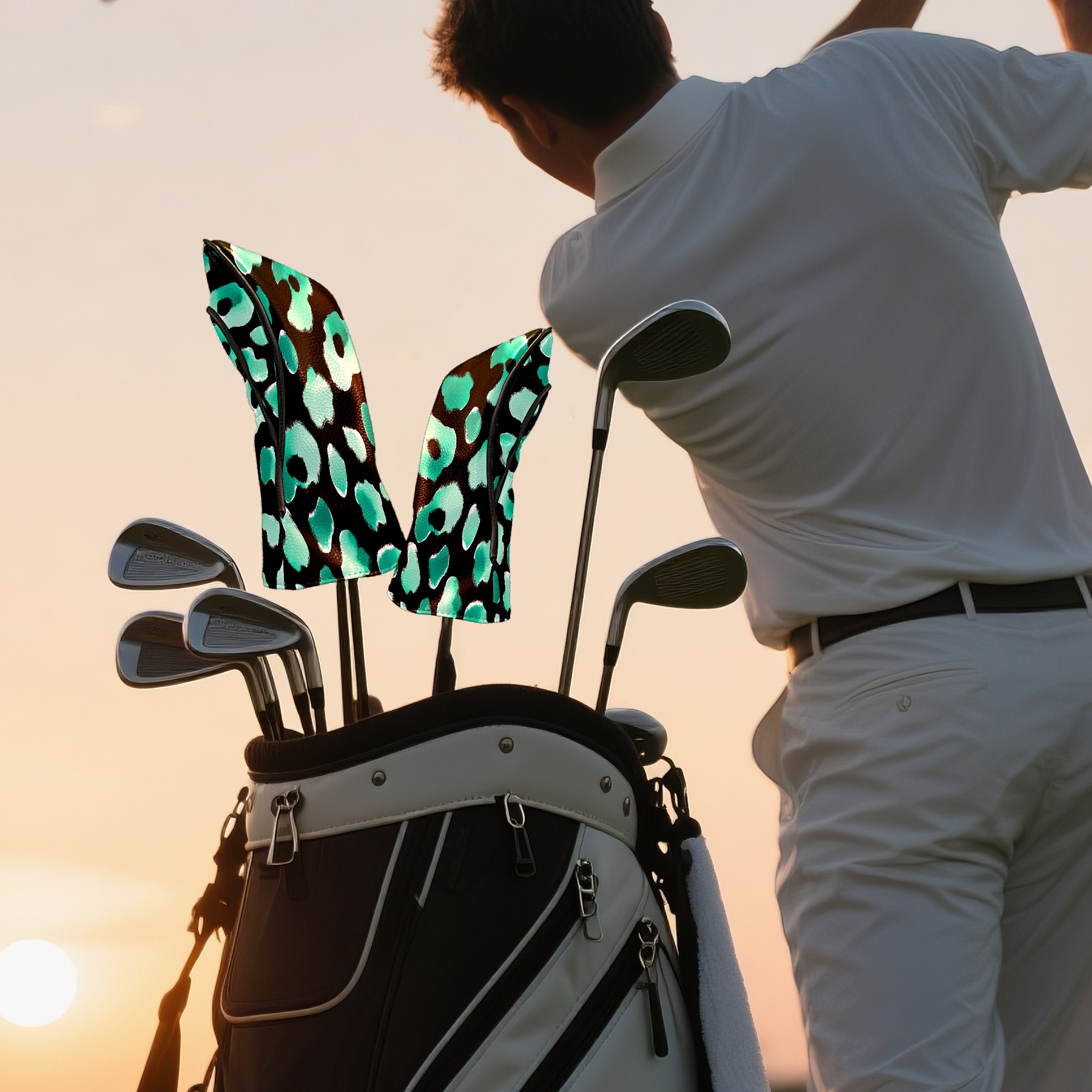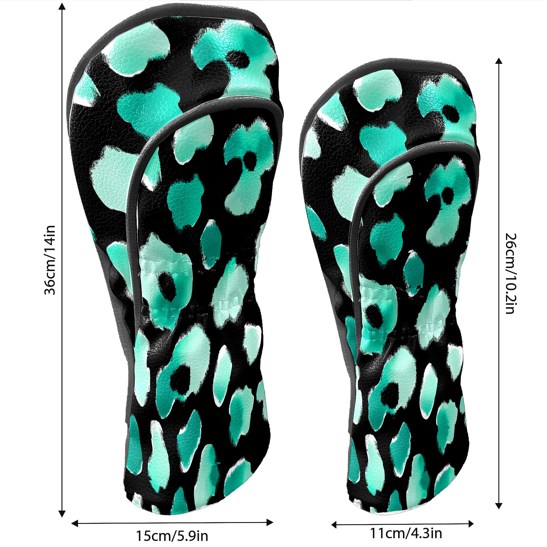 Golf Club Head Covers Counullo for Driver & Fairway Woods Turquoise Leopard Premium Plush Velvet Lining, Waterproof Golf Headcovers for Scratch Protection Novelty Gift for Men & Women
