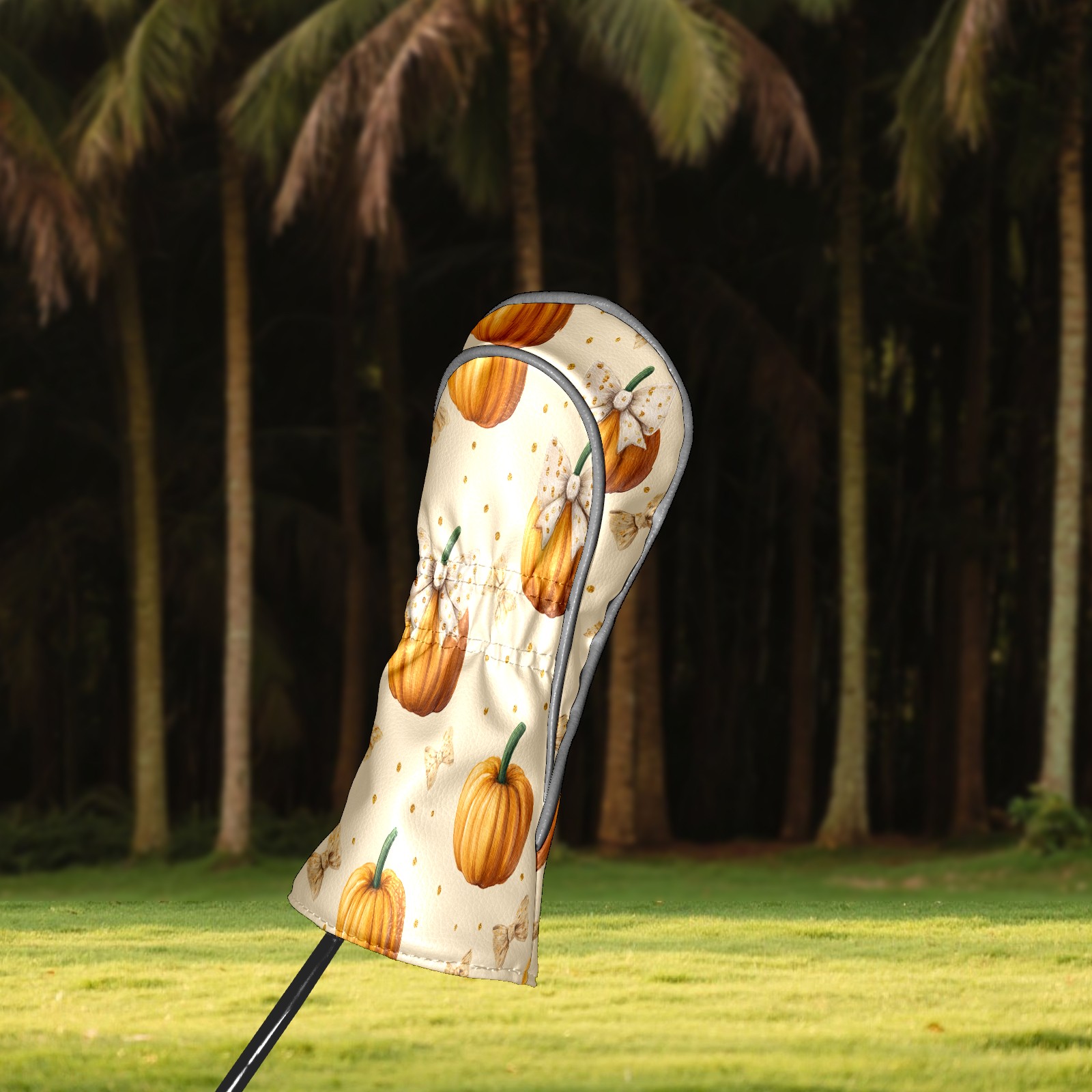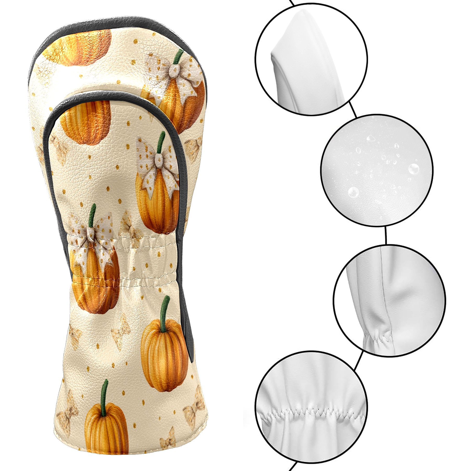 Golf Club Head Covers Counullo for Driver & Fairway Woods Beige Pumpkin Premium Plush Velvet Lining, Waterproof Golf Headcovers for Scratch Protection Novelty Gift for Men & Women