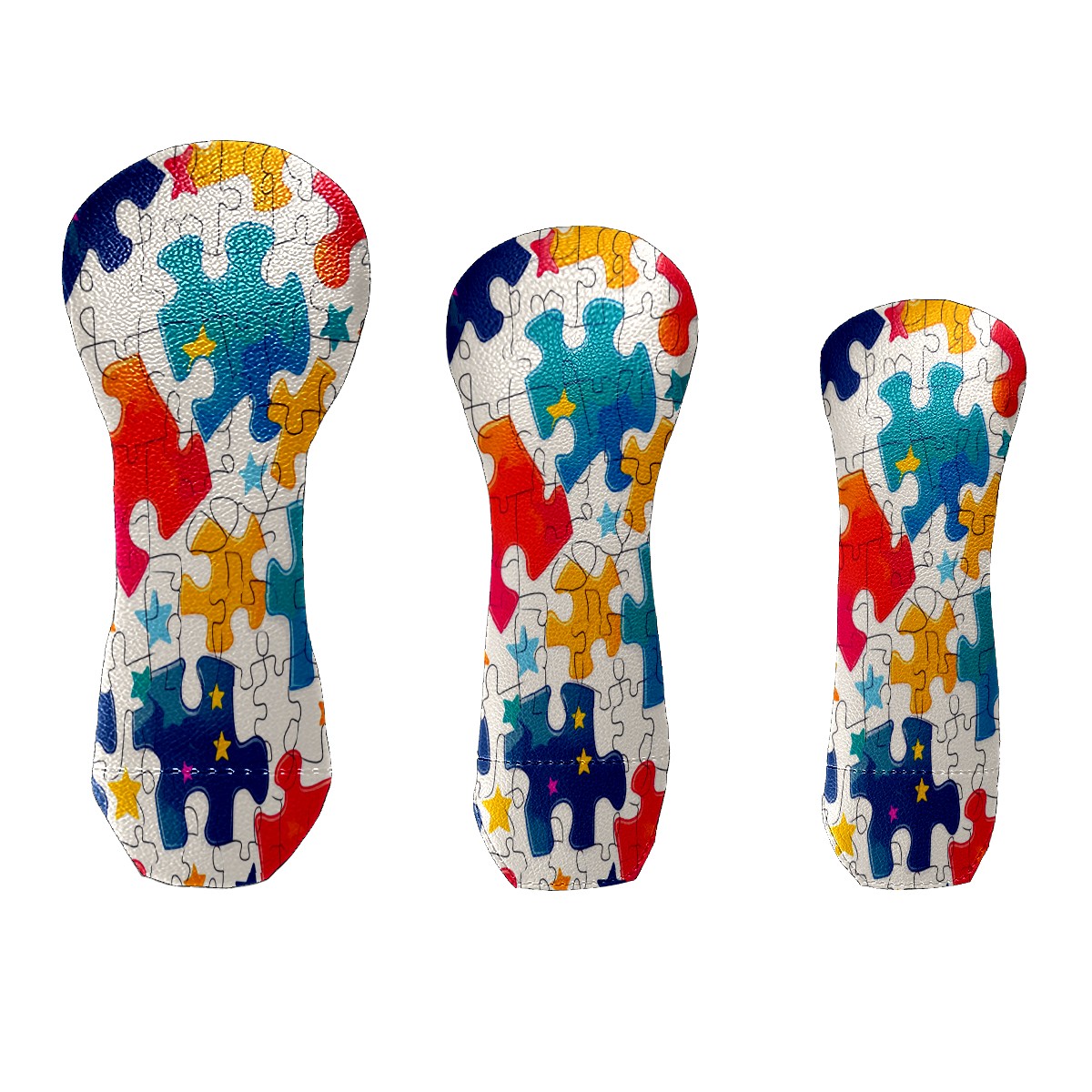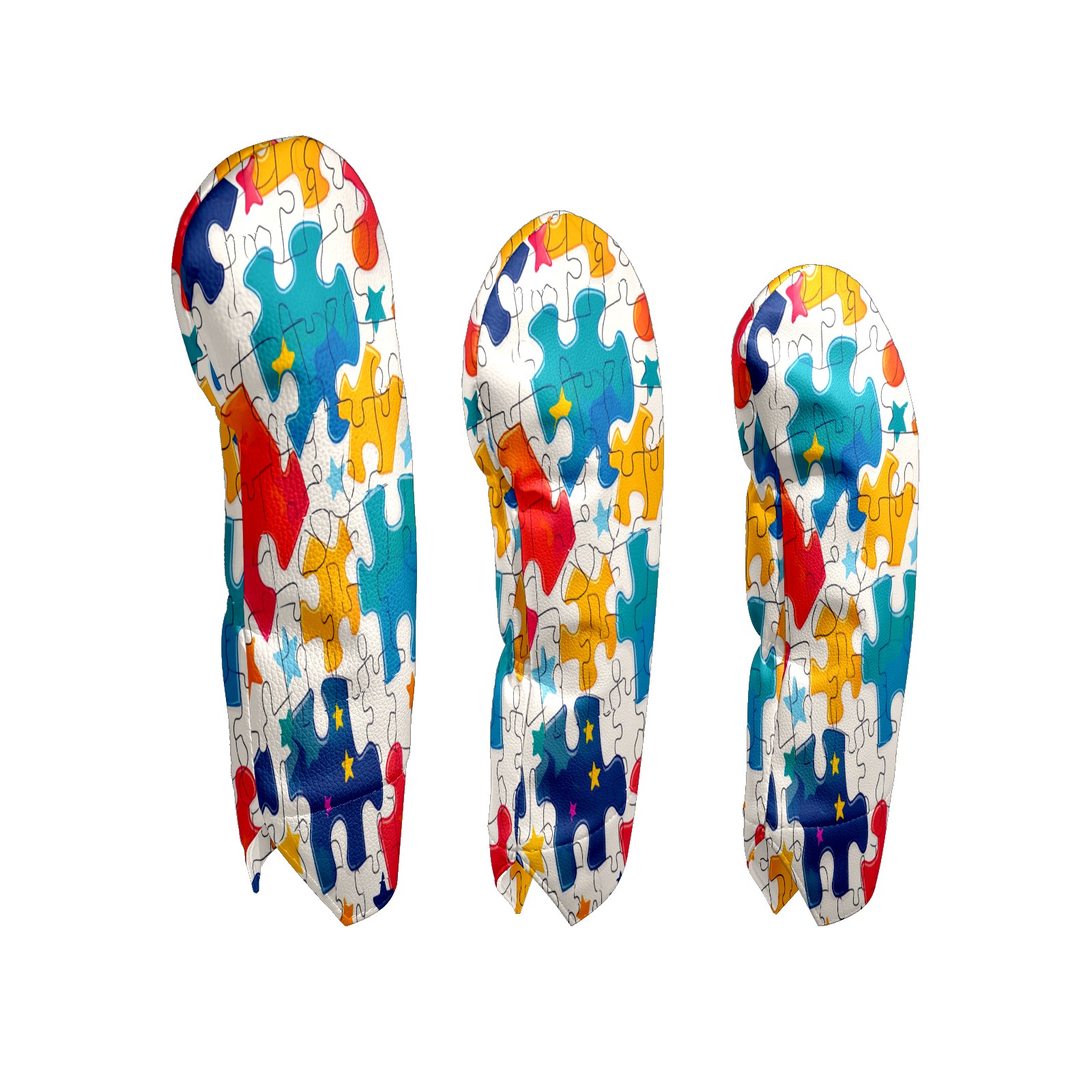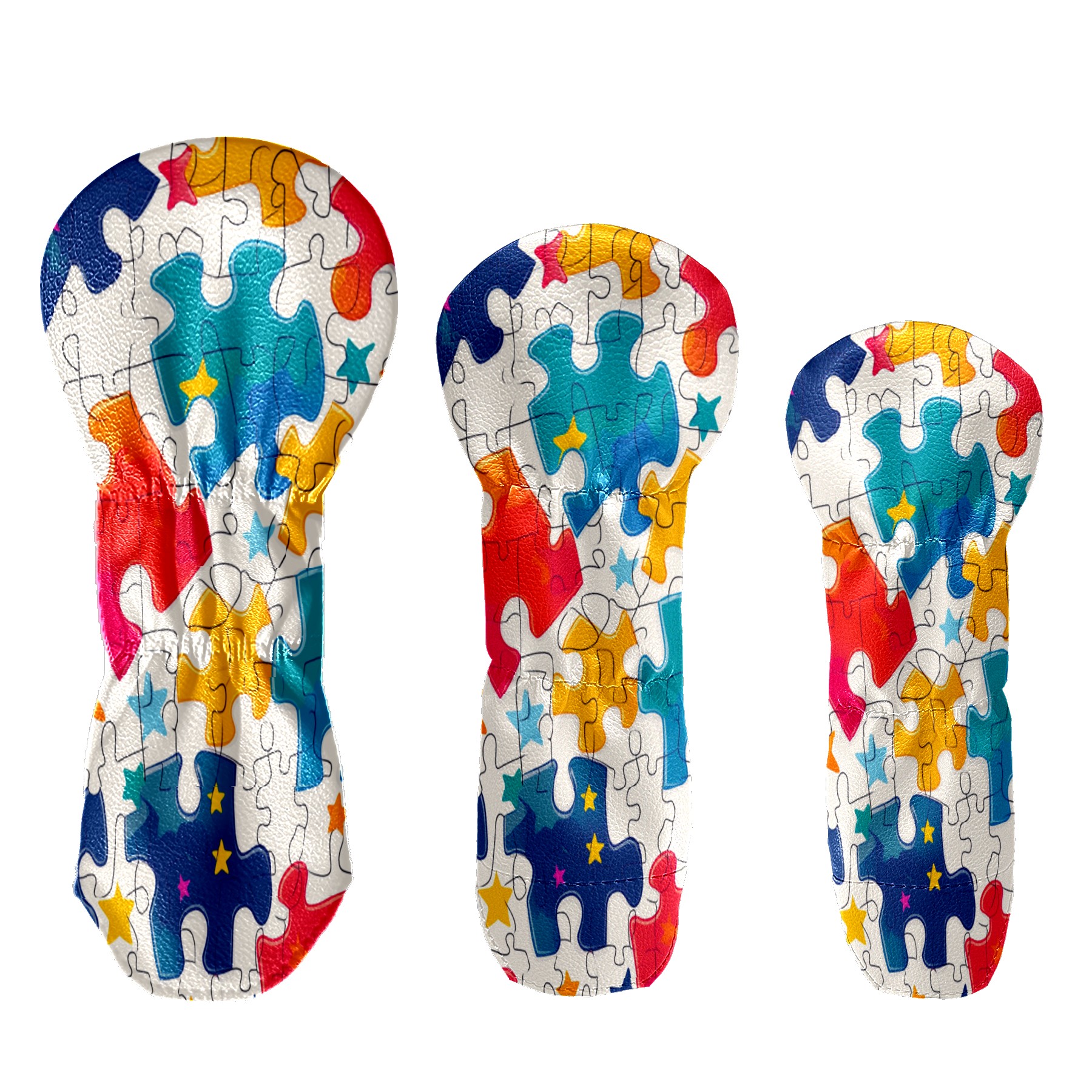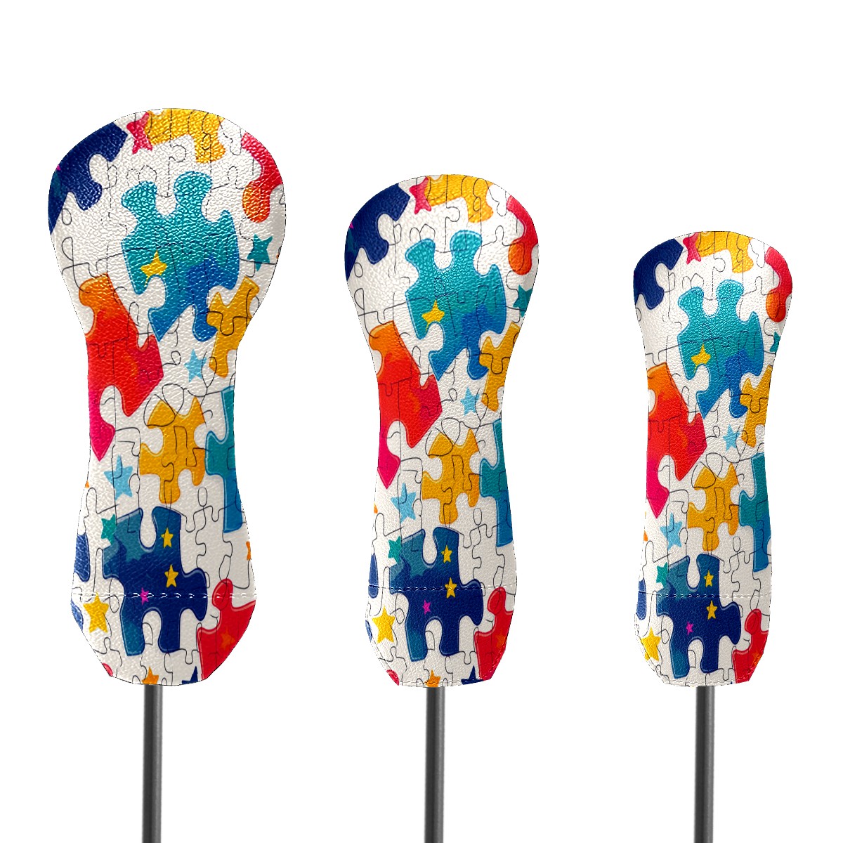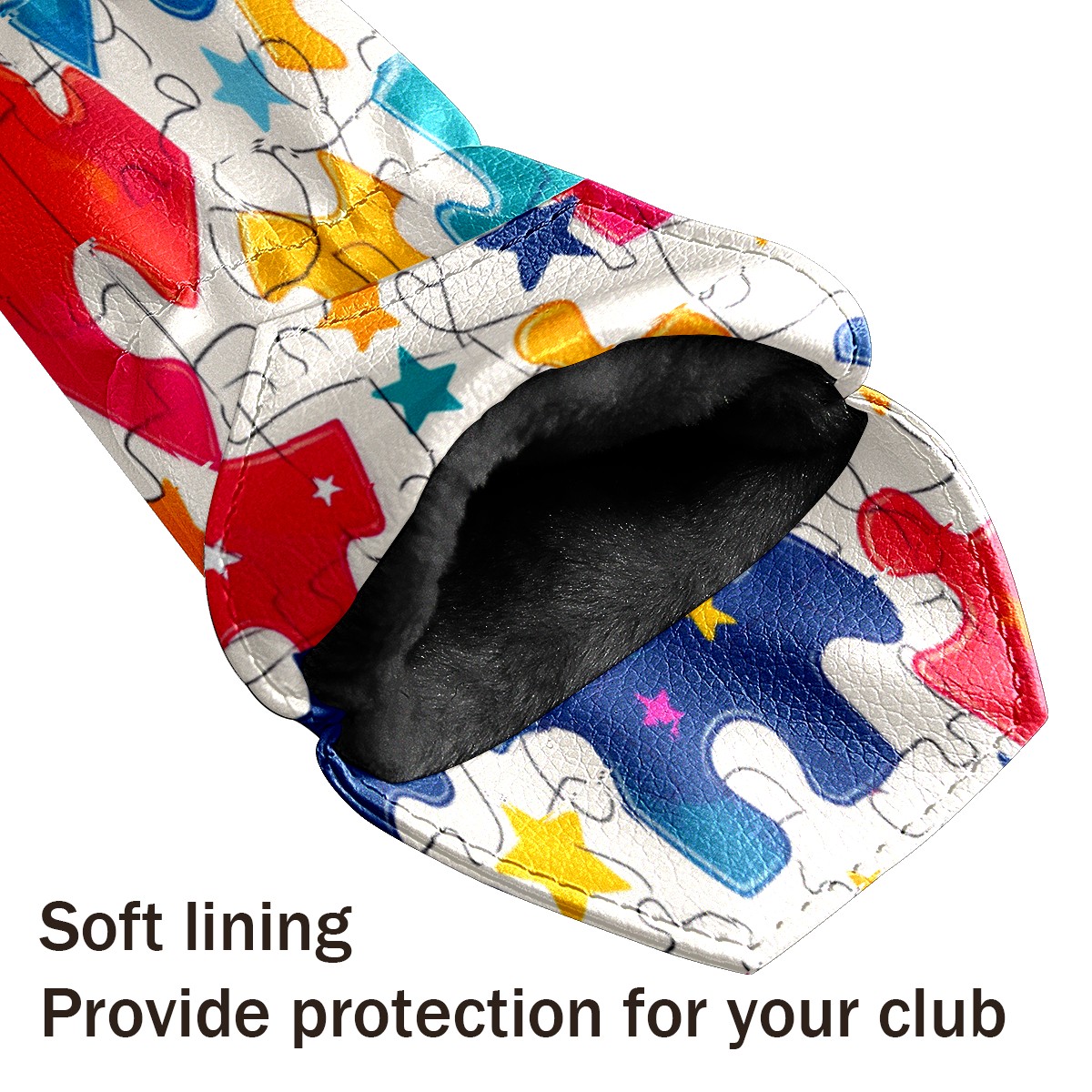 Golf Club Cover, Velvet Lining, High-Quality Leather, Suitable for the First Wood, Fairway Wood and Hybrid Club Head Cover, Suitable for Men and Women Golf Enthusiasts Colorful Puzzle With Stars