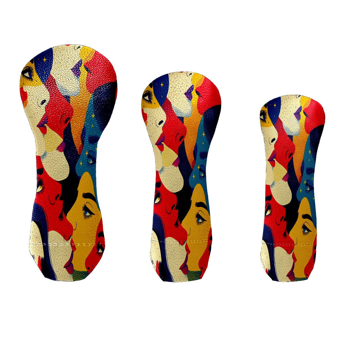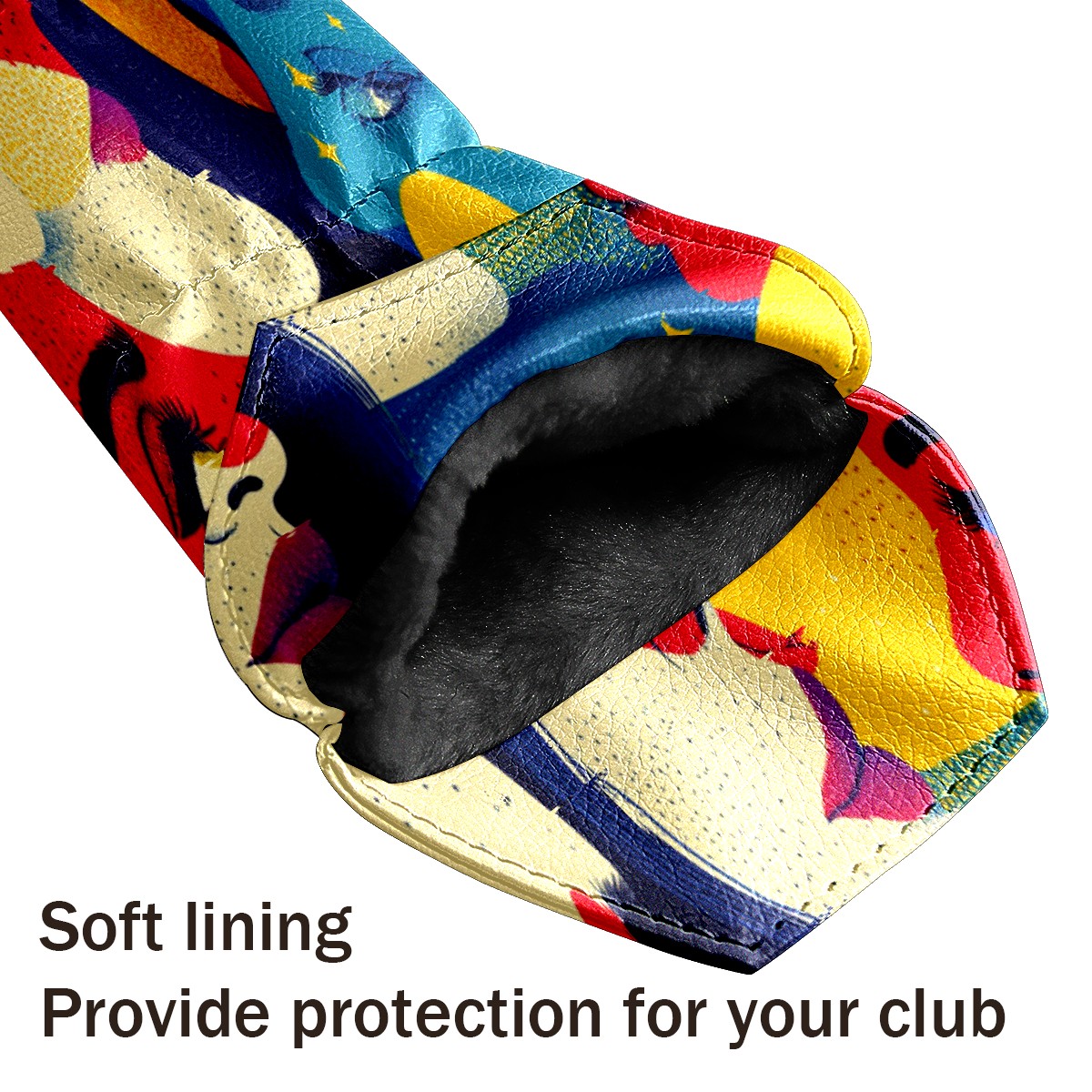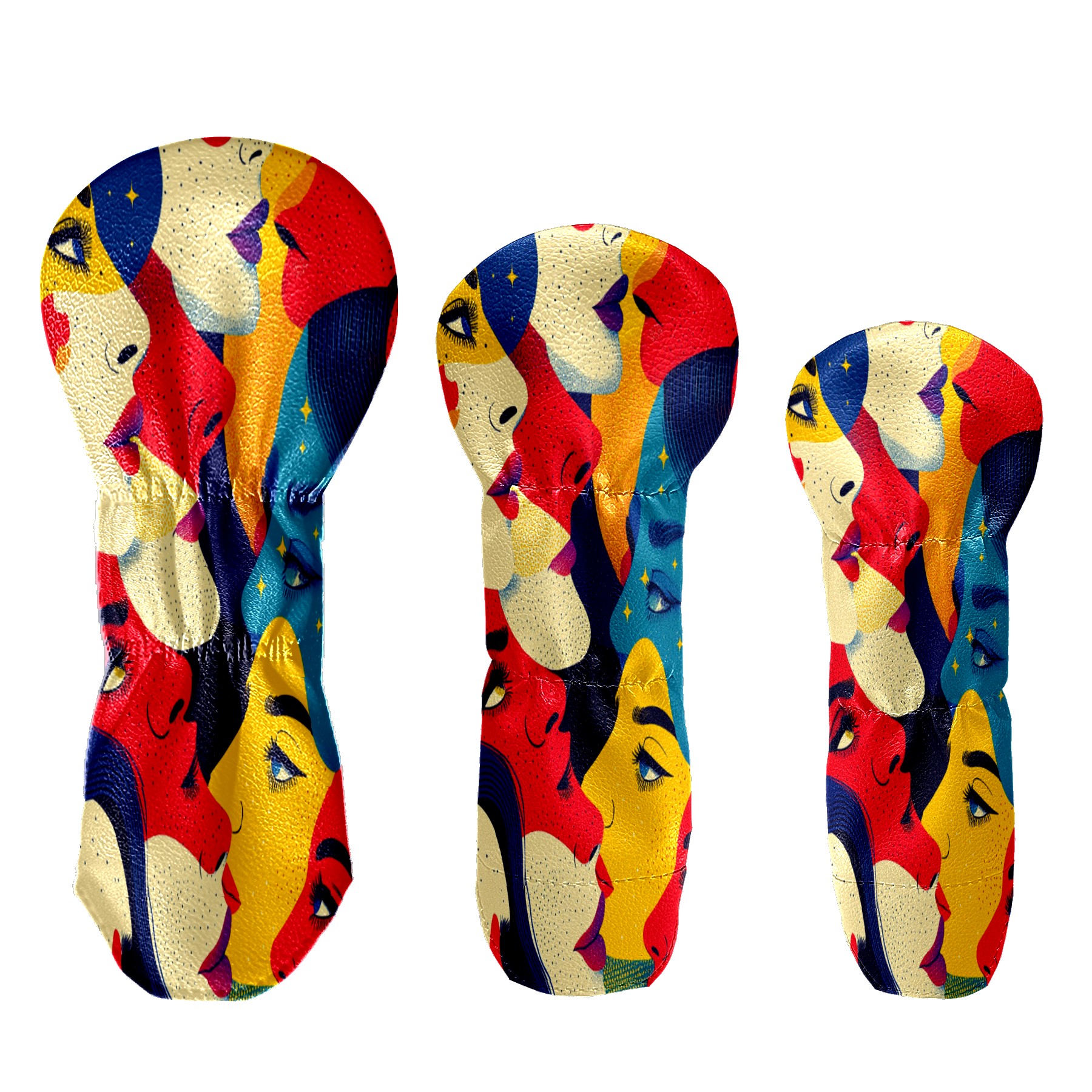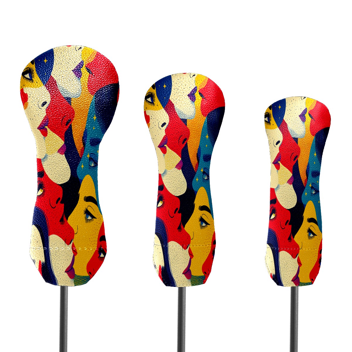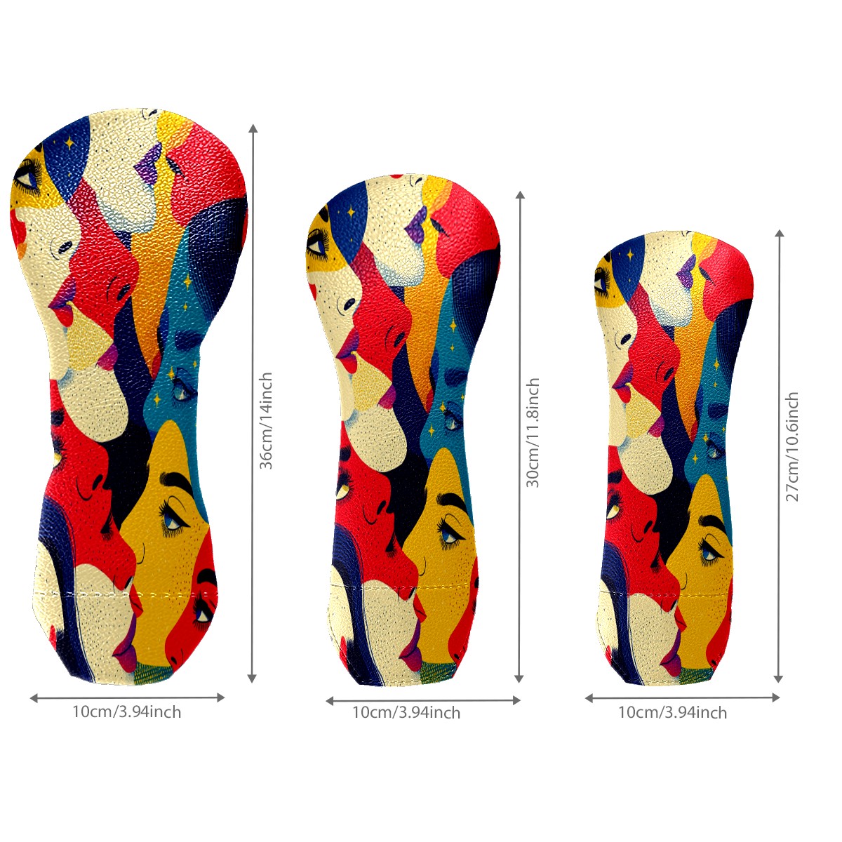 Golf Club Cover, Velvet Lining, High-Quality Leather, Suitable for the First Wood, Fairway Wood and Hybrid Club Head Cover, Suitable for Men and Women Golf Enthusiasts Women's Faces