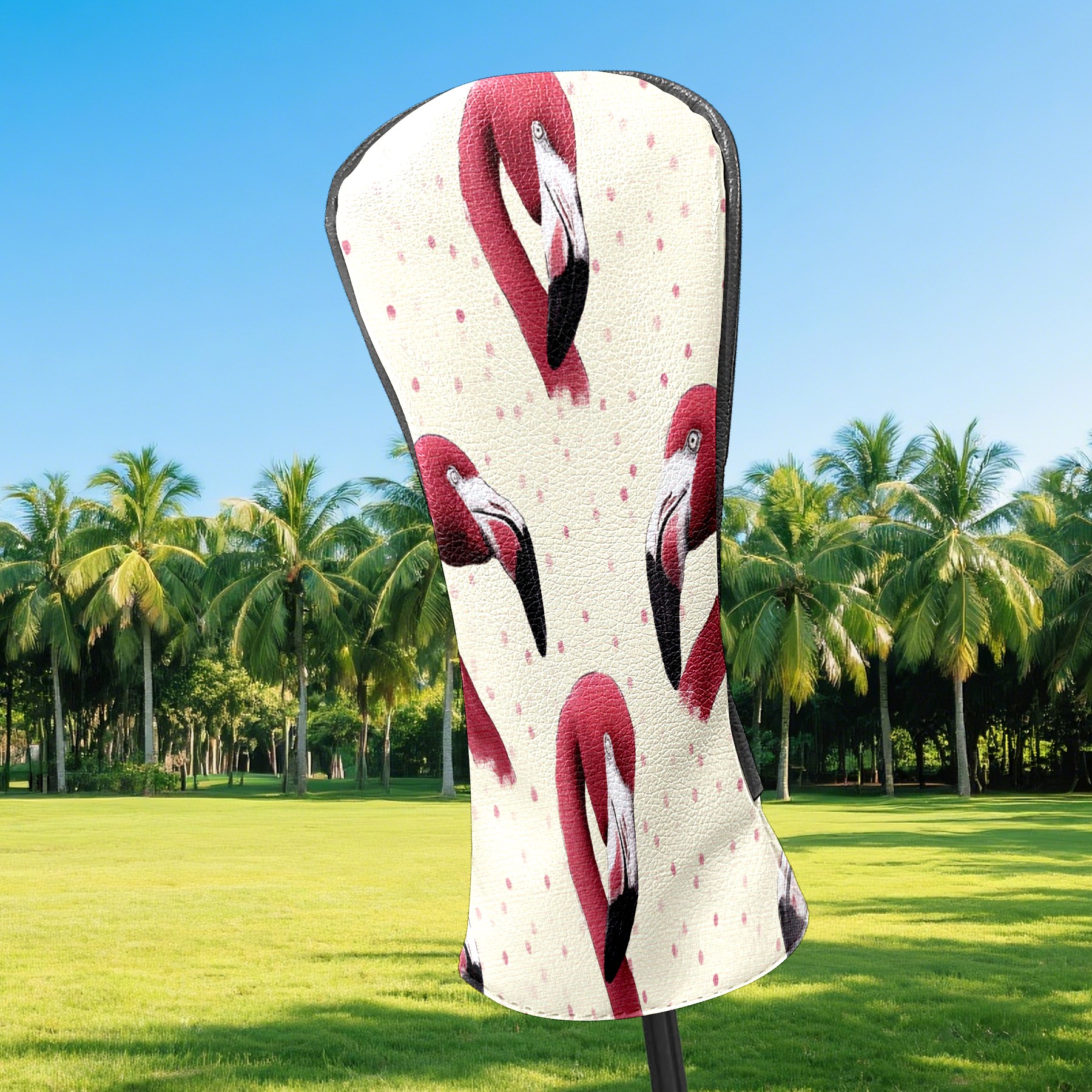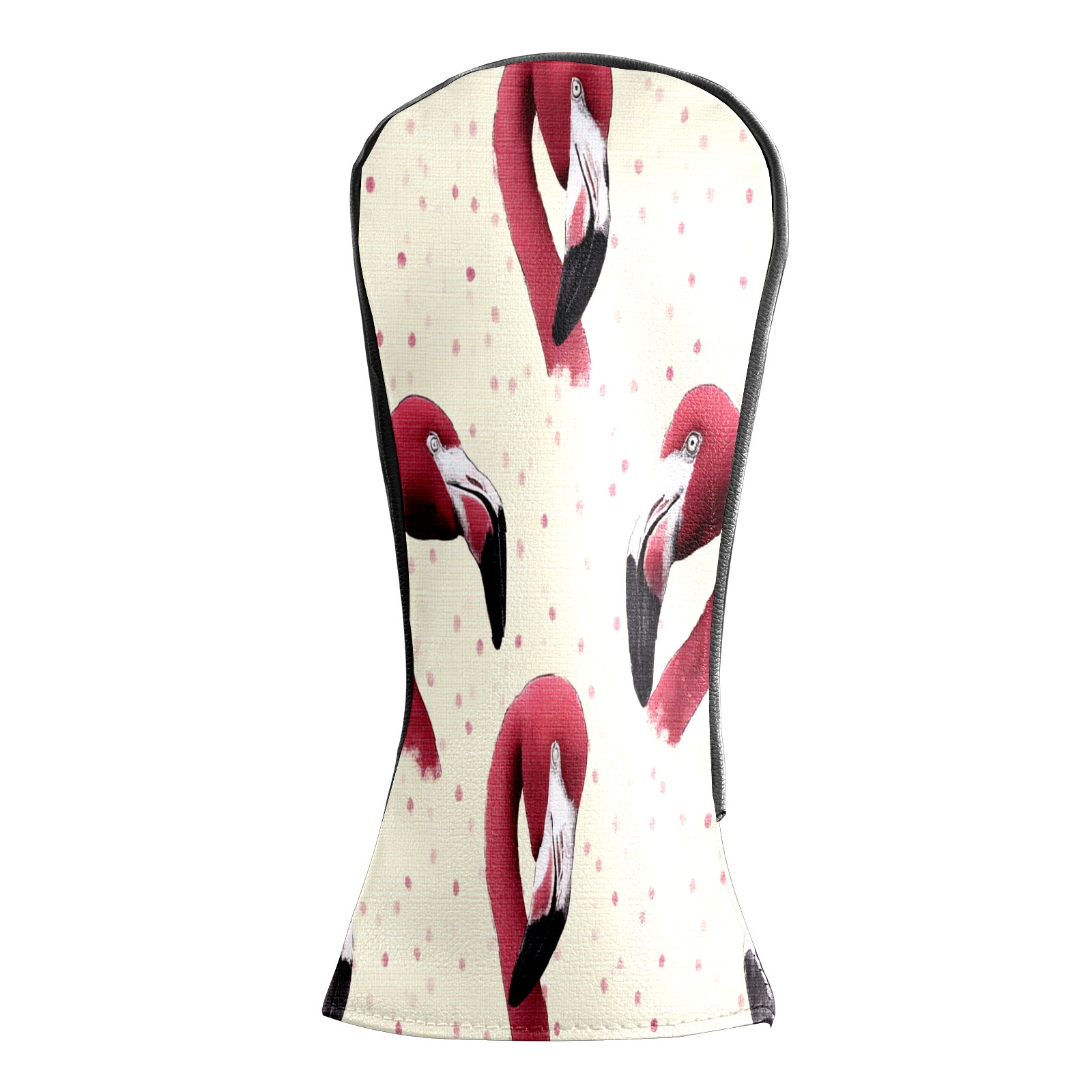 Golf Club Head Covers Counullo for Driver & Fairway Woods Beige Dots Flamingo Premium Plush Velvet Lining, Waterproof Golf Headcovers for Scratch Protection Novelty Gift for Men & Women