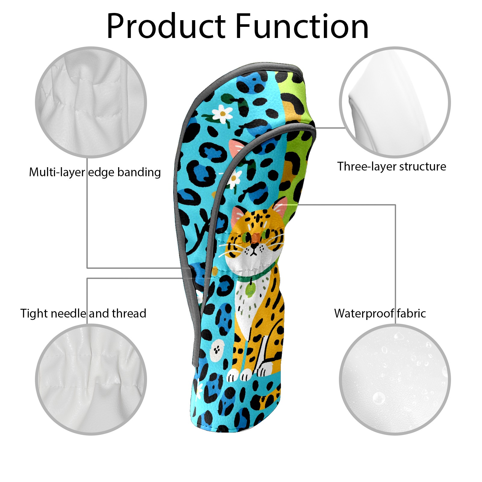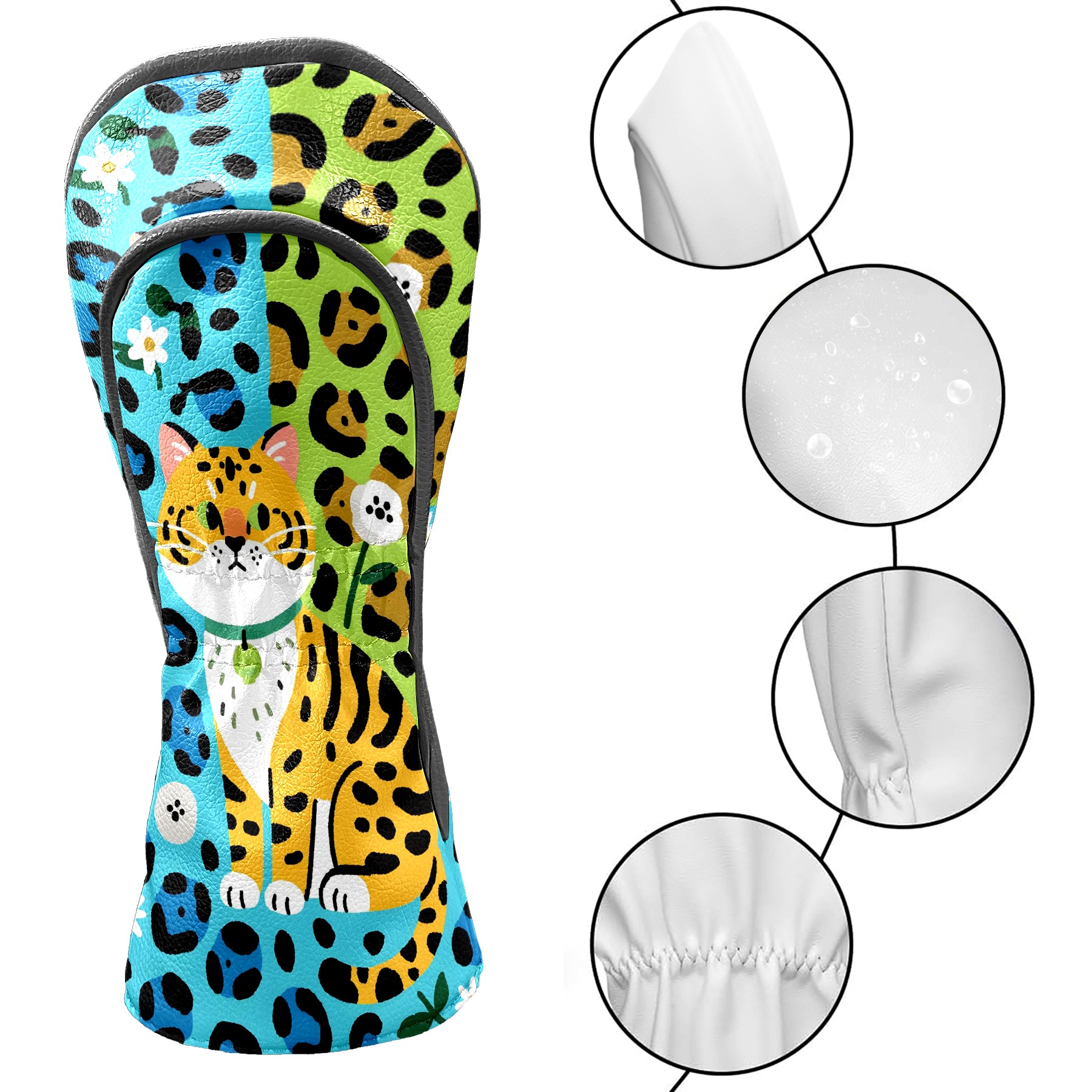 Golf Club Head Covers Counullo for Driver & Fairway Woods Blue Cat Premium Plush Velvet Lining, Waterproof Golf Headcovers for Scratch Protection Novelty Gift for Men & Women