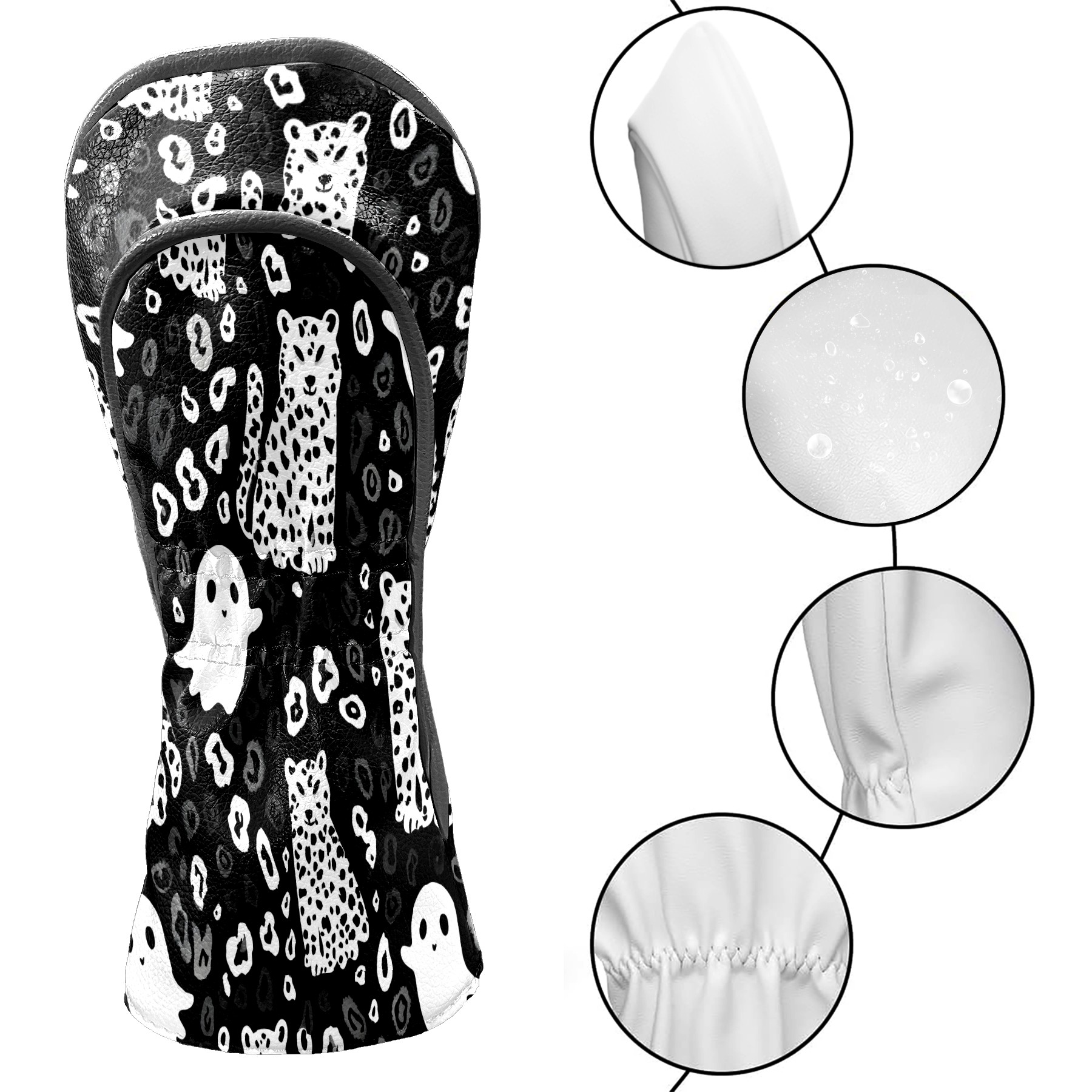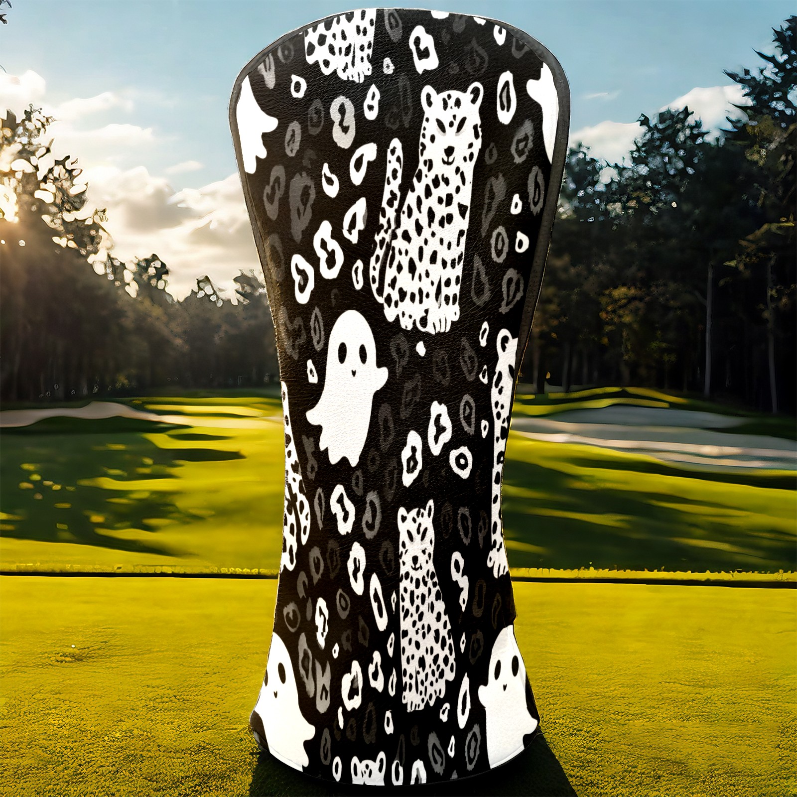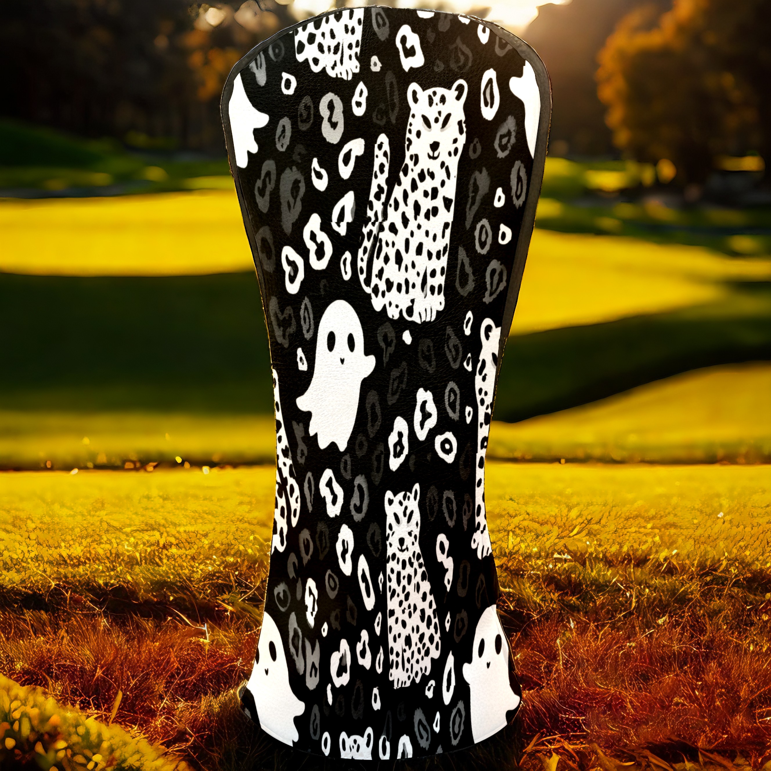 Golf Club Head Covers Counullo for Driver & Fairway Woods Black GhostCat Premium Plush Velvet Lining, Waterproof Golf Headcovers for Scratch Protection Novelty Gift for Men & Women