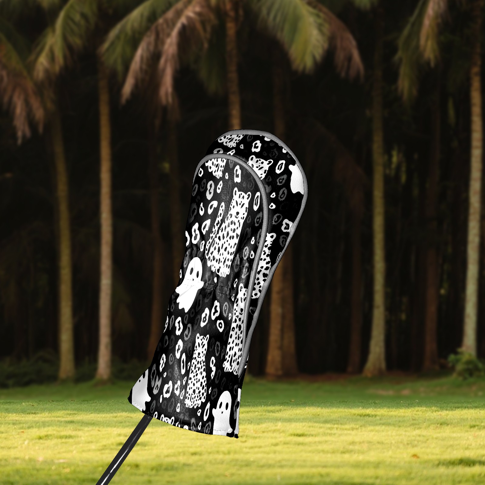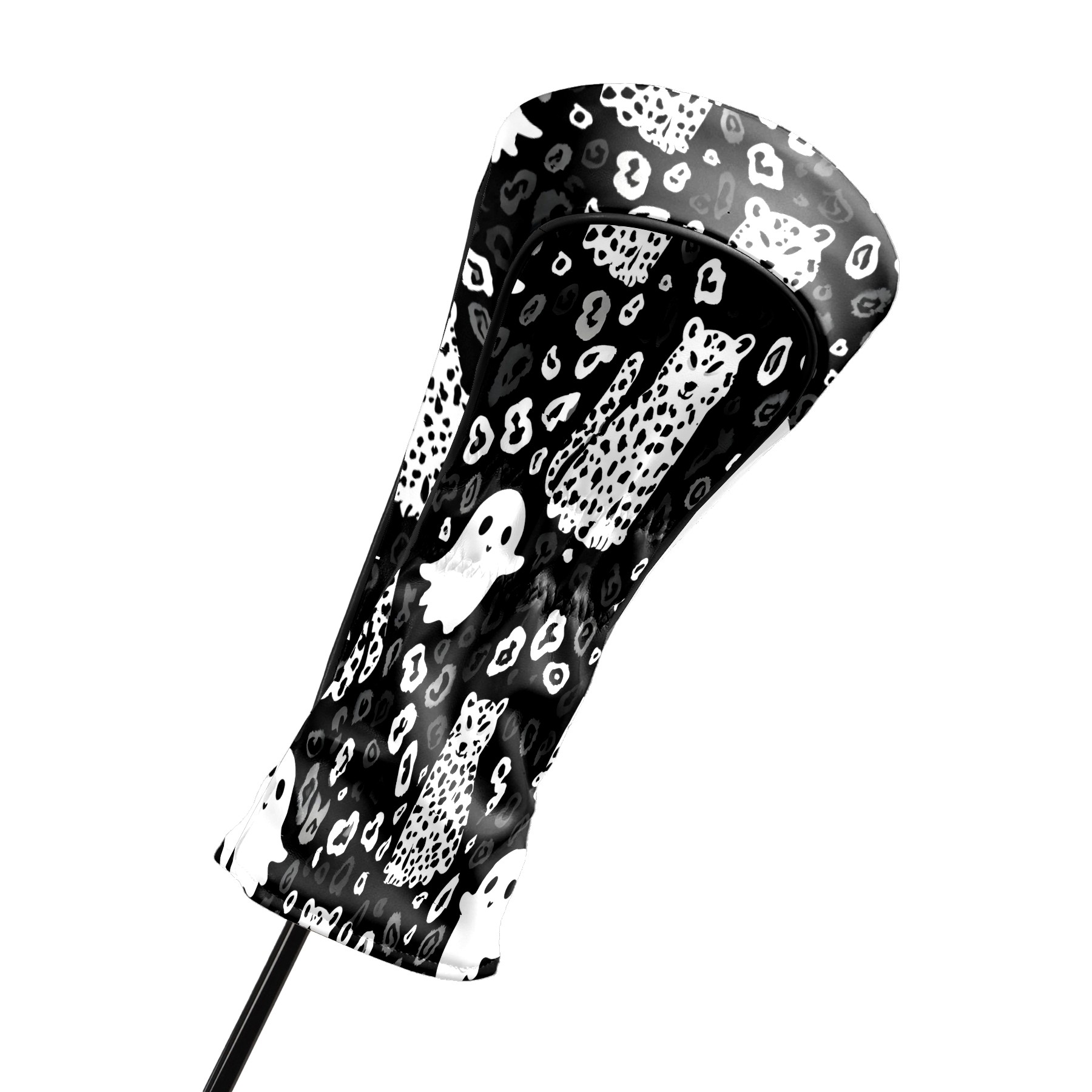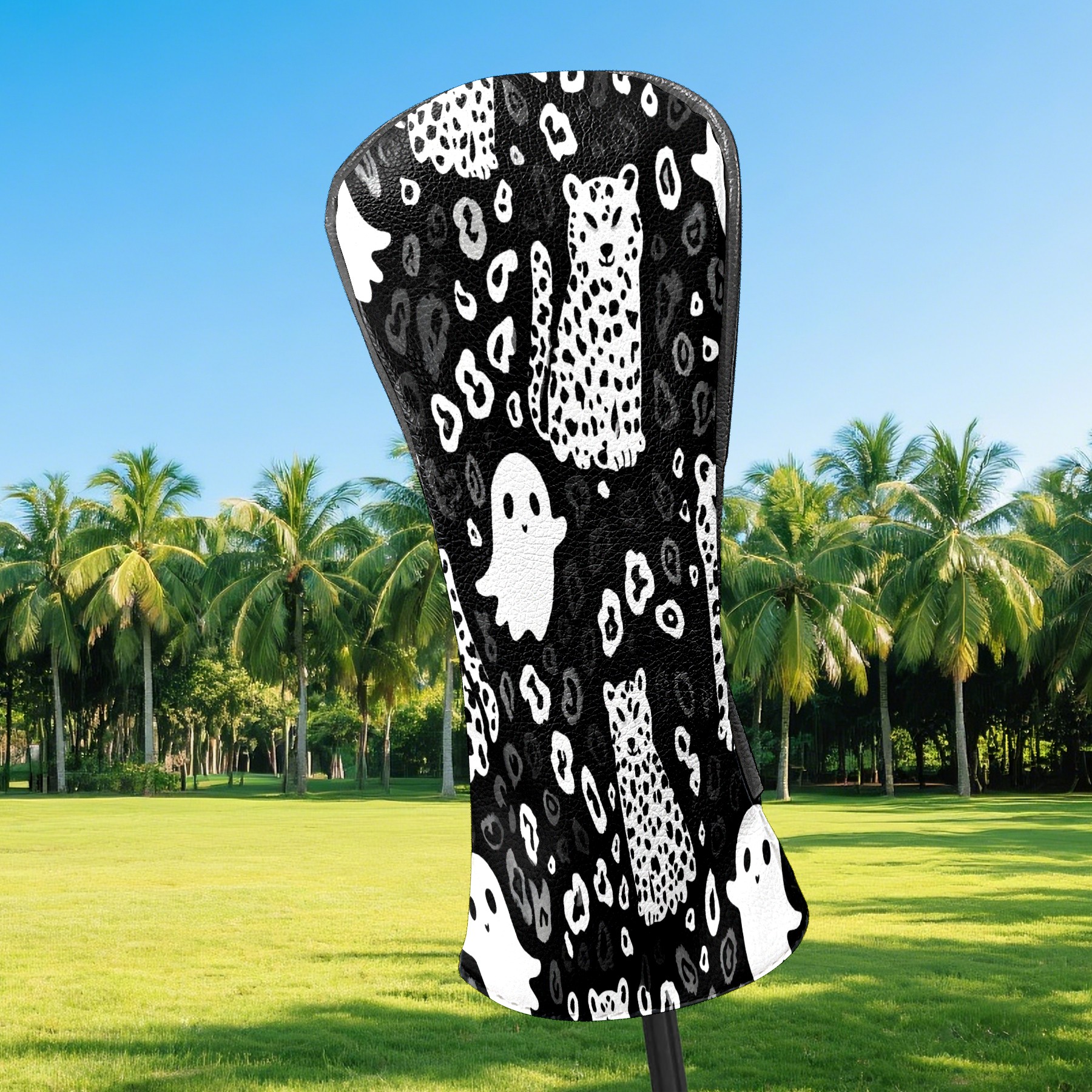 Golf Club Head Covers Counullo for Driver & Fairway Woods Black GhostCat Premium Plush Velvet Lining, Waterproof Golf Headcovers for Scratch Protection Novelty Gift for Men & Women