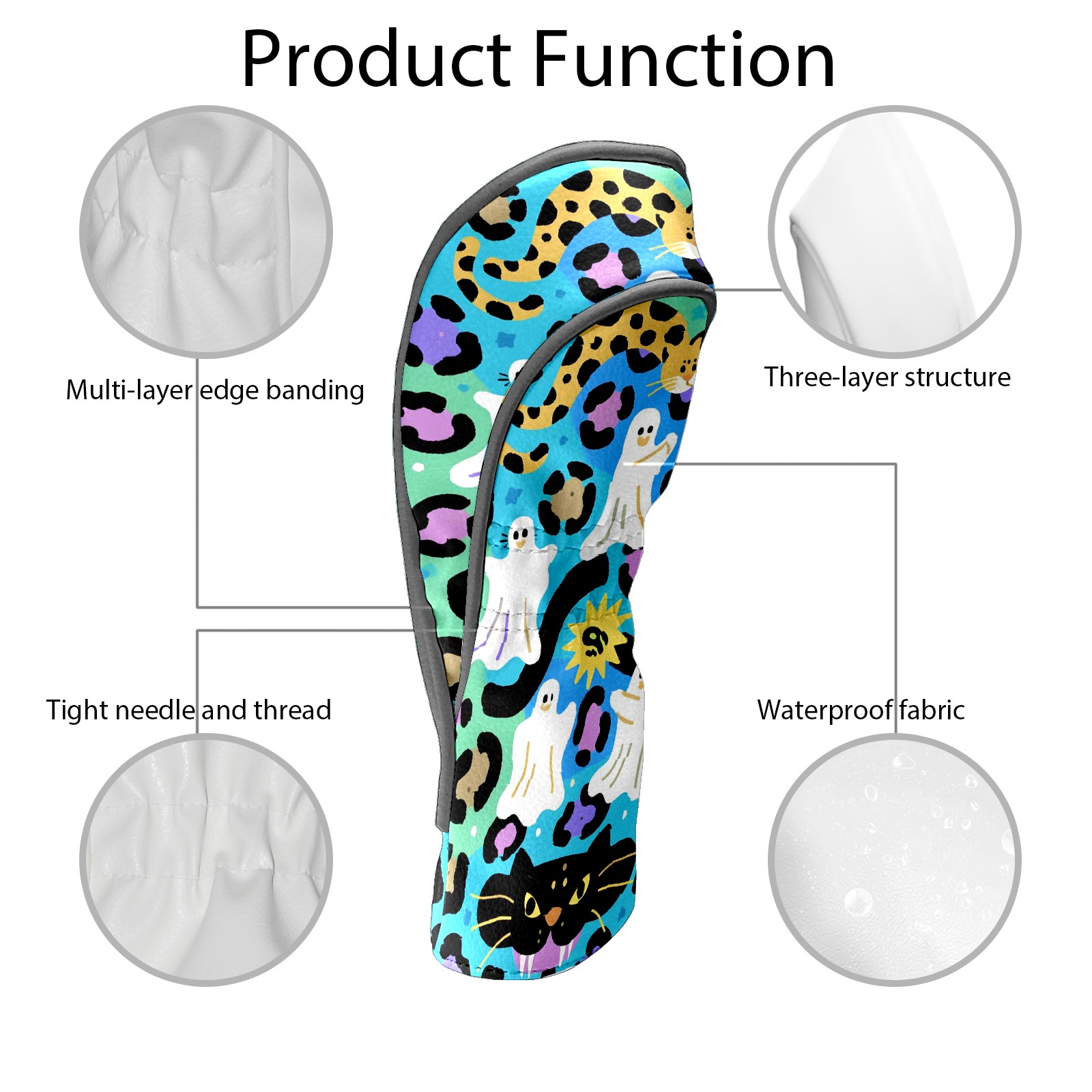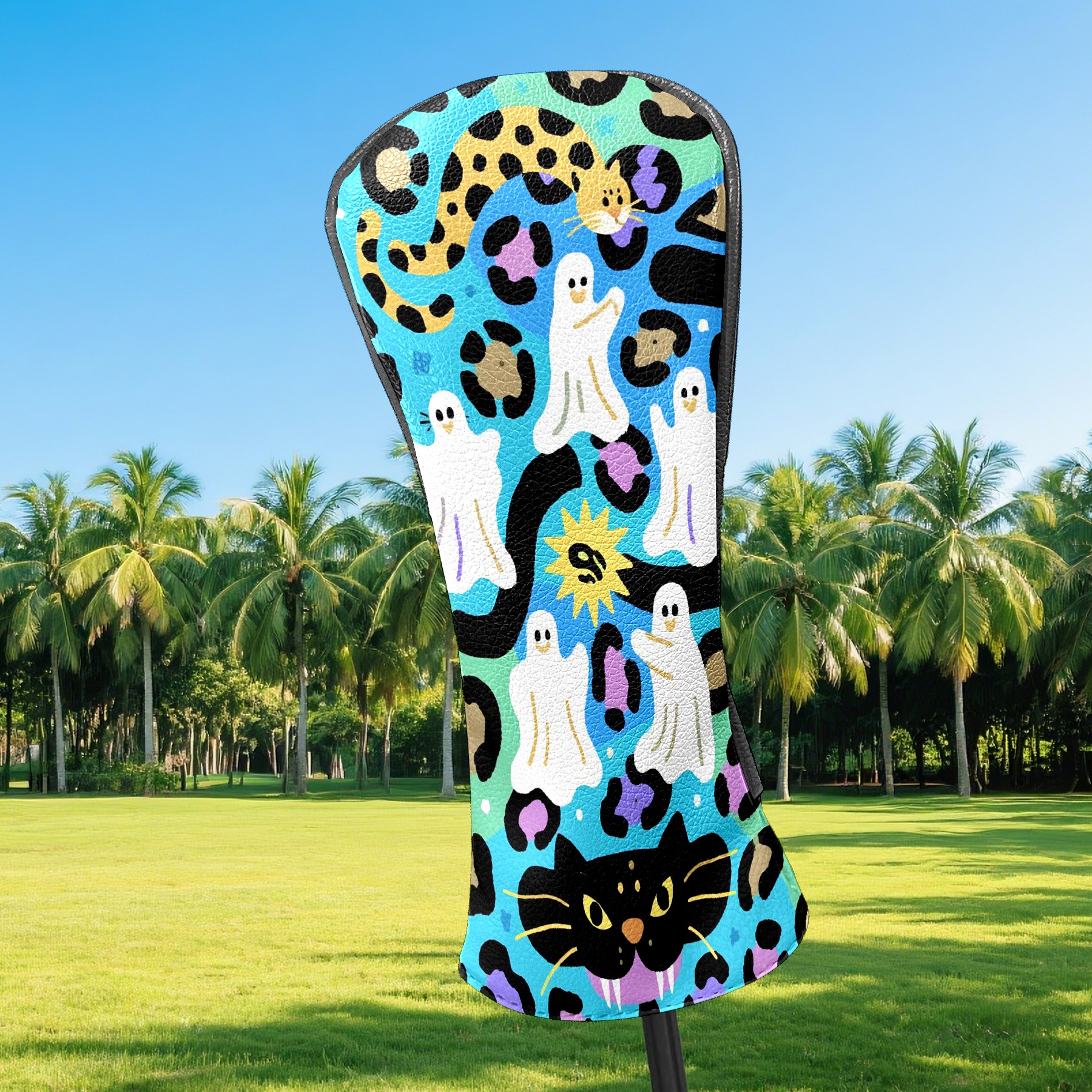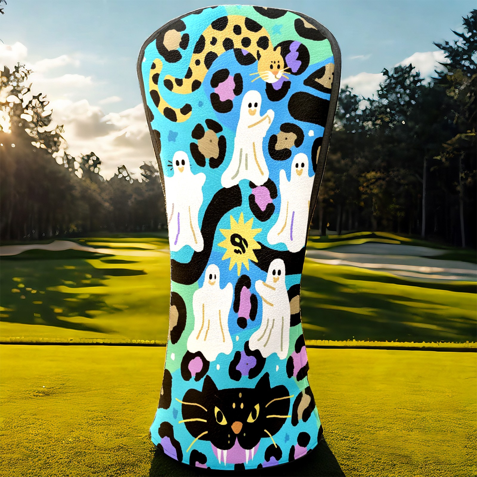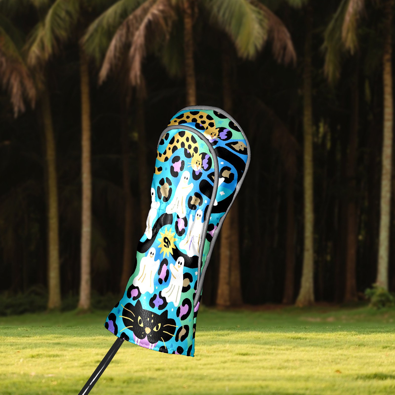Golf Club Head Covers Counullo for Driver & Fairway Woods Blue Ghost Premium Plush Velvet Lining, Waterproof Golf Headcovers for Scratch Protection Novelty Gift for Men & Women