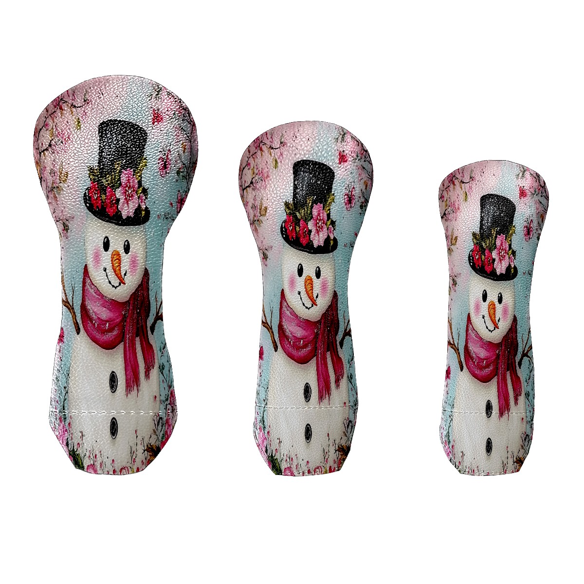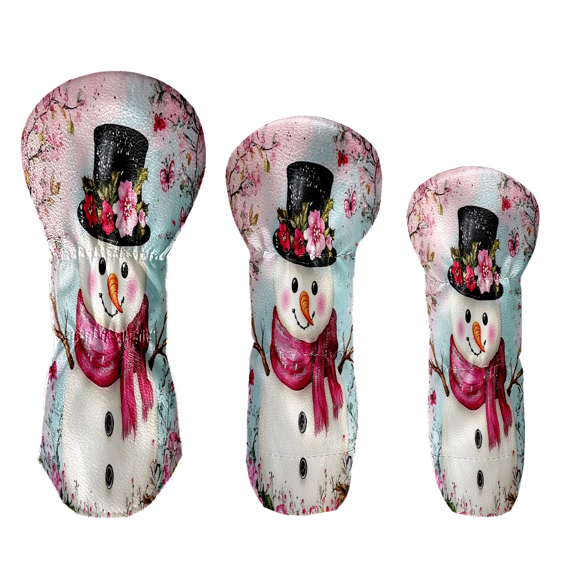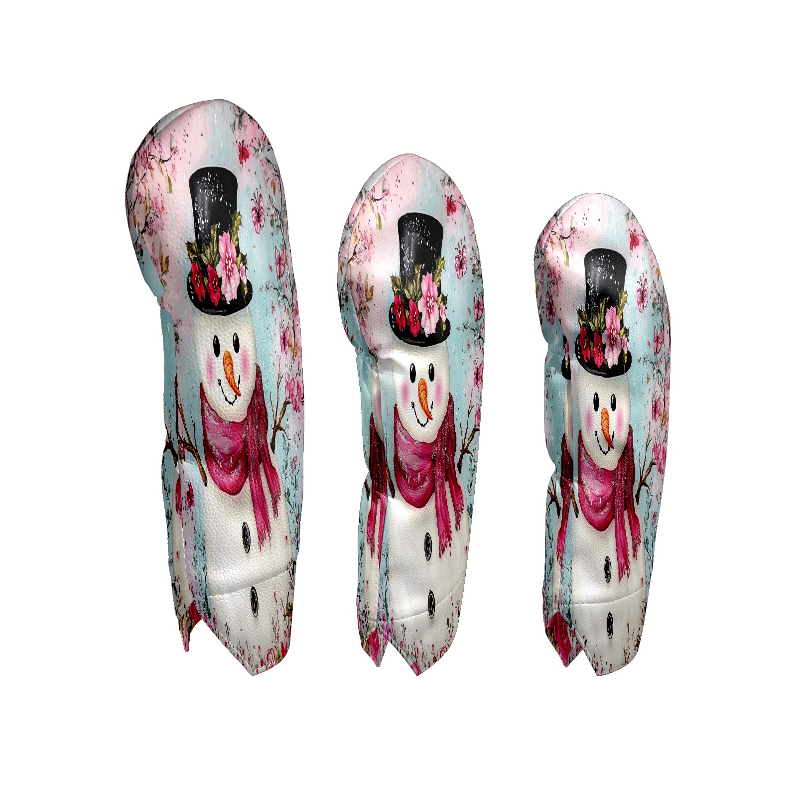 Golf Club Covers Driver Fairway Hybrid Headcover Premium Leather Golf Head Covers for Woods and Driver Hybrid, Golf Headcovers Set for Girls Women Men (Snowman Pink)