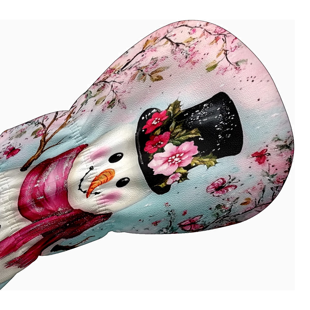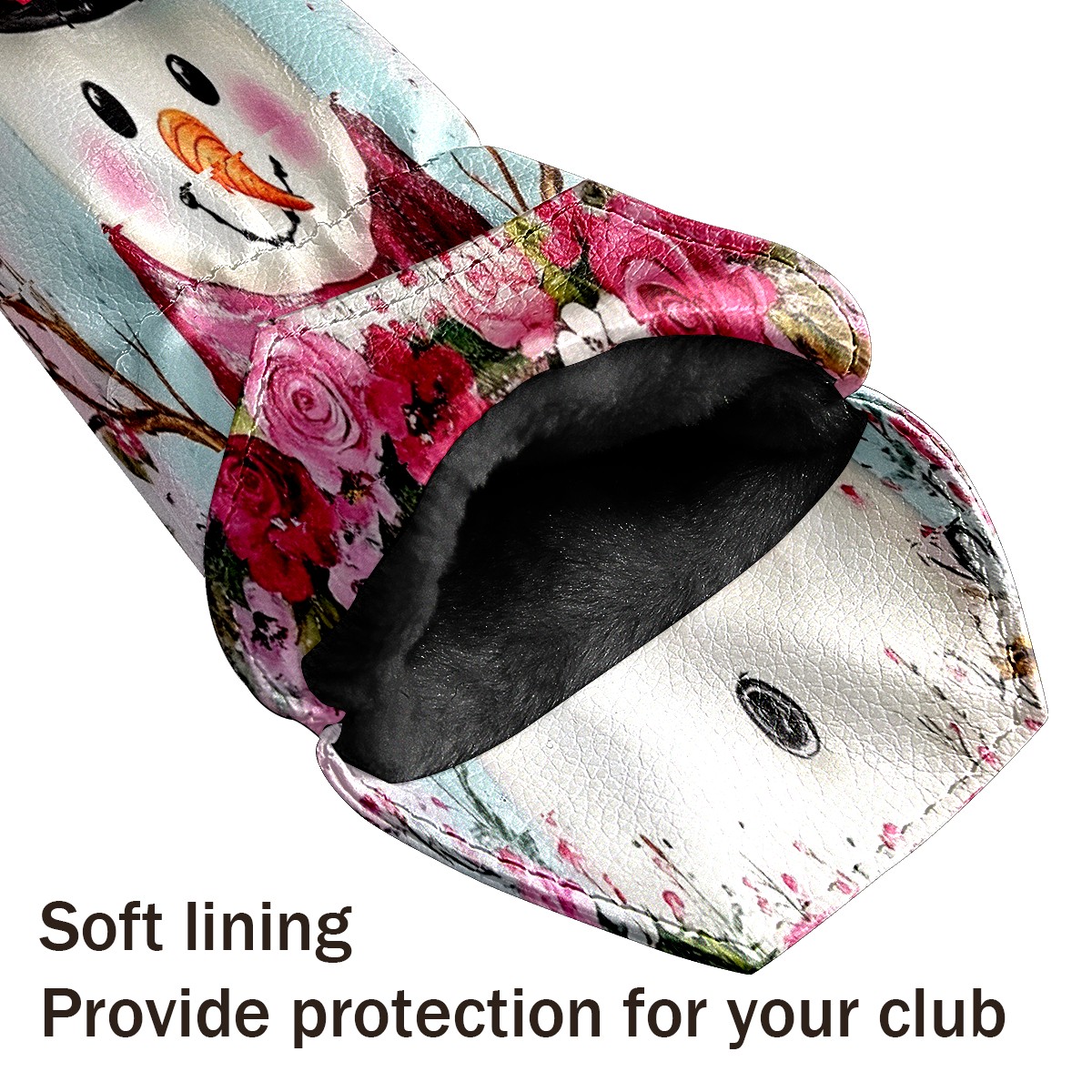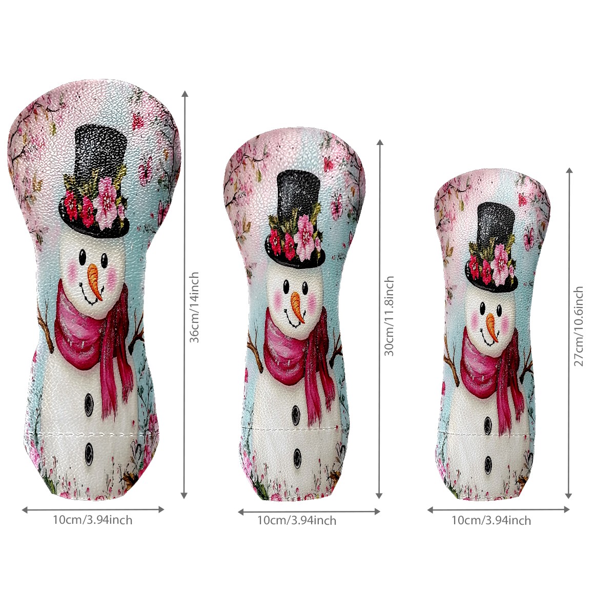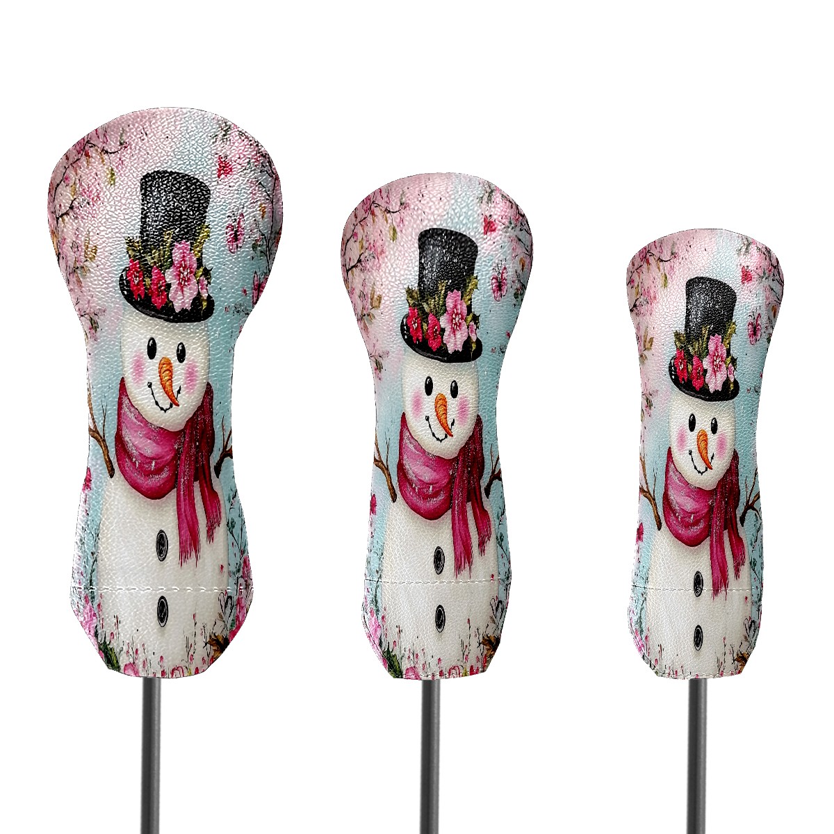 Golf Club Covers Driver Fairway Hybrid Headcover Premium Leather Golf Head Covers for Woods and Driver Hybrid, Golf Headcovers Set for Girls Women Men (Snowman Pink)
