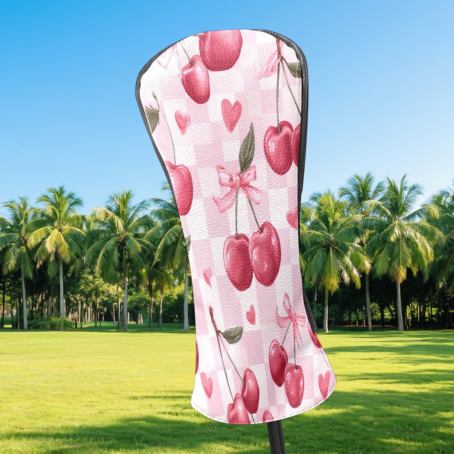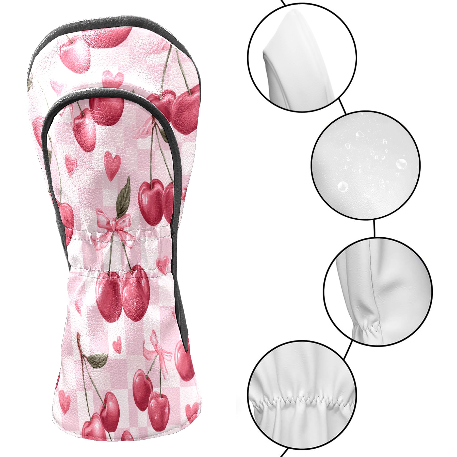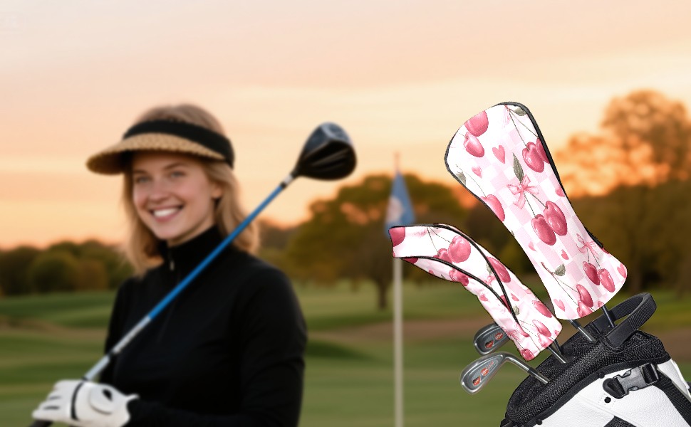 Golf Club Head Covers Counullo for Driver & Fairway Woods Pink Cherry Premium Plush Velvet Lining, Waterproof Golf Headcovers for Scratch Protection Novelty Gift for Men & Women