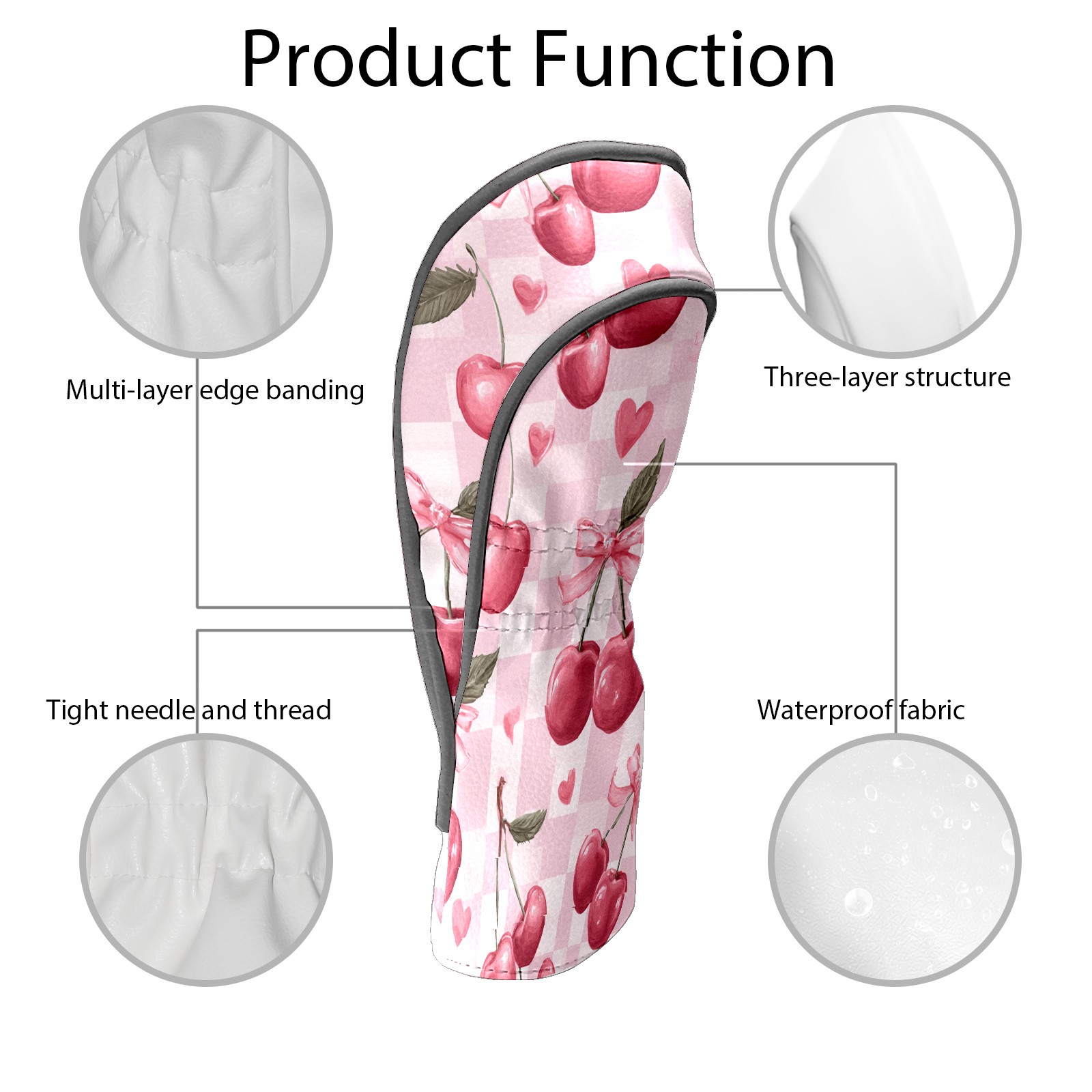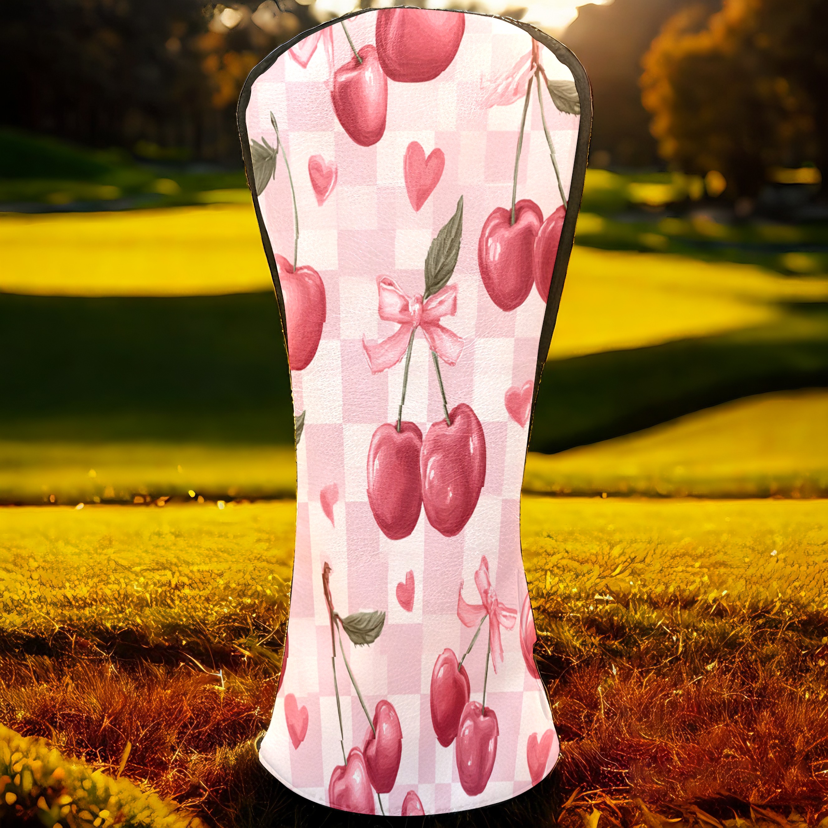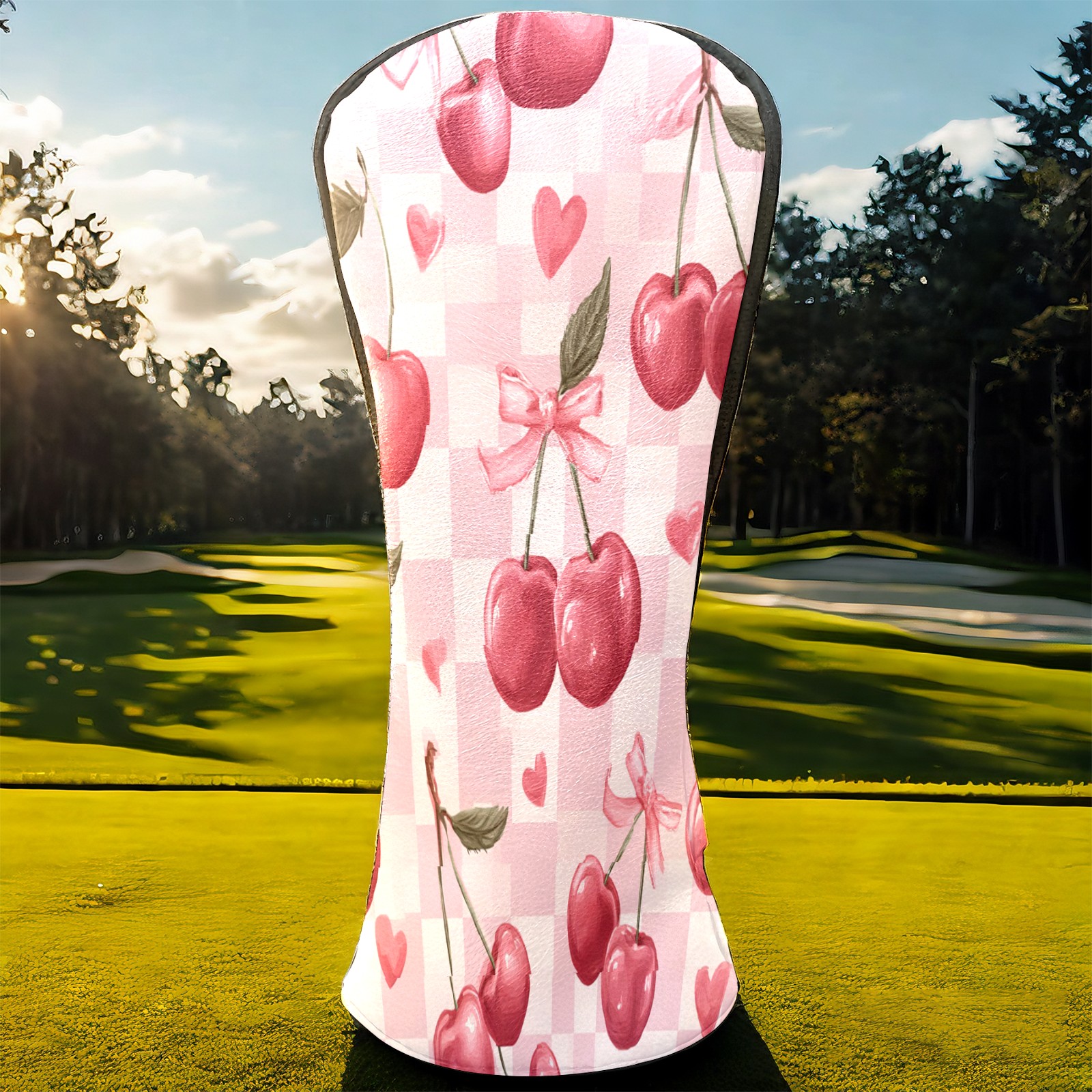 Golf Club Head Covers Counullo for Driver & Fairway Woods Pink Cherry Premium Plush Velvet Lining, Waterproof Golf Headcovers for Scratch Protection Novelty Gift for Men & Women