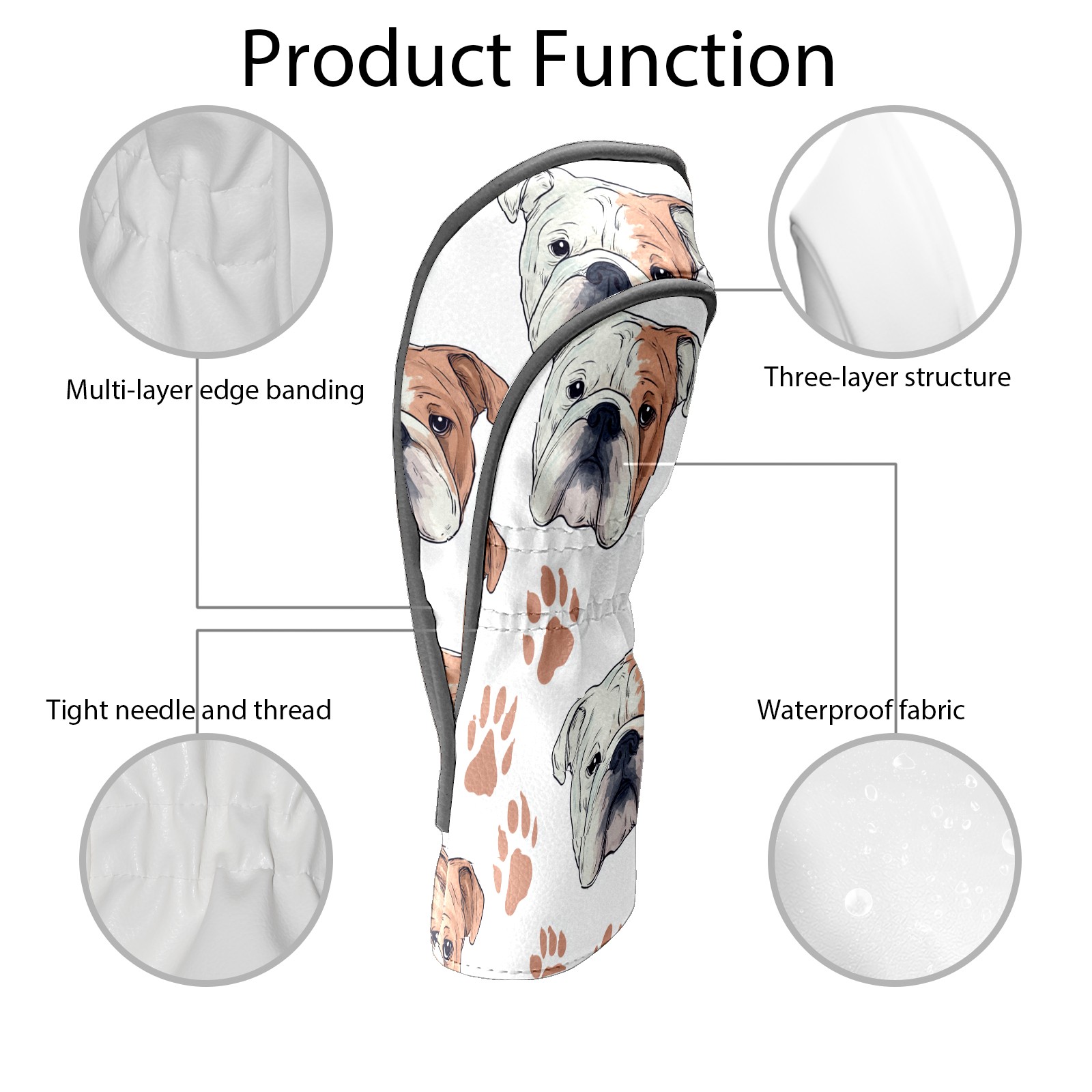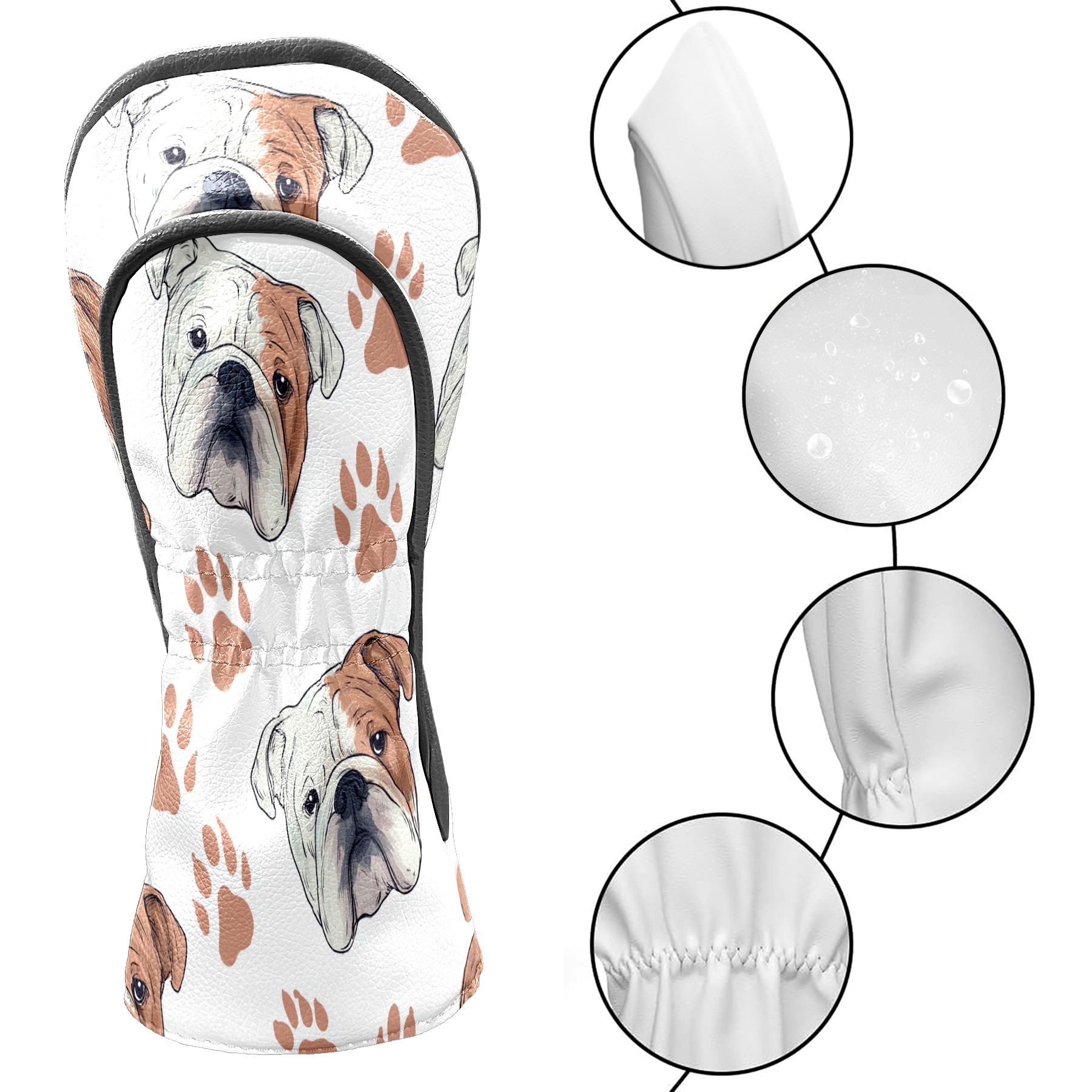Golf Club Head Covers Counullo for Driver & Fairway Woods Brown BulldogPaw Premium Plush Velvet Lining, Waterproof Golf Headcovers for Scratch Protection Novelty Gift for Men & Women
