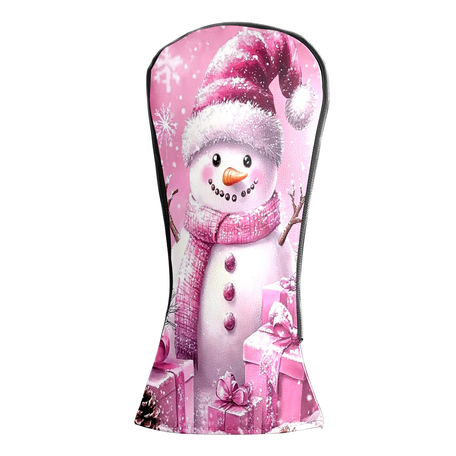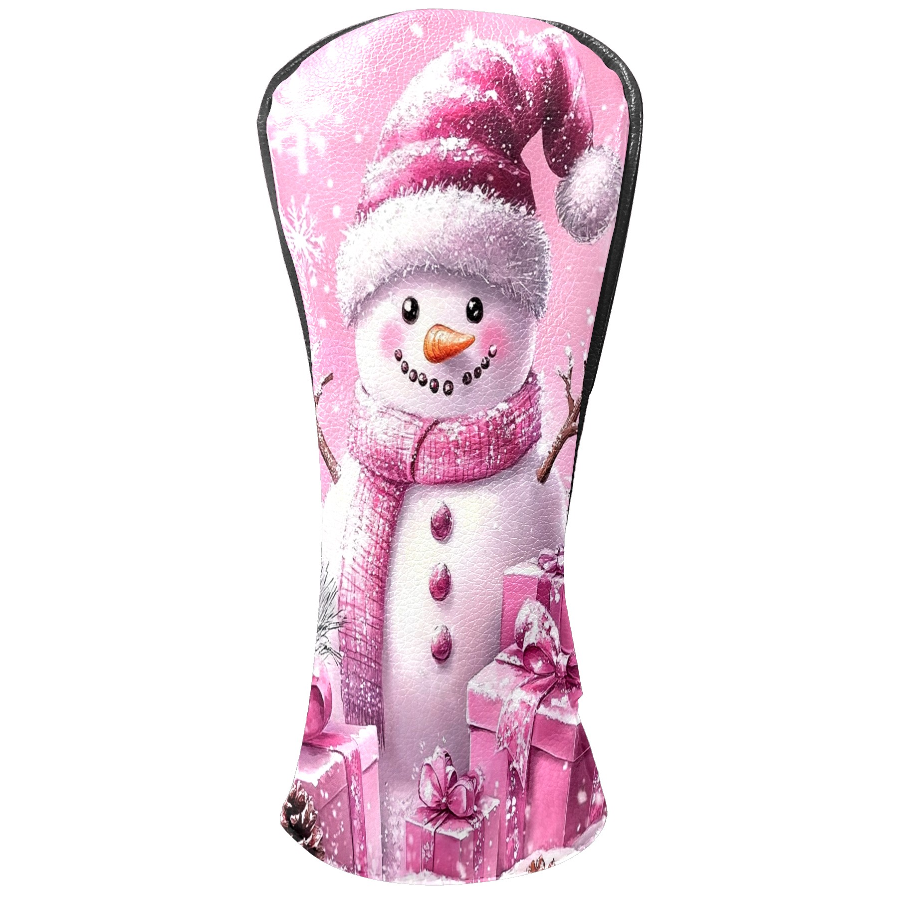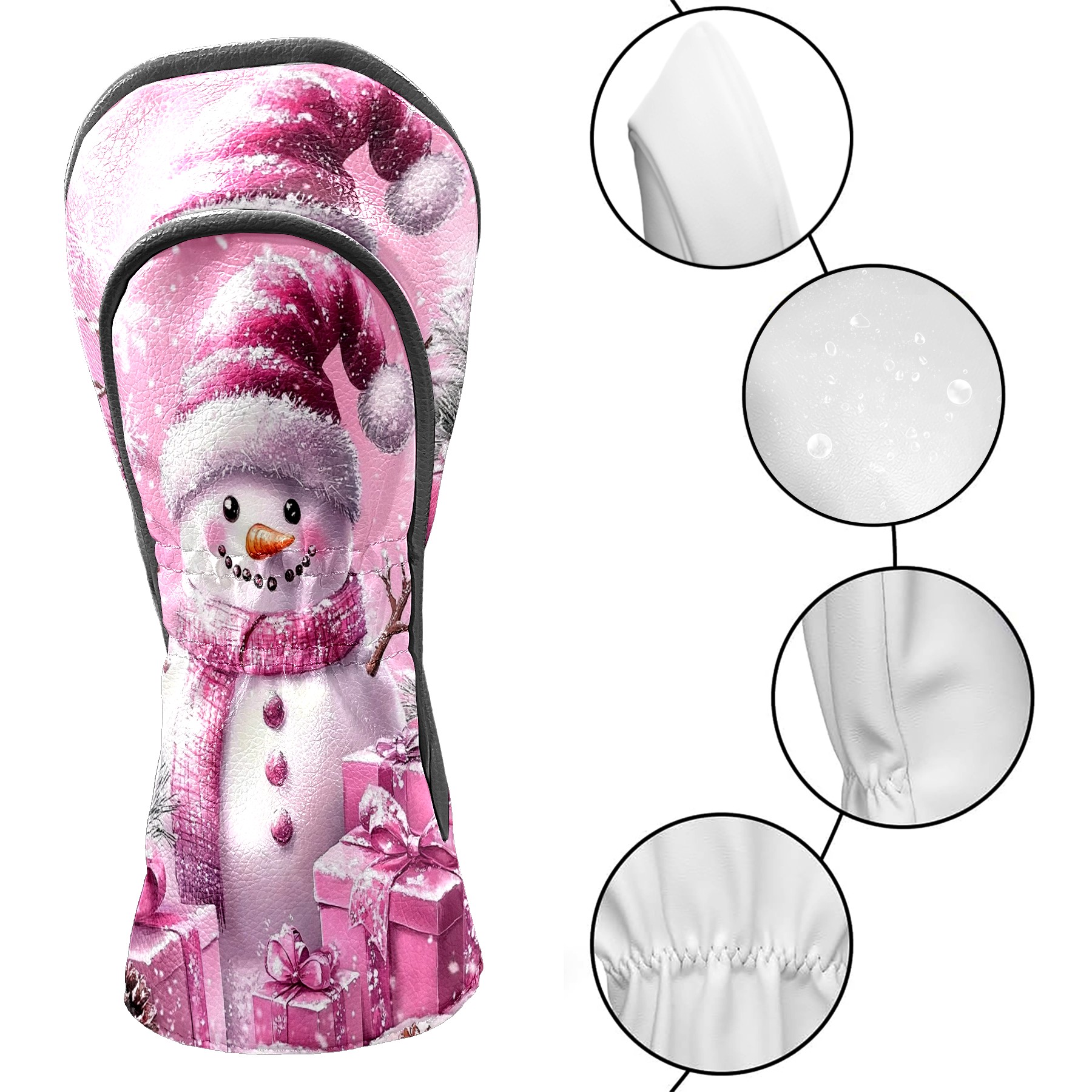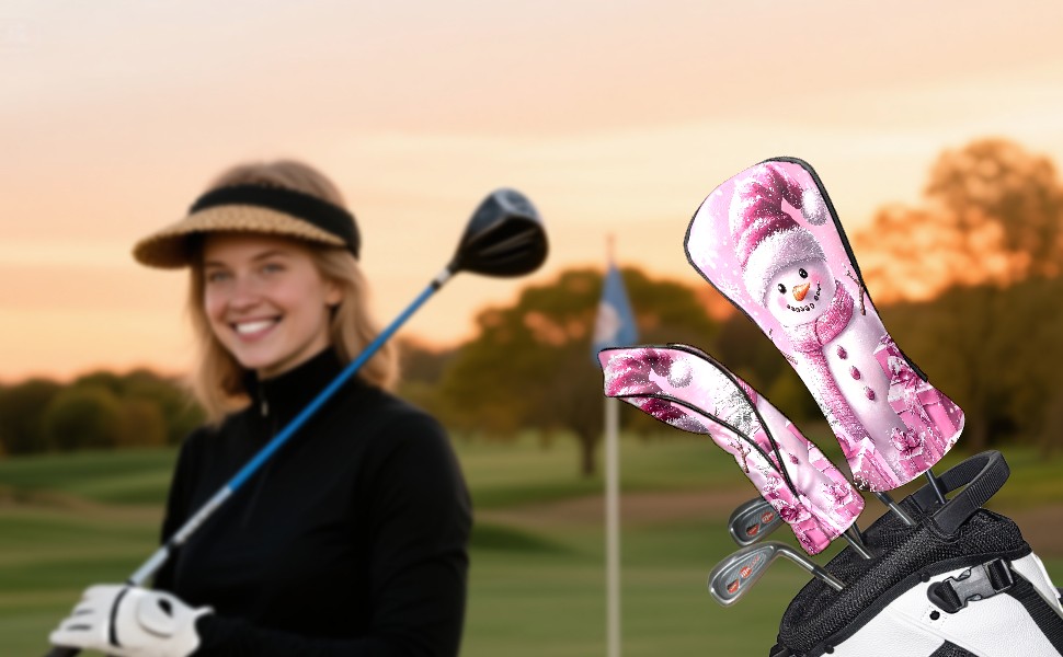Golf Club Covers Premium Leather Driver Headcover, Golf Head Covers for Woods and Driver Waterproof Golf Headcovers with Anti-Scratch Lining for Women Men (Pink Christmas Snowman)