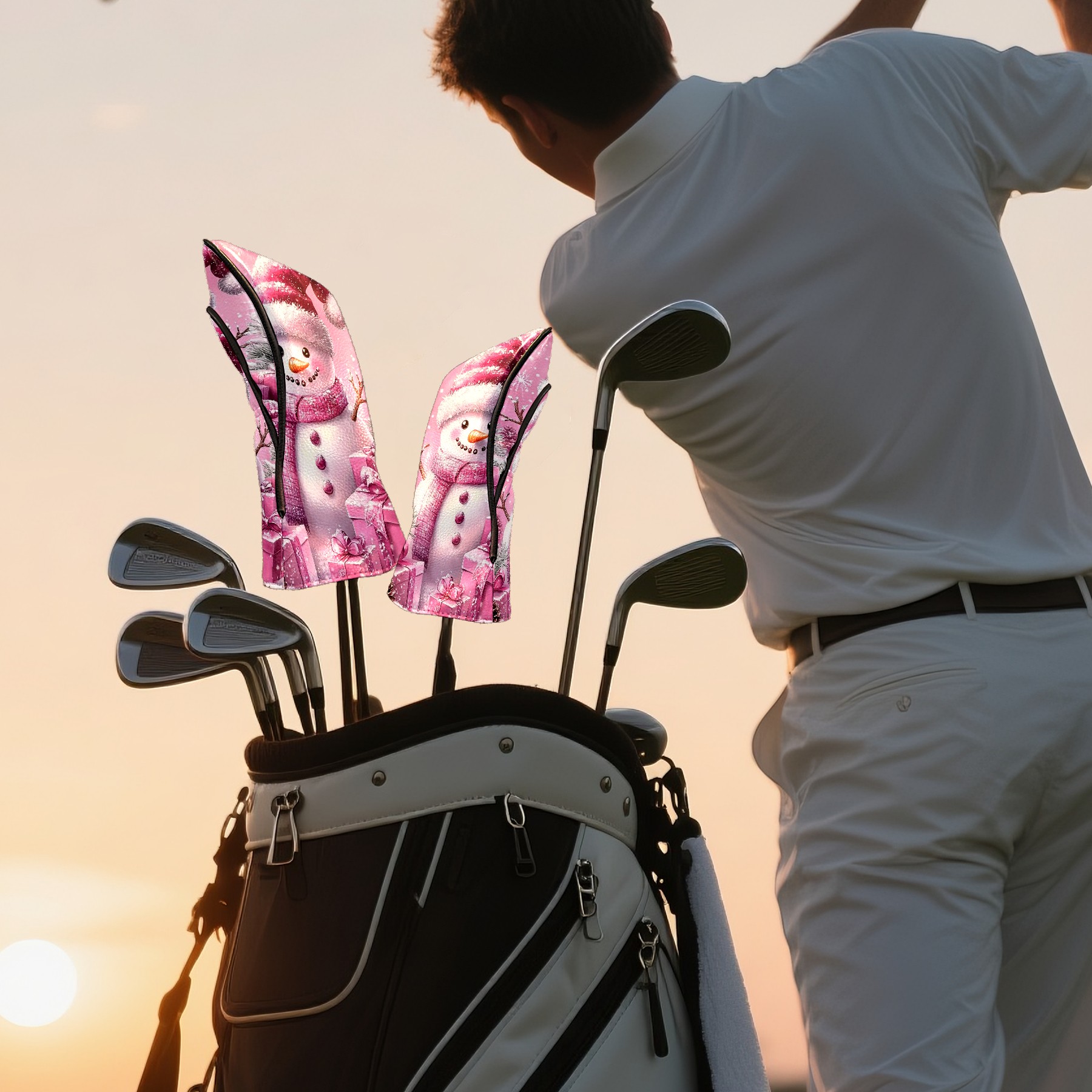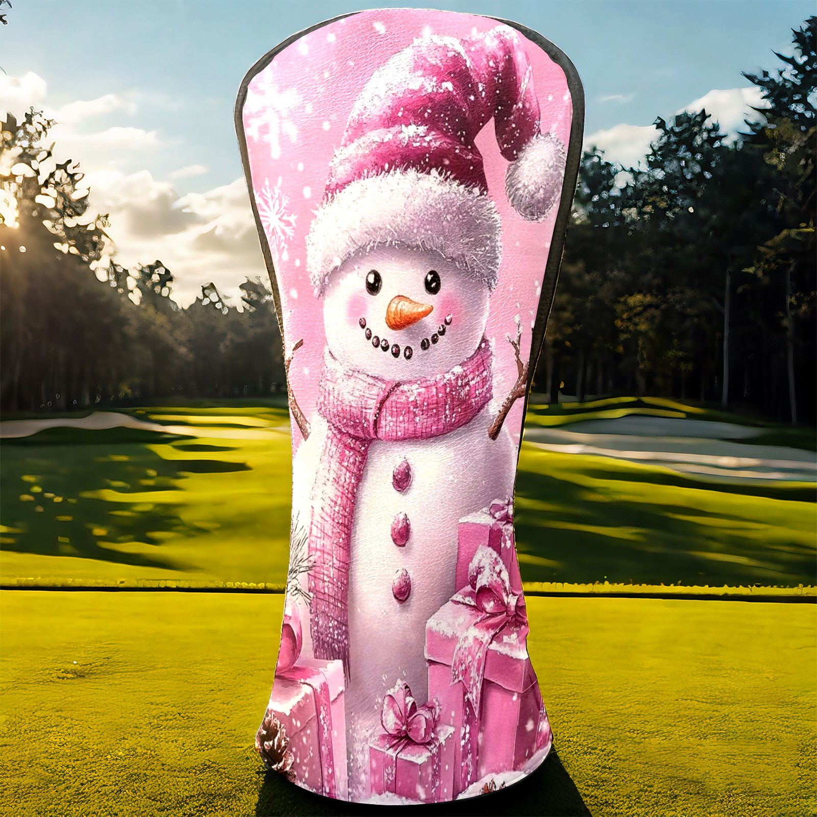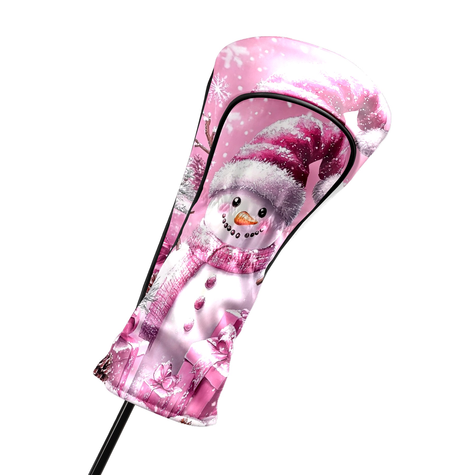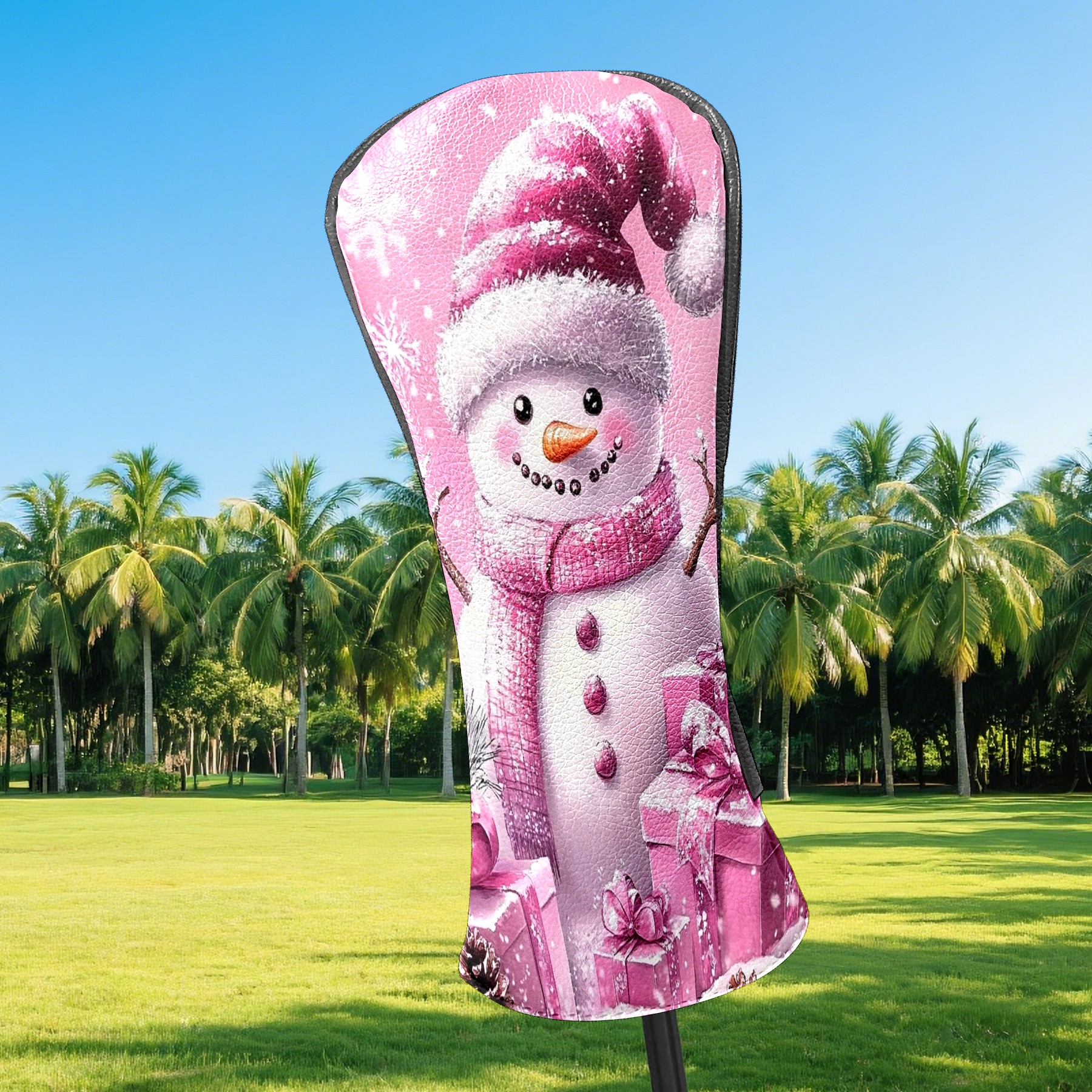Golf Club Covers Premium Leather Driver Headcover, Golf Head Covers for Woods and Driver Waterproof Golf Headcovers with Anti-Scratch Lining for Women Men (Pink Christmas Snowman)