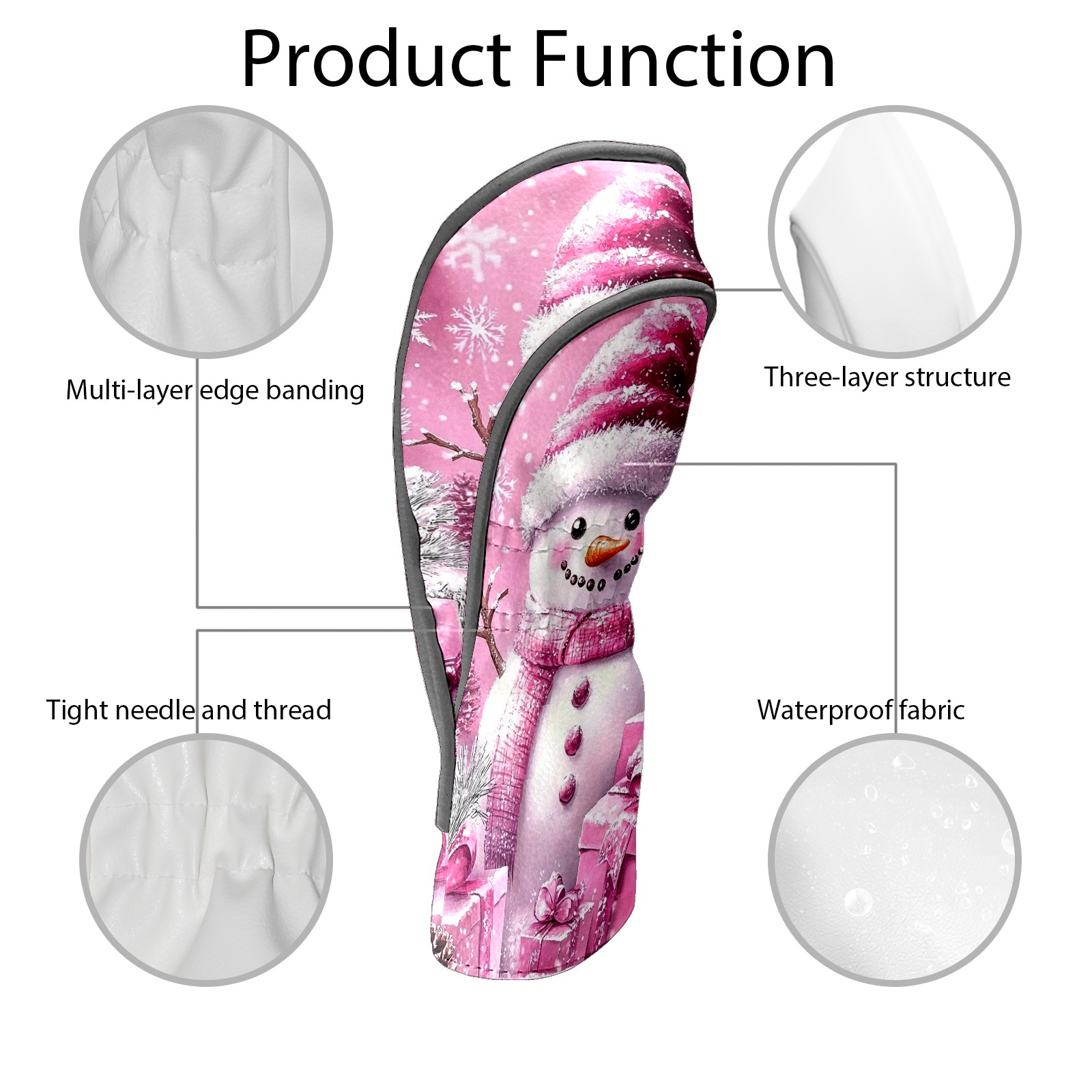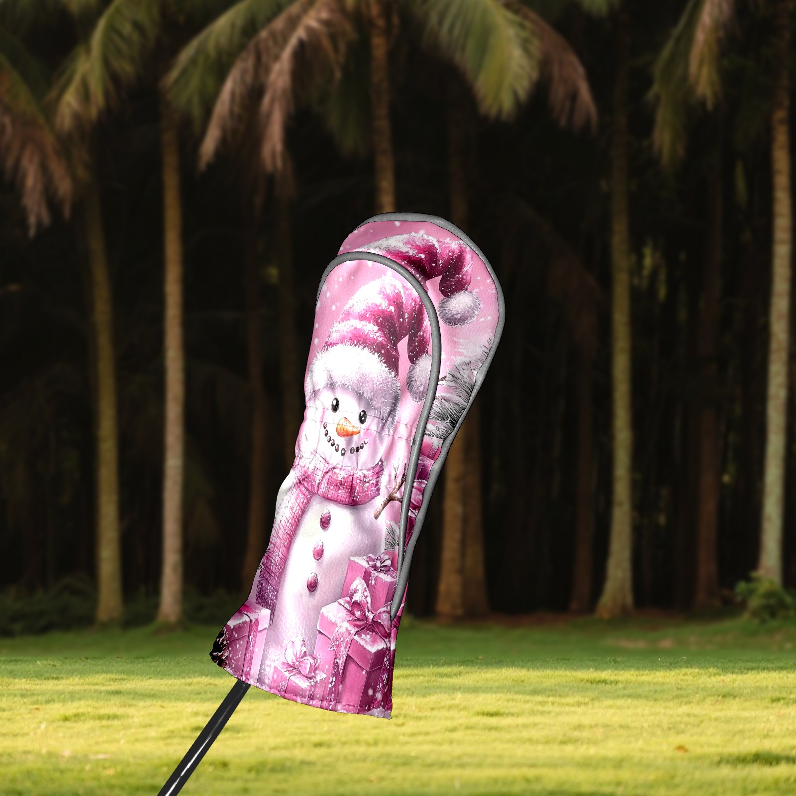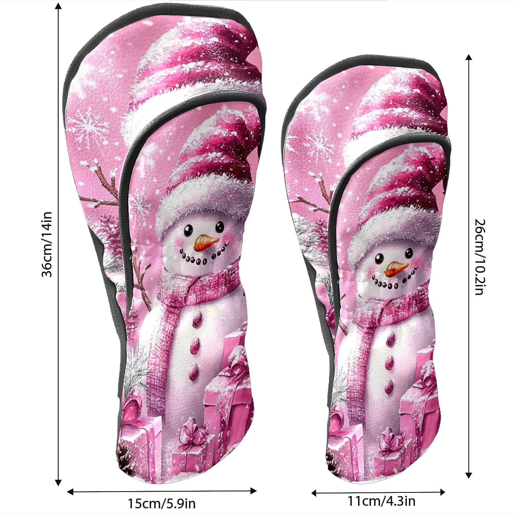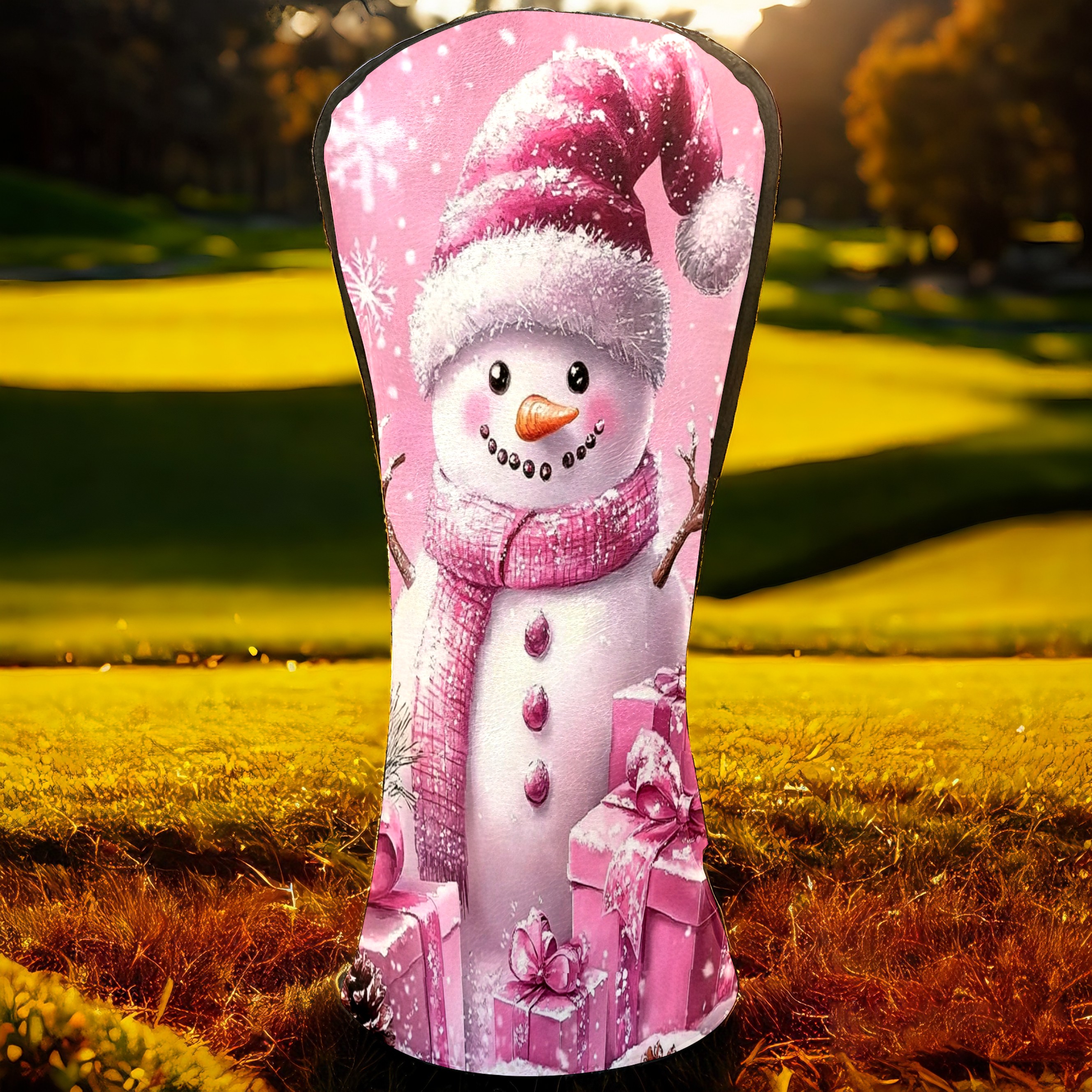 Golf Club Covers Premium Leather Driver Headcover, Golf Head Covers for Woods and Driver Waterproof Golf Headcovers with Anti-Scratch Lining for Women Men (Pink Christmas Snowman)