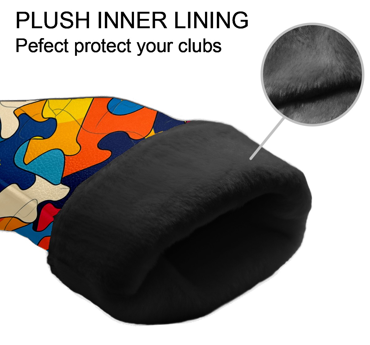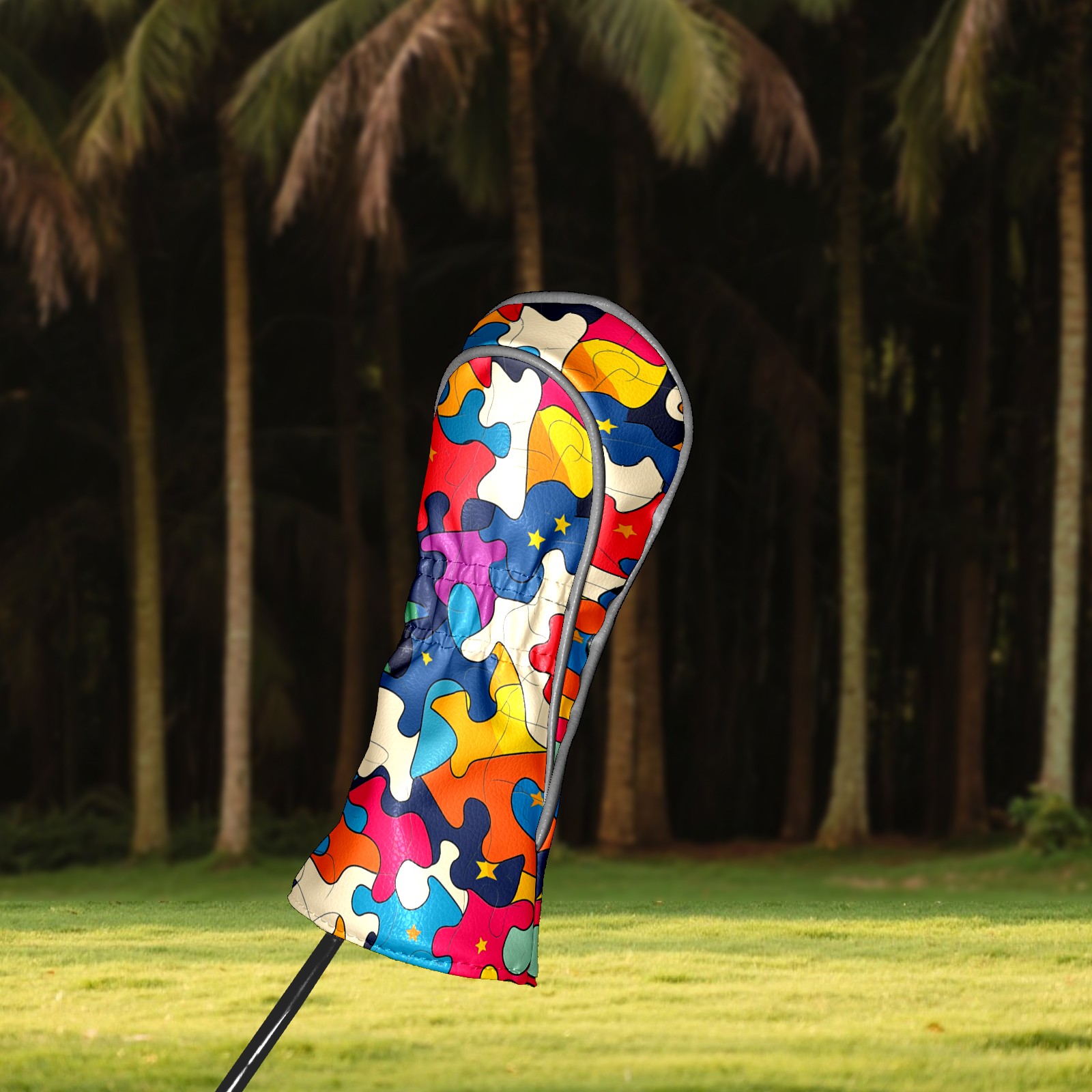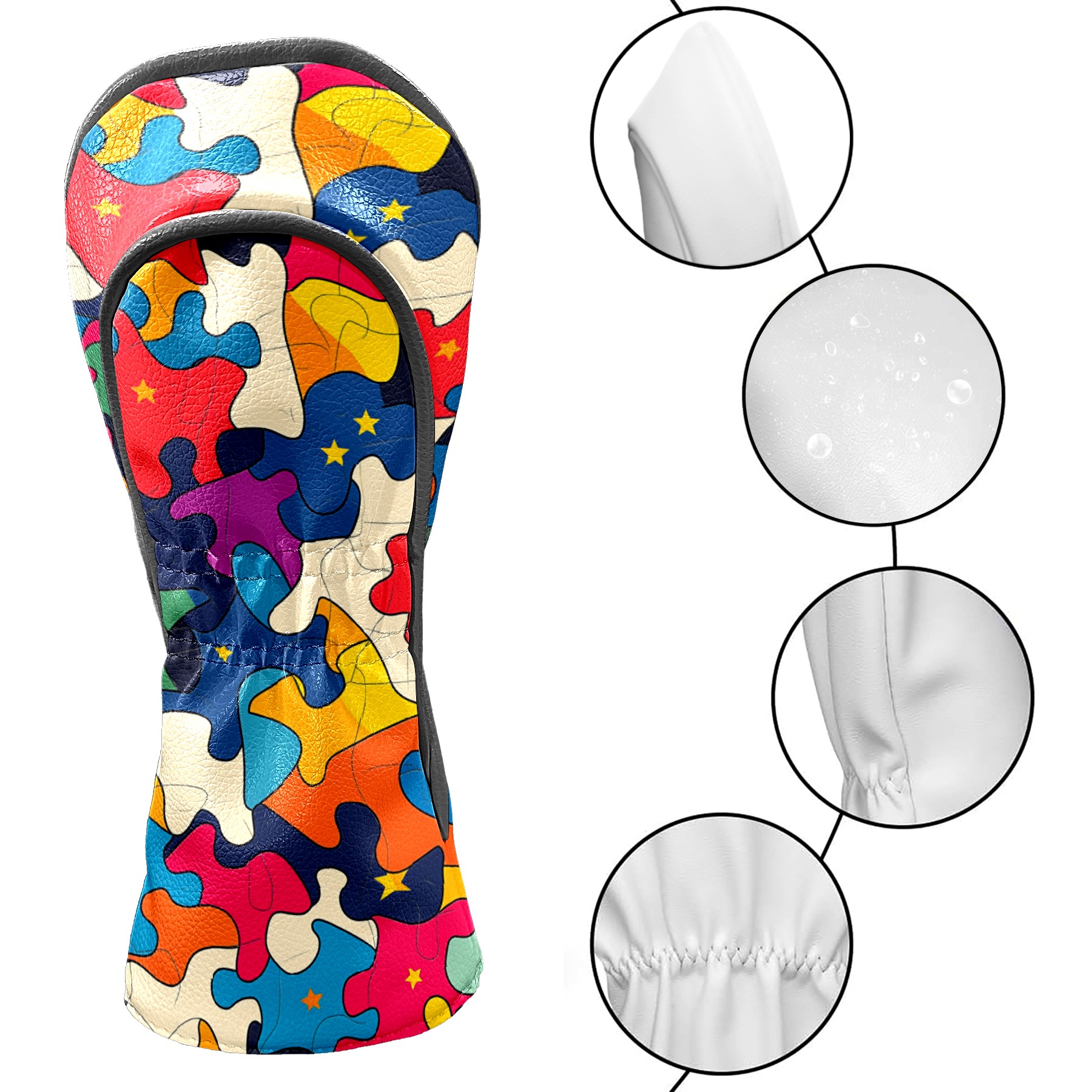 Golf Club Head Covers Color Puzzle PU Leather, Waterproof for Fairway Woods Hybrids