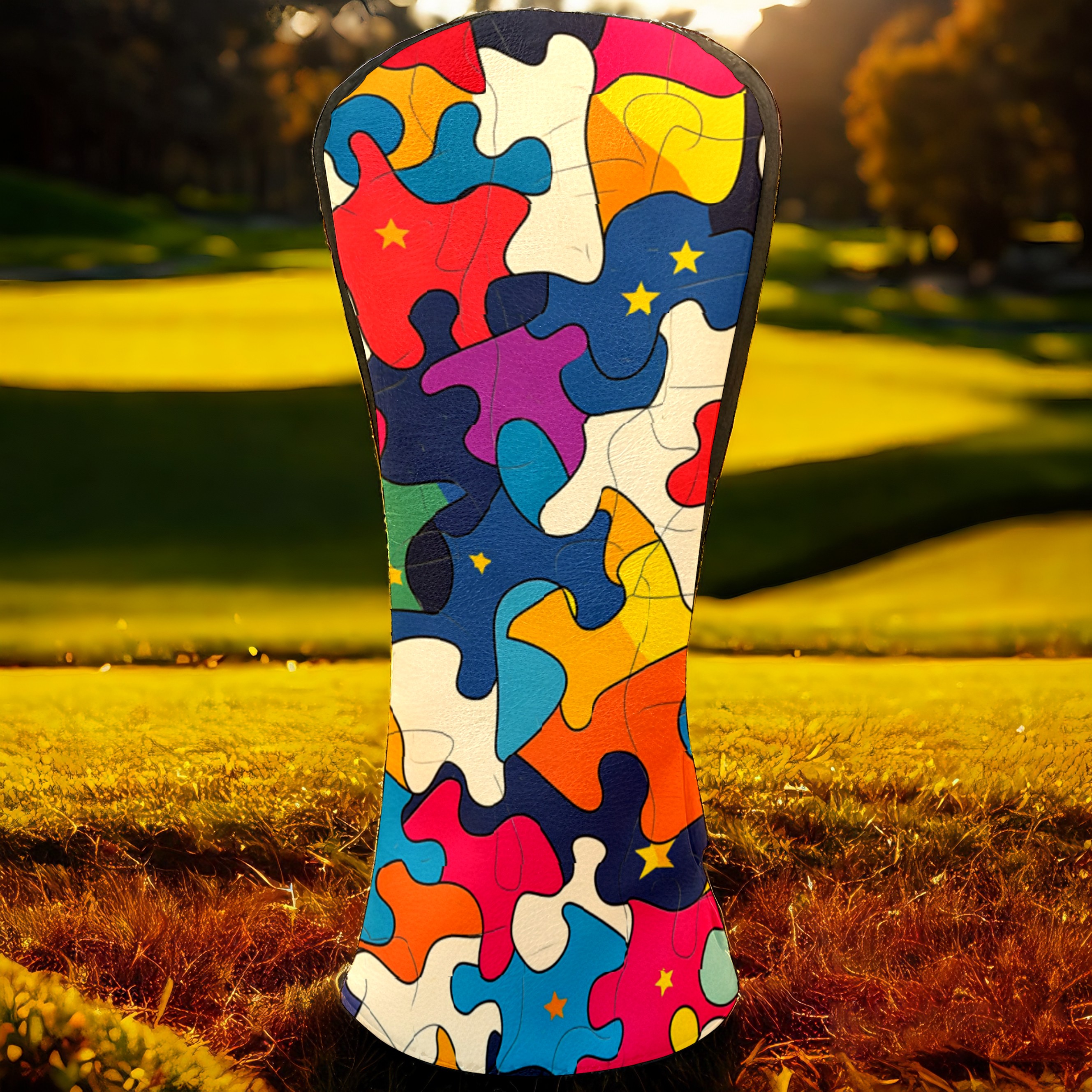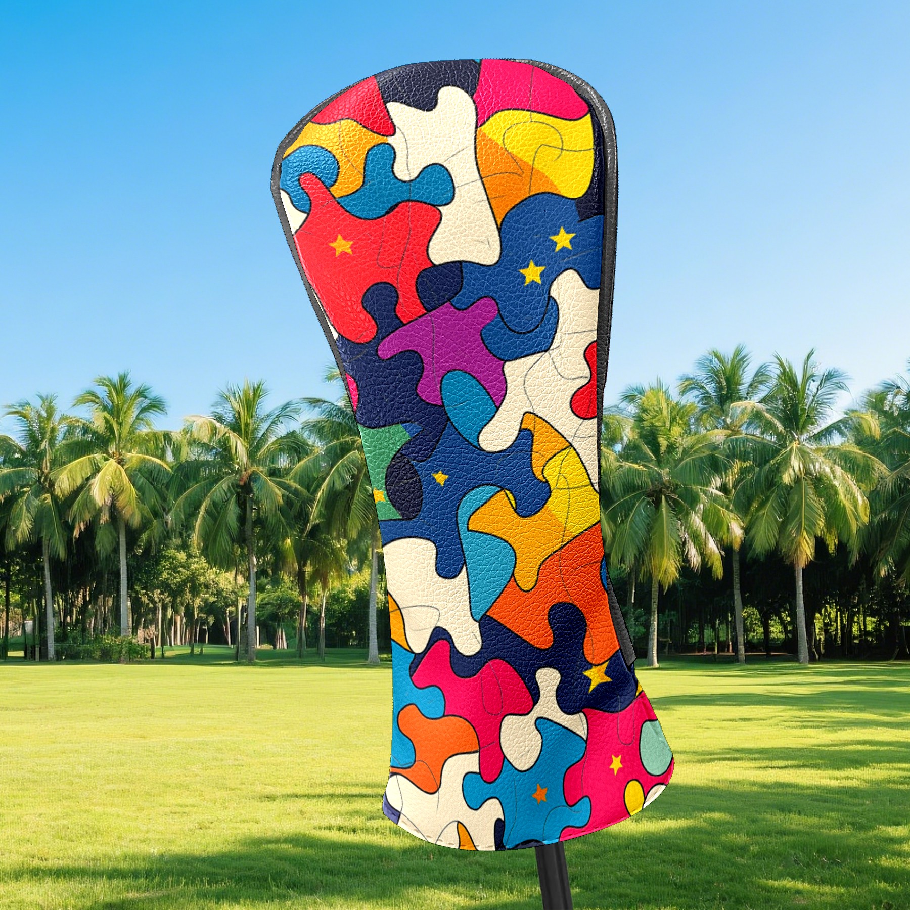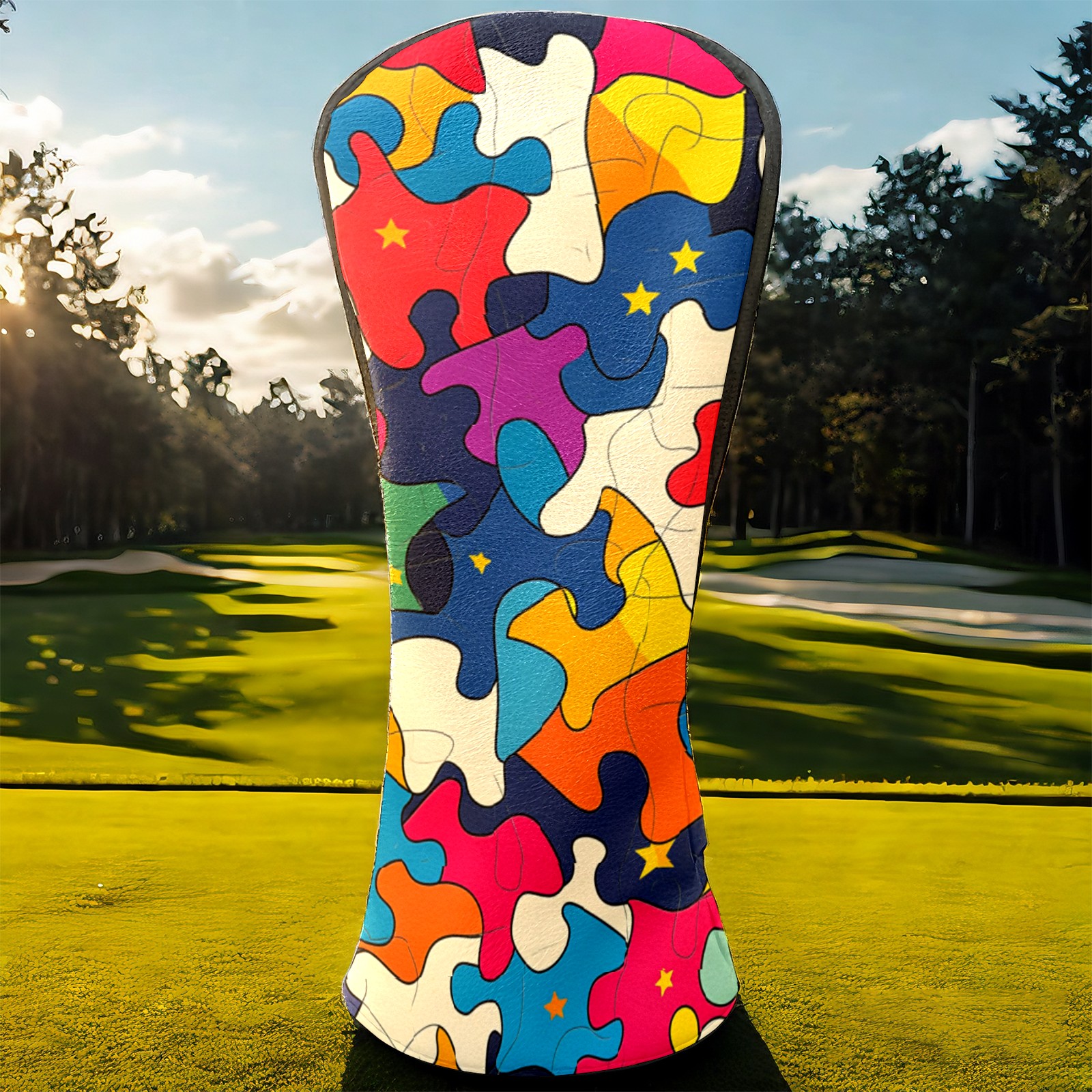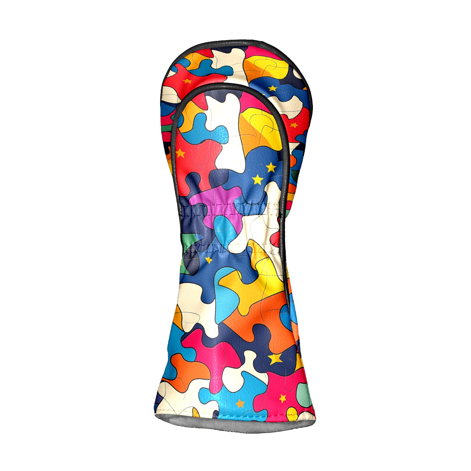 Golf Club Head Covers Color Puzzle PU Leather, Waterproof for Fairway Woods Hybrids