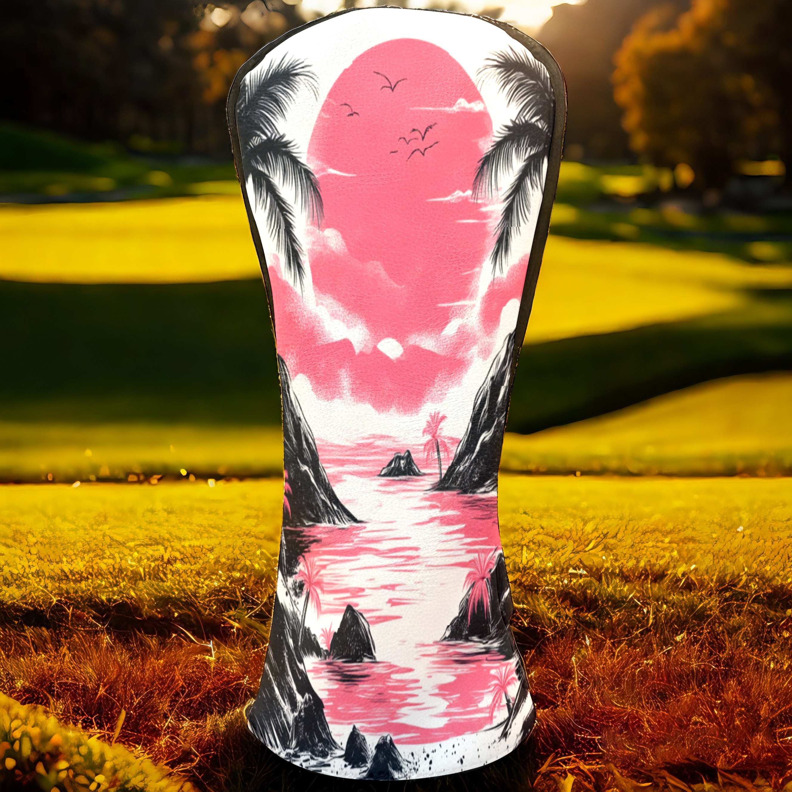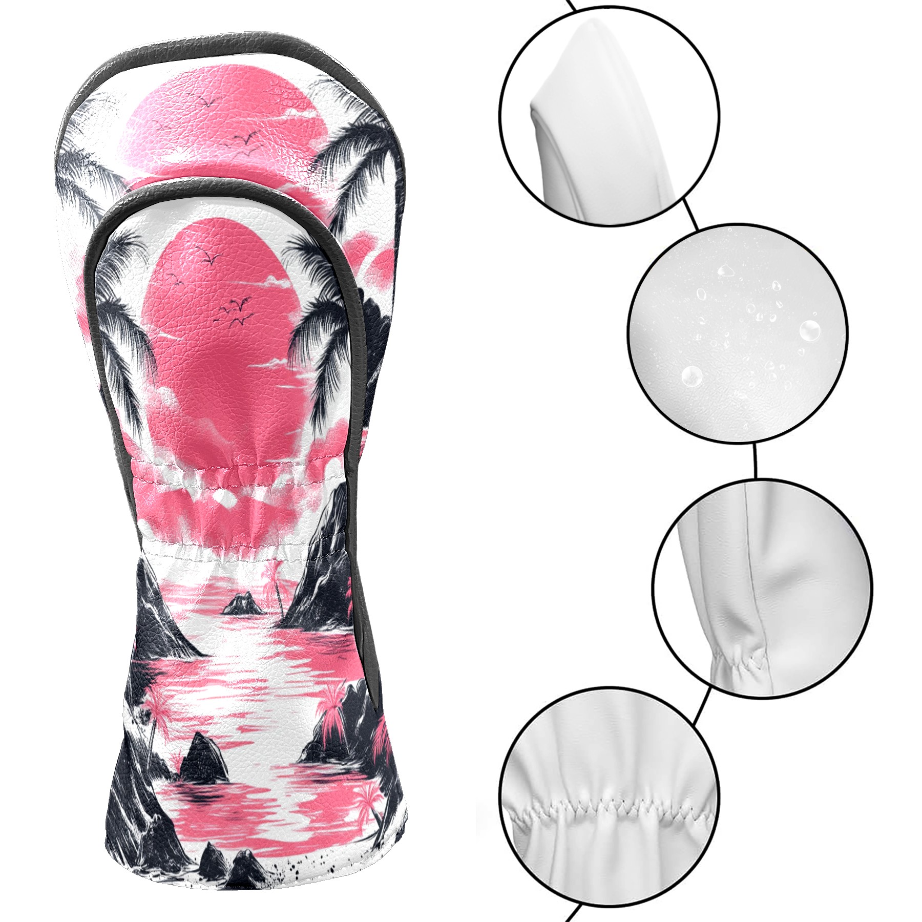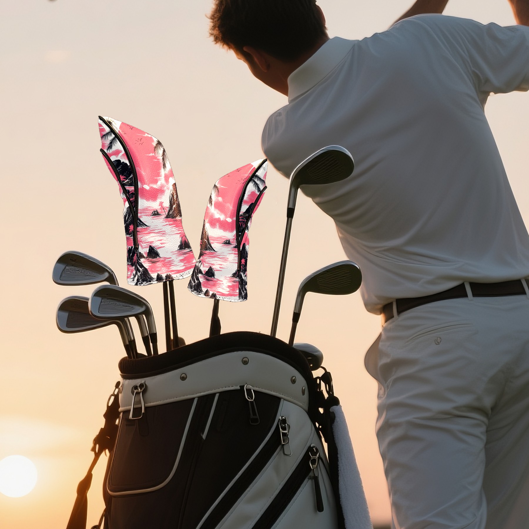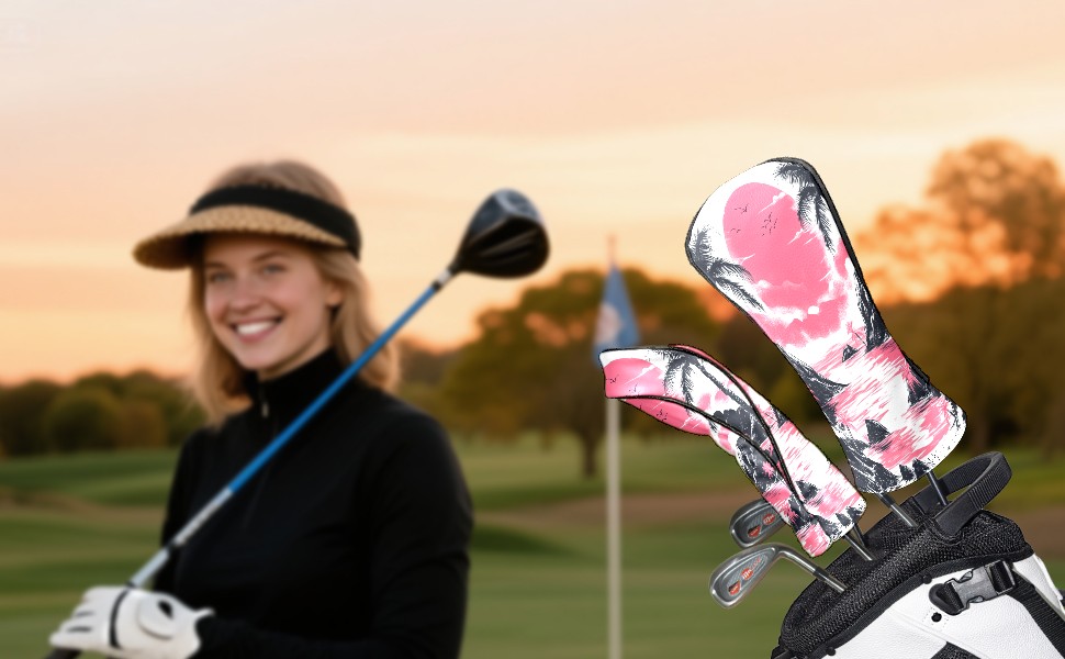Golf Club Head Covers Sunset Beach PU Leather, Waterproof for Fairway Woods Hybrids