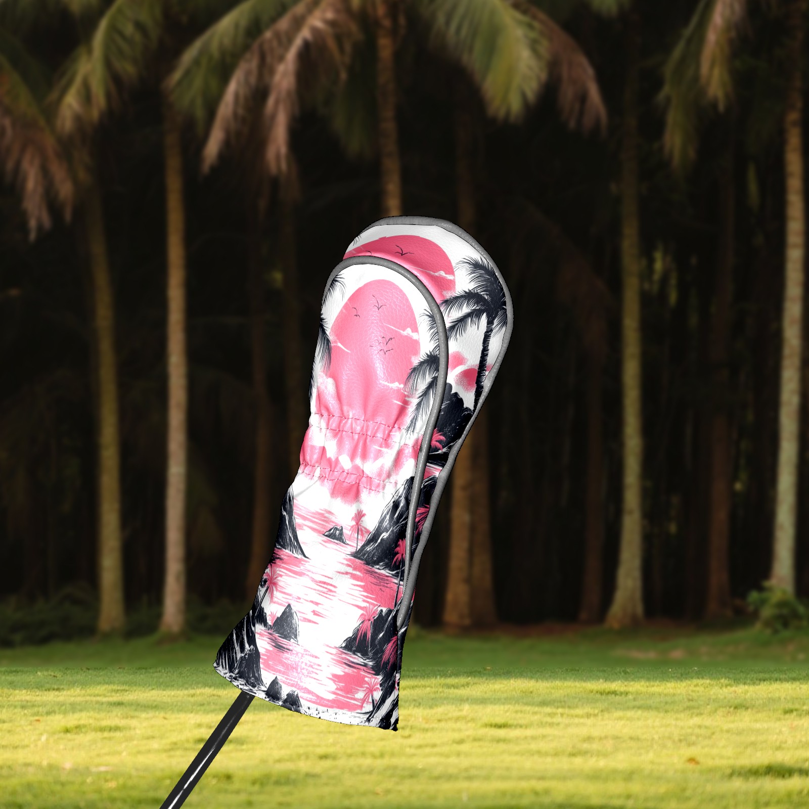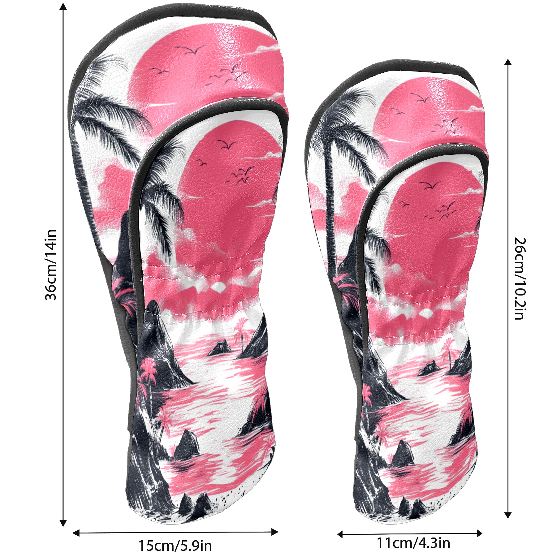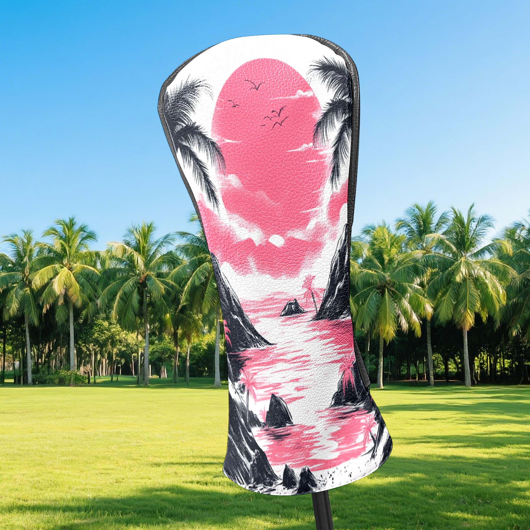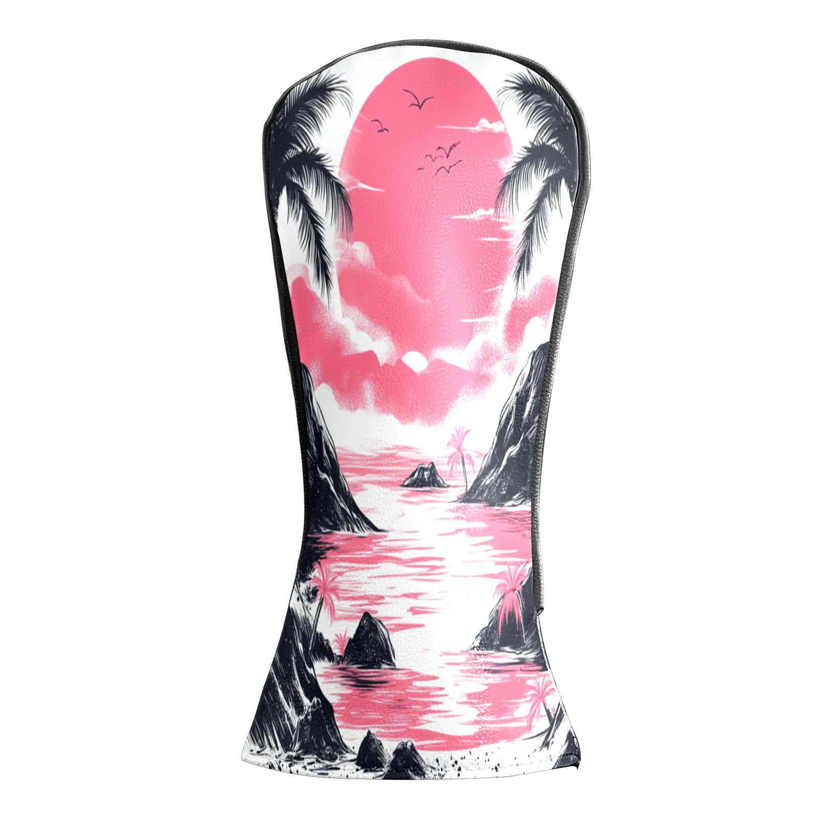 Golf Club Head Covers Sunset Beach PU Leather, Waterproof for Fairway Woods Hybrids