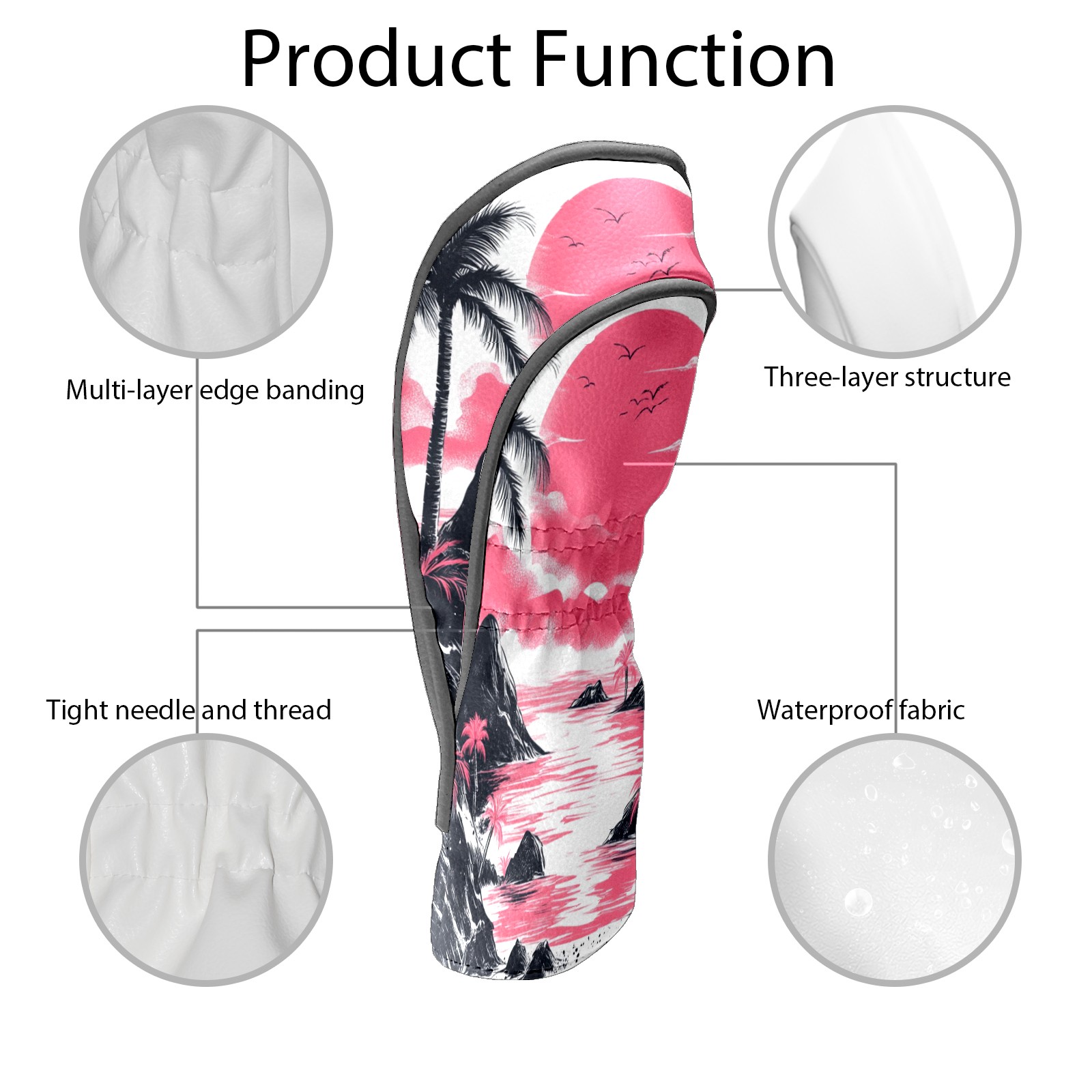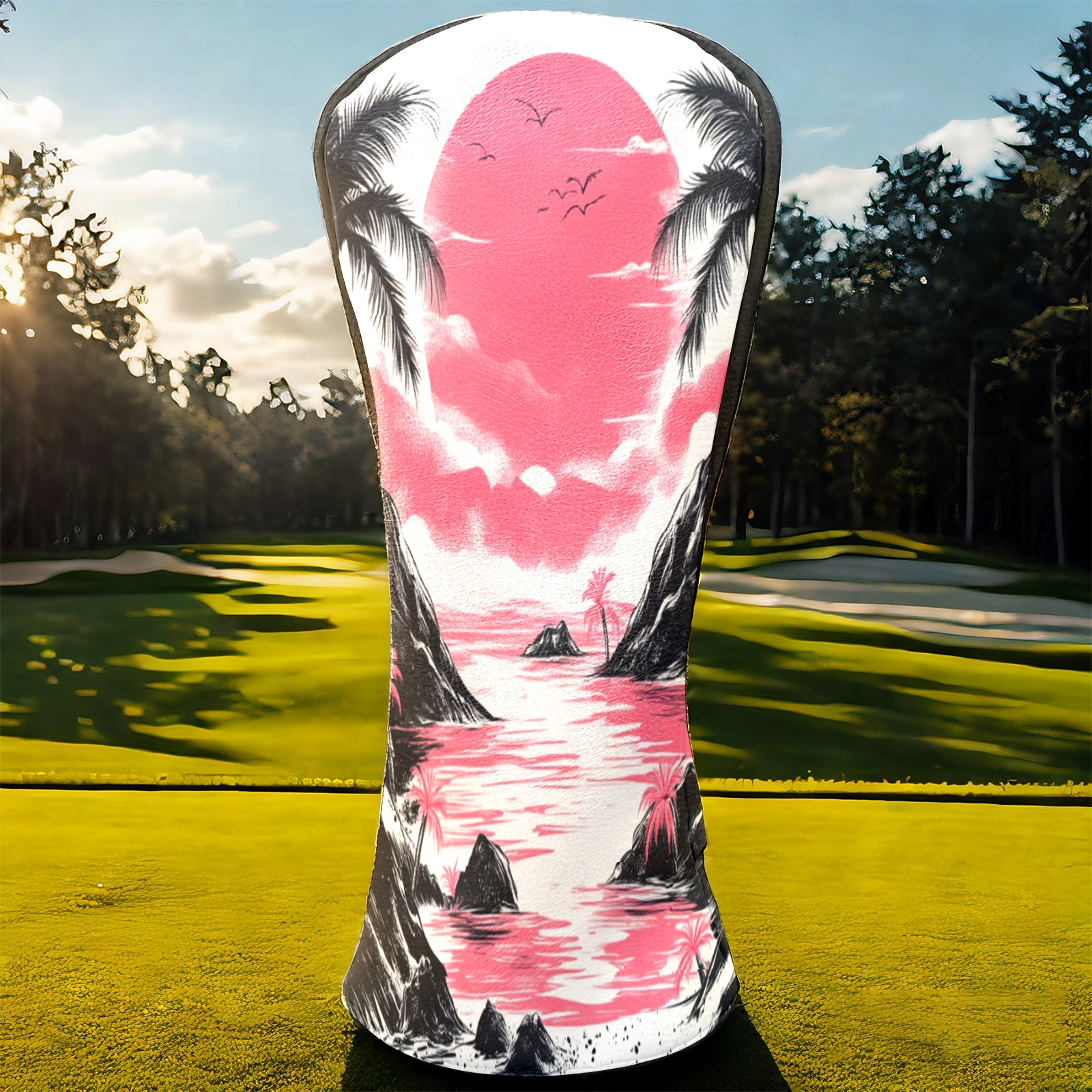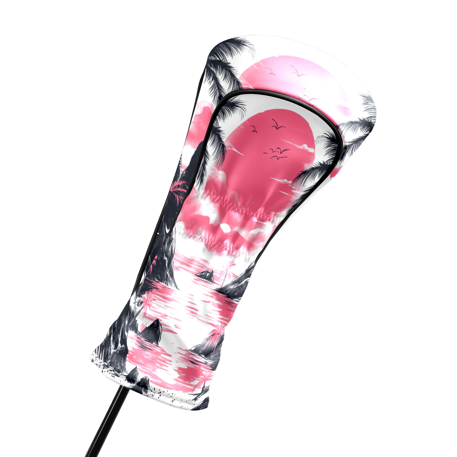 Golf Club Head Covers Sunset Beach PU Leather, Waterproof for Fairway Woods Hybrids
