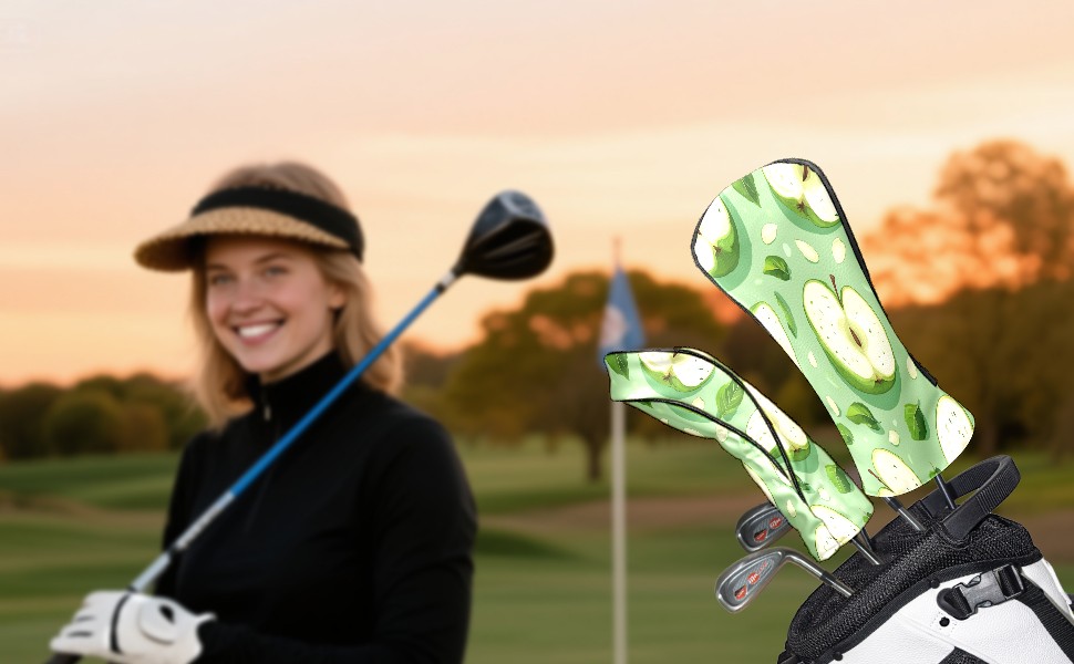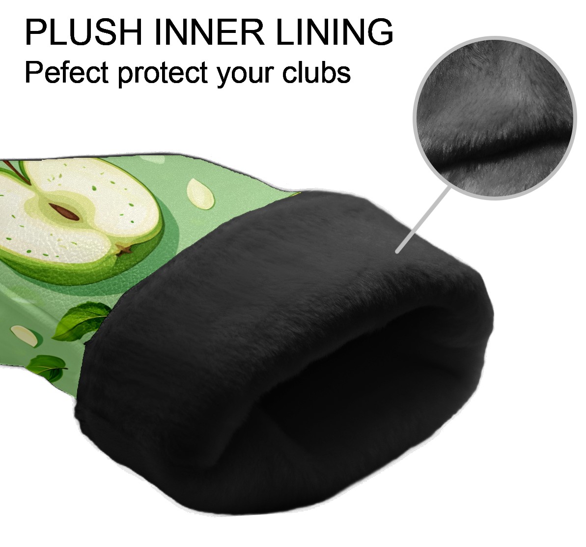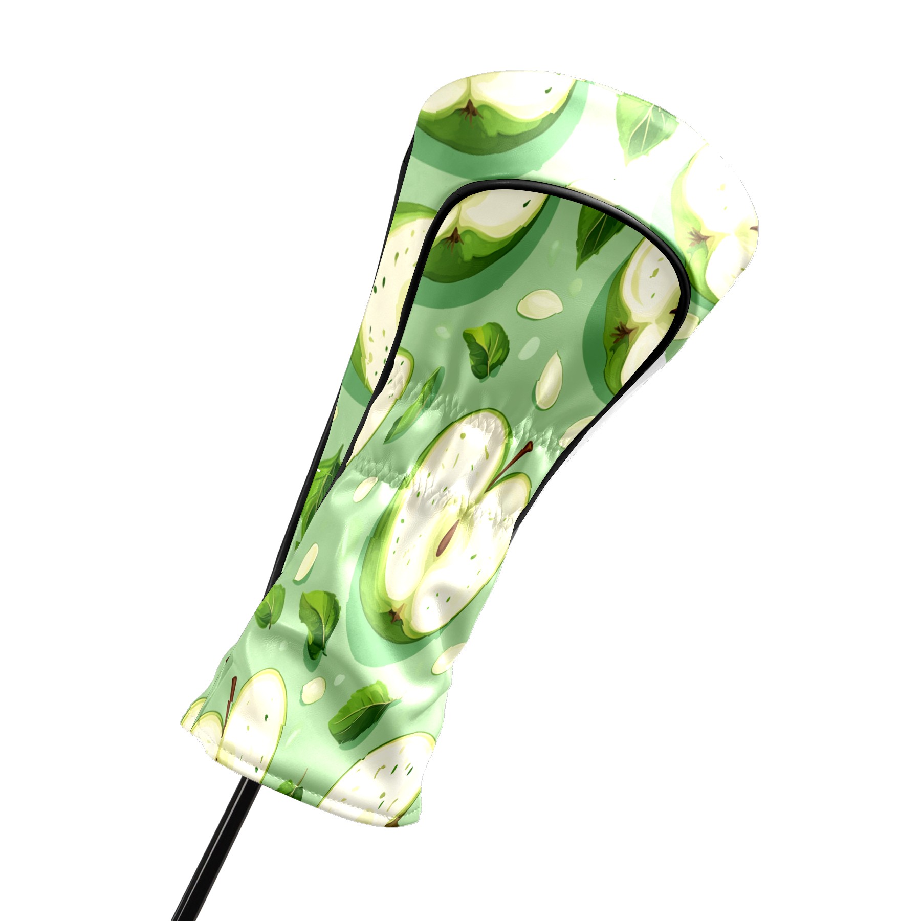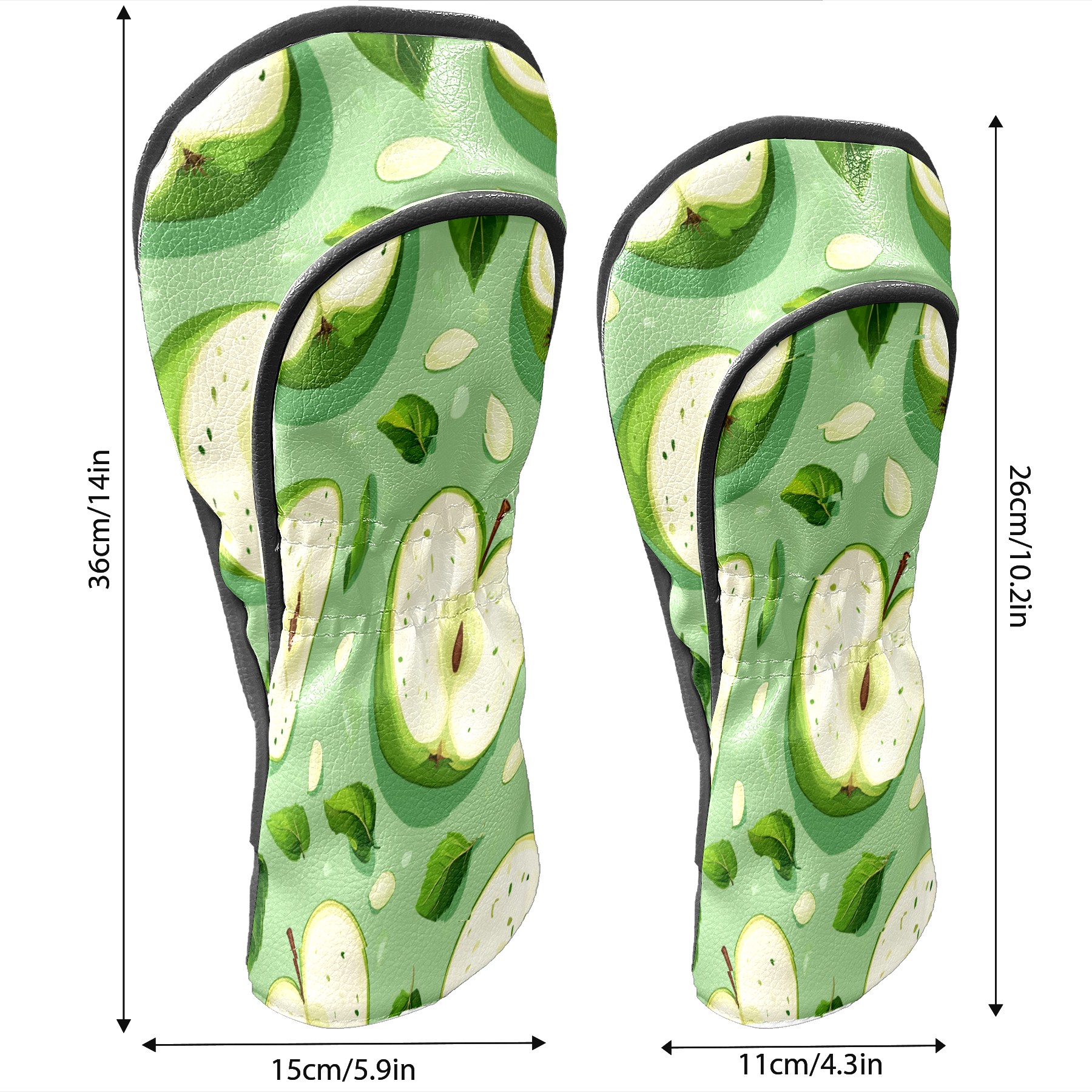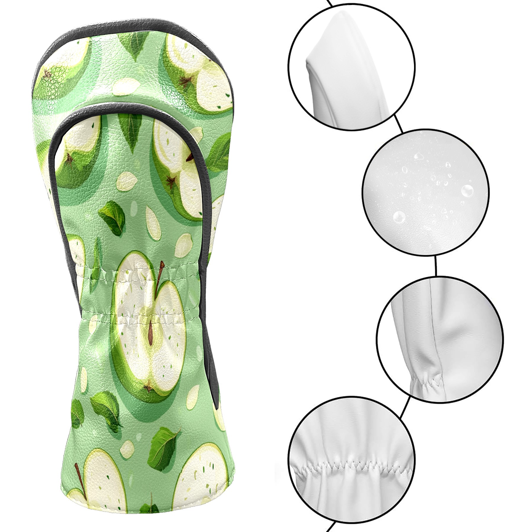 Golf Club Head Covers Green Apple PU Leather, Waterproof for Fairway Woods Hybrids