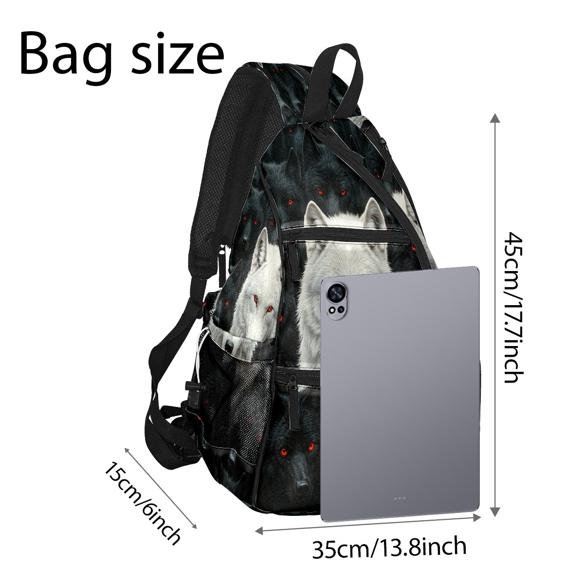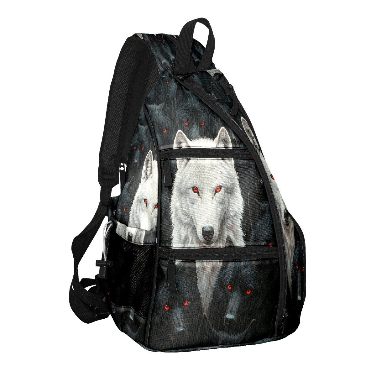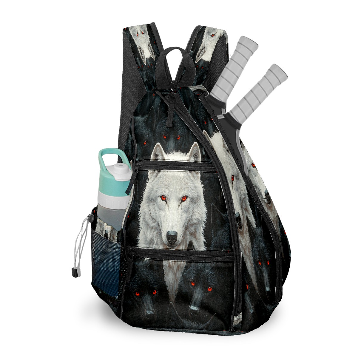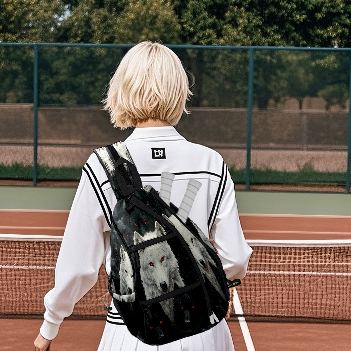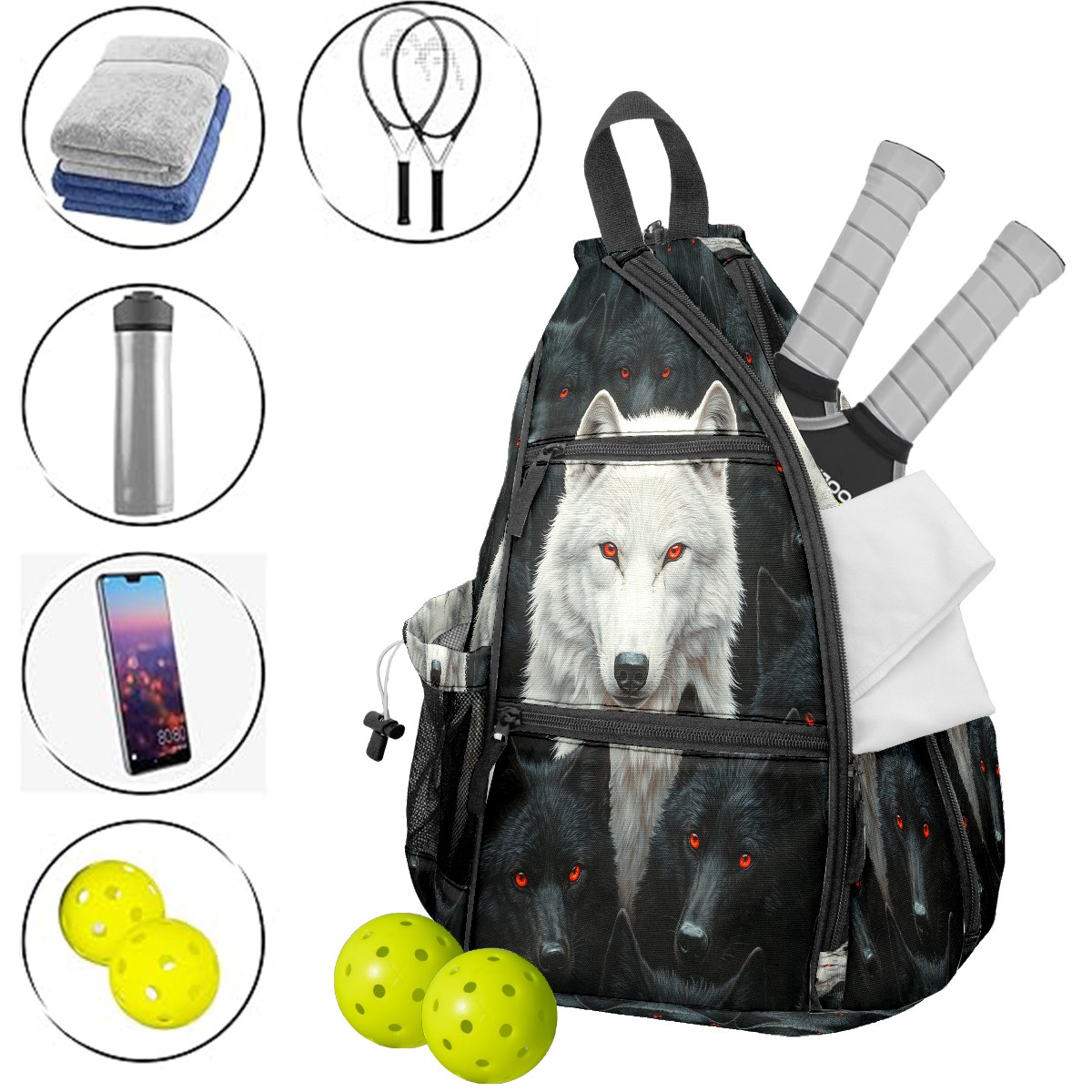 Pickleball Bag Black Wolf (1) Pickle Ball Backpack for Women Men Premium Lightweight Crossbody Sling Bag Sports Backpack for Pickleball Paddle Tennis