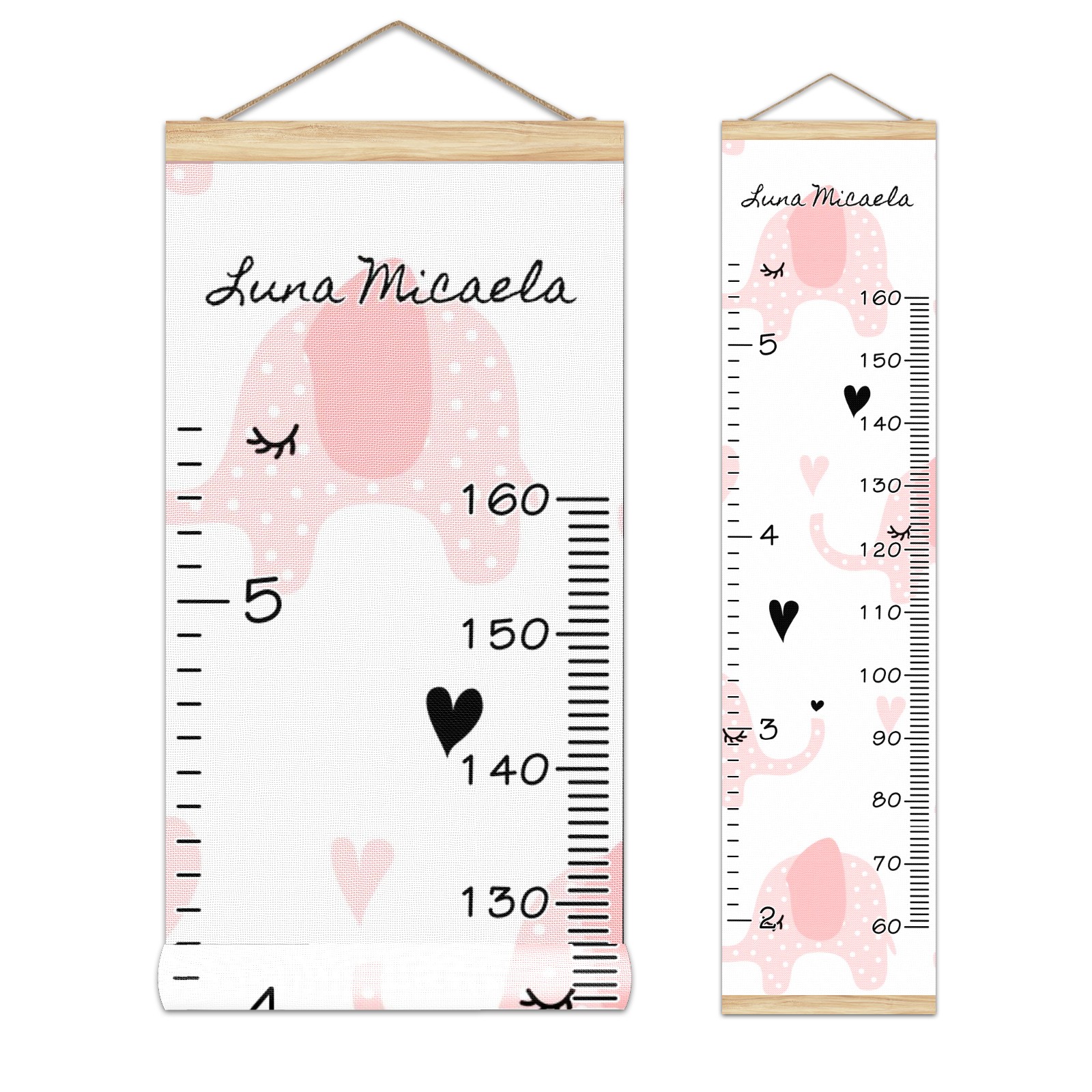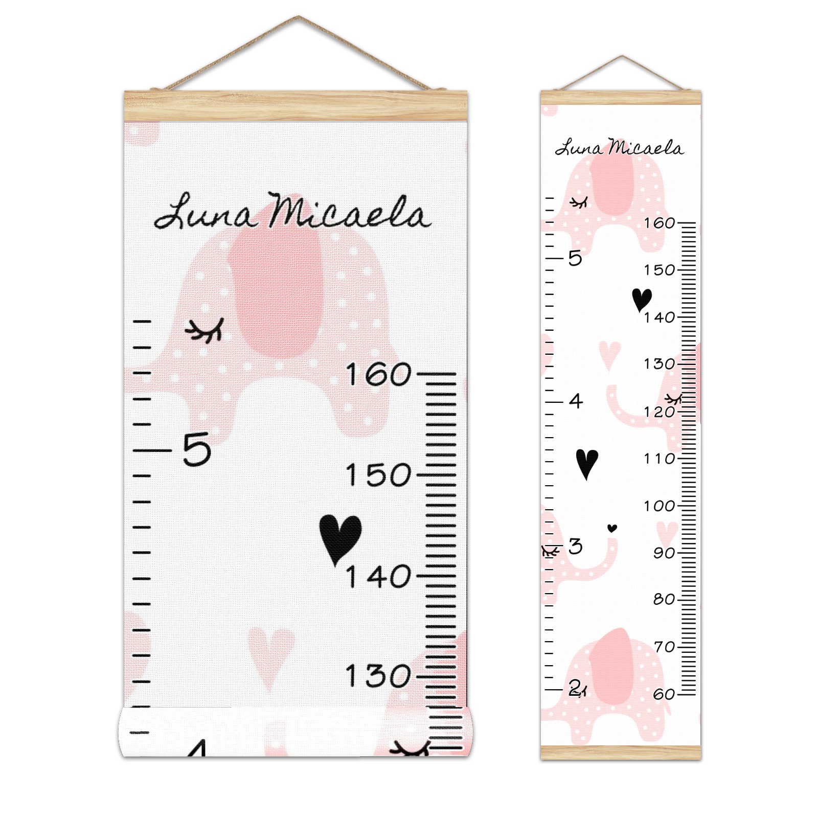 Personalized Kids Name Growth Chart Ruler for Wall Wood Frame Canvas Height Measure Chart 13.4x56 in Hanging Growth Chart Pink Elephant9.25 Boys Girls Room Decor