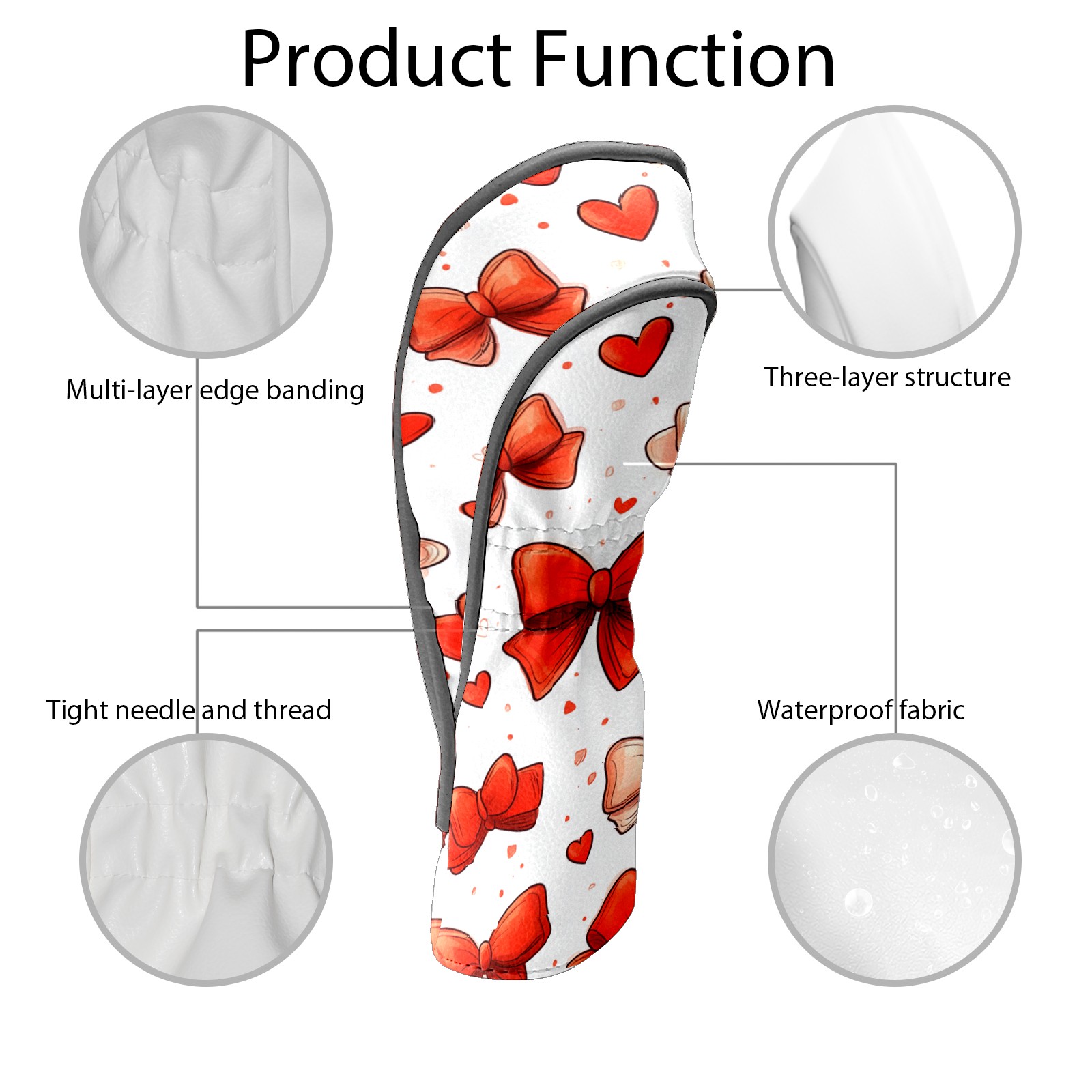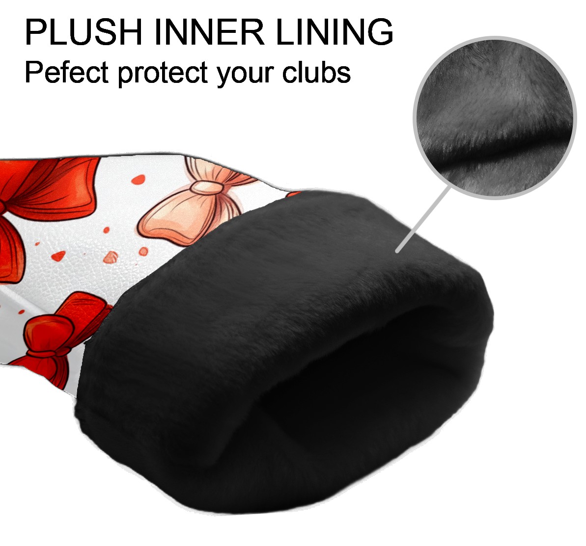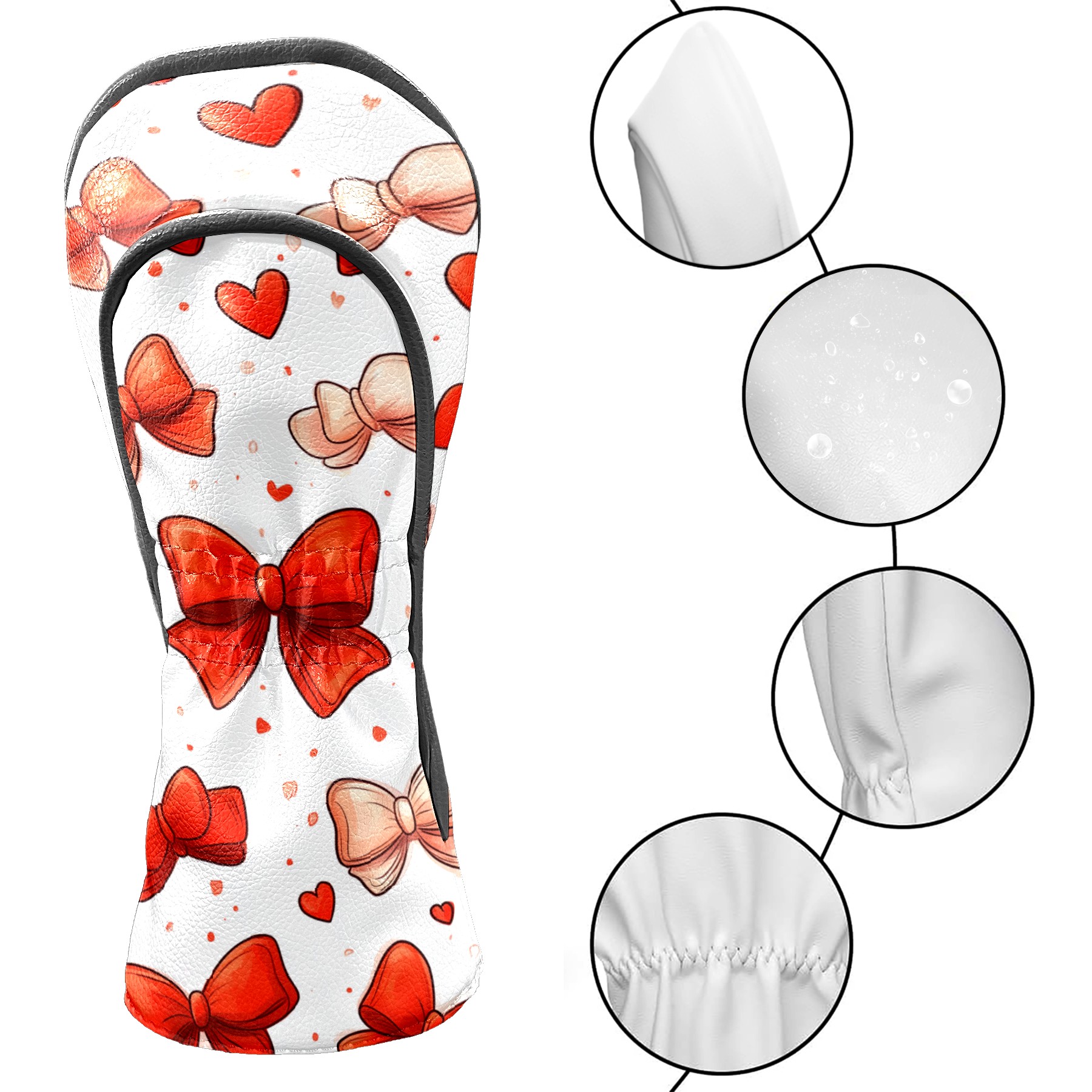 Golf Club Covers PU Leather Waterproof,Golf Club Head Covers for Fairway Woods and Hybrids Red Bow Unisex Suitable for Most Brands