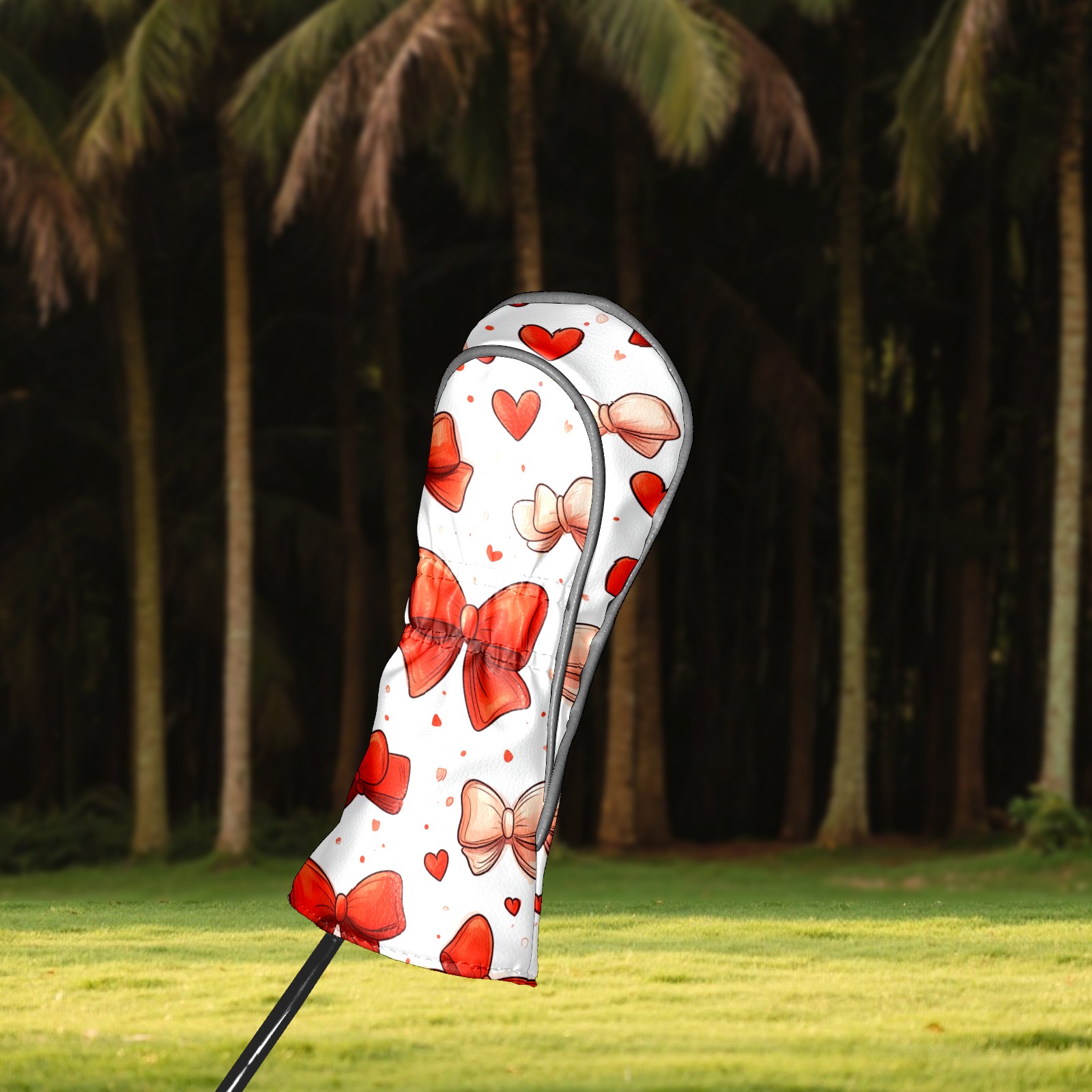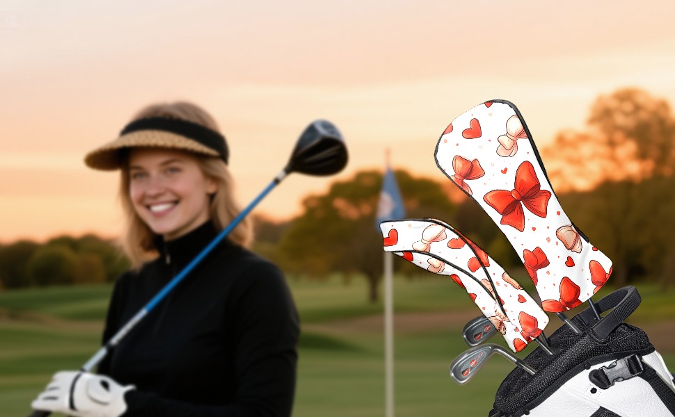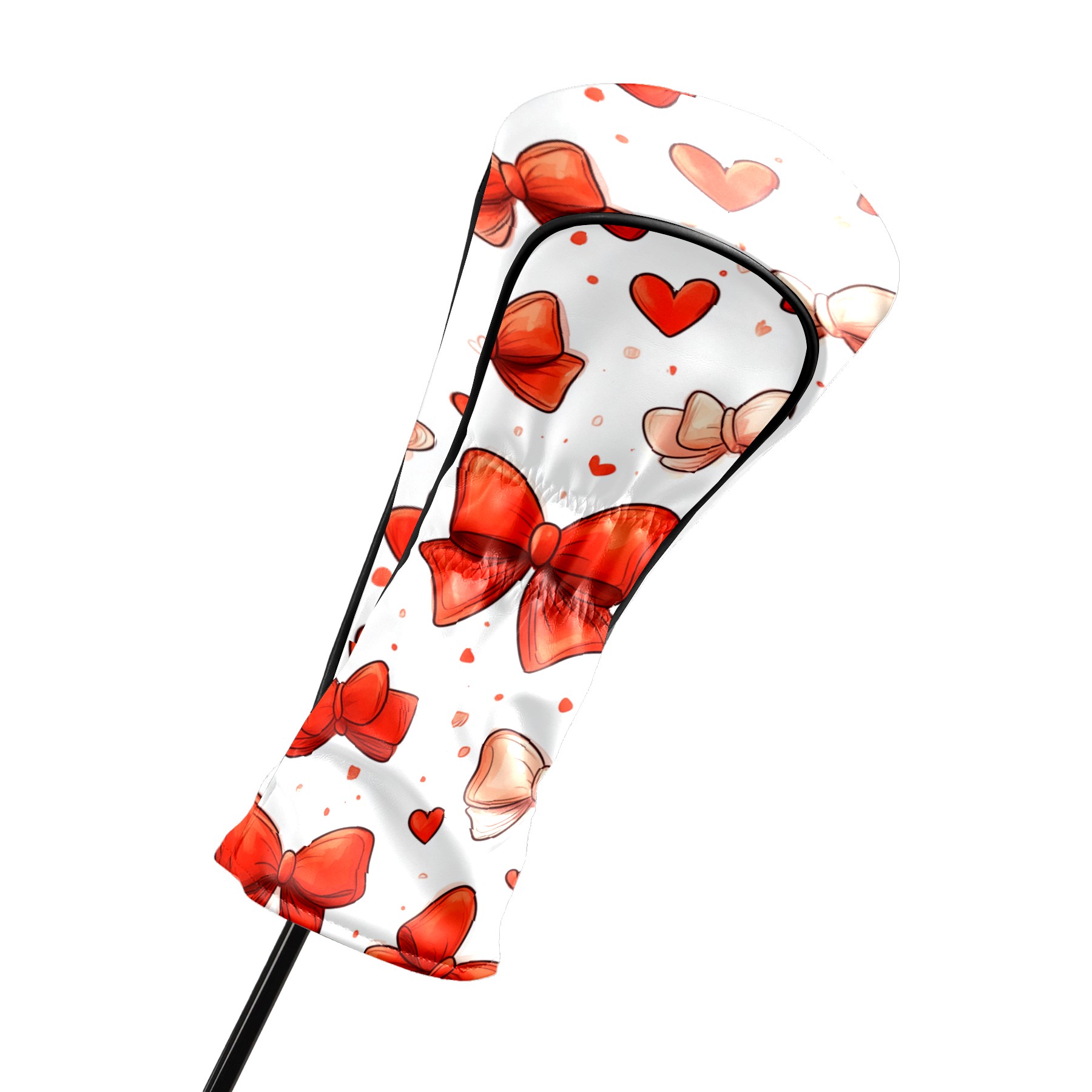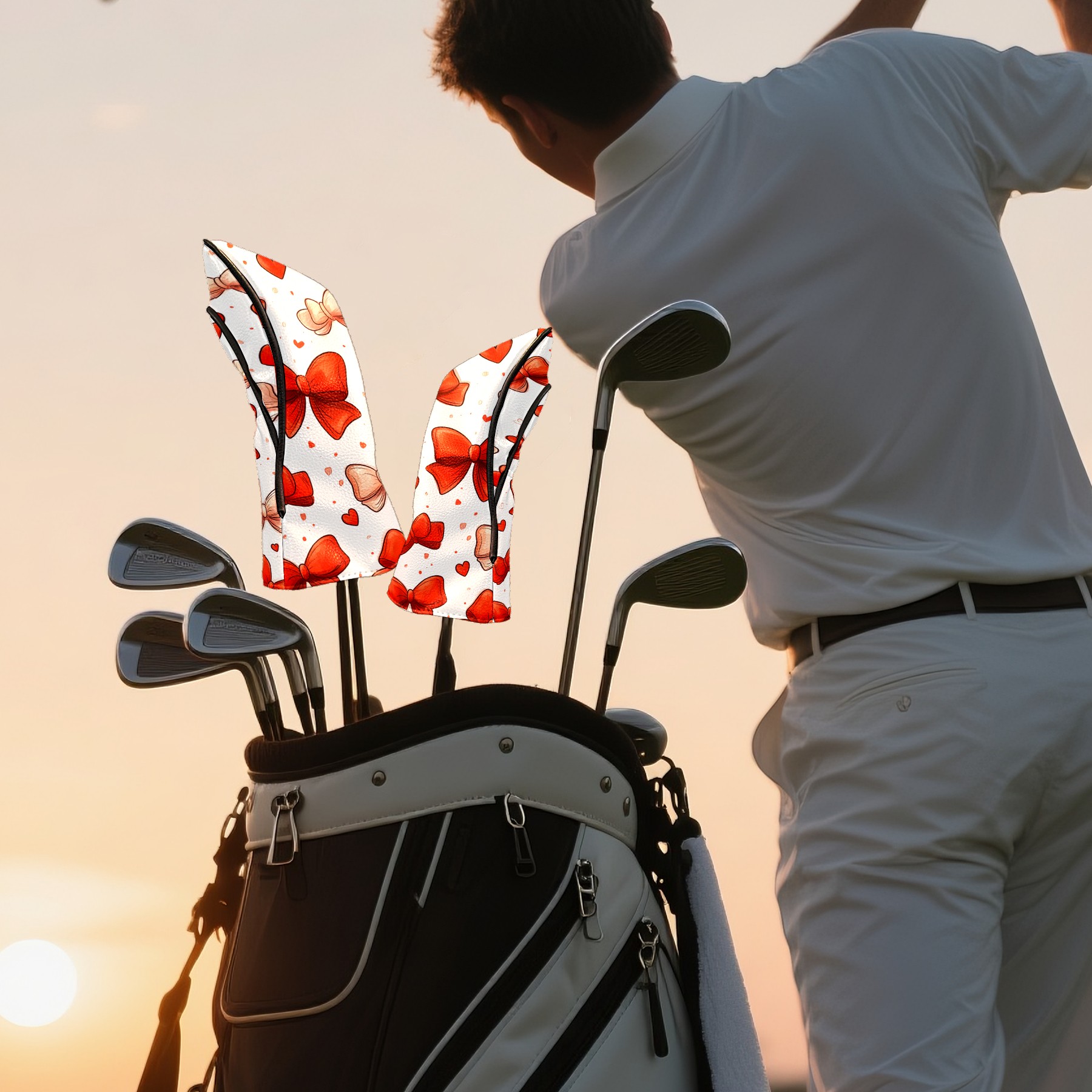 Golf Club Covers PU Leather Waterproof,Golf Club Head Covers for Fairway Woods and Hybrids Red Bow Unisex Suitable for Most Brands