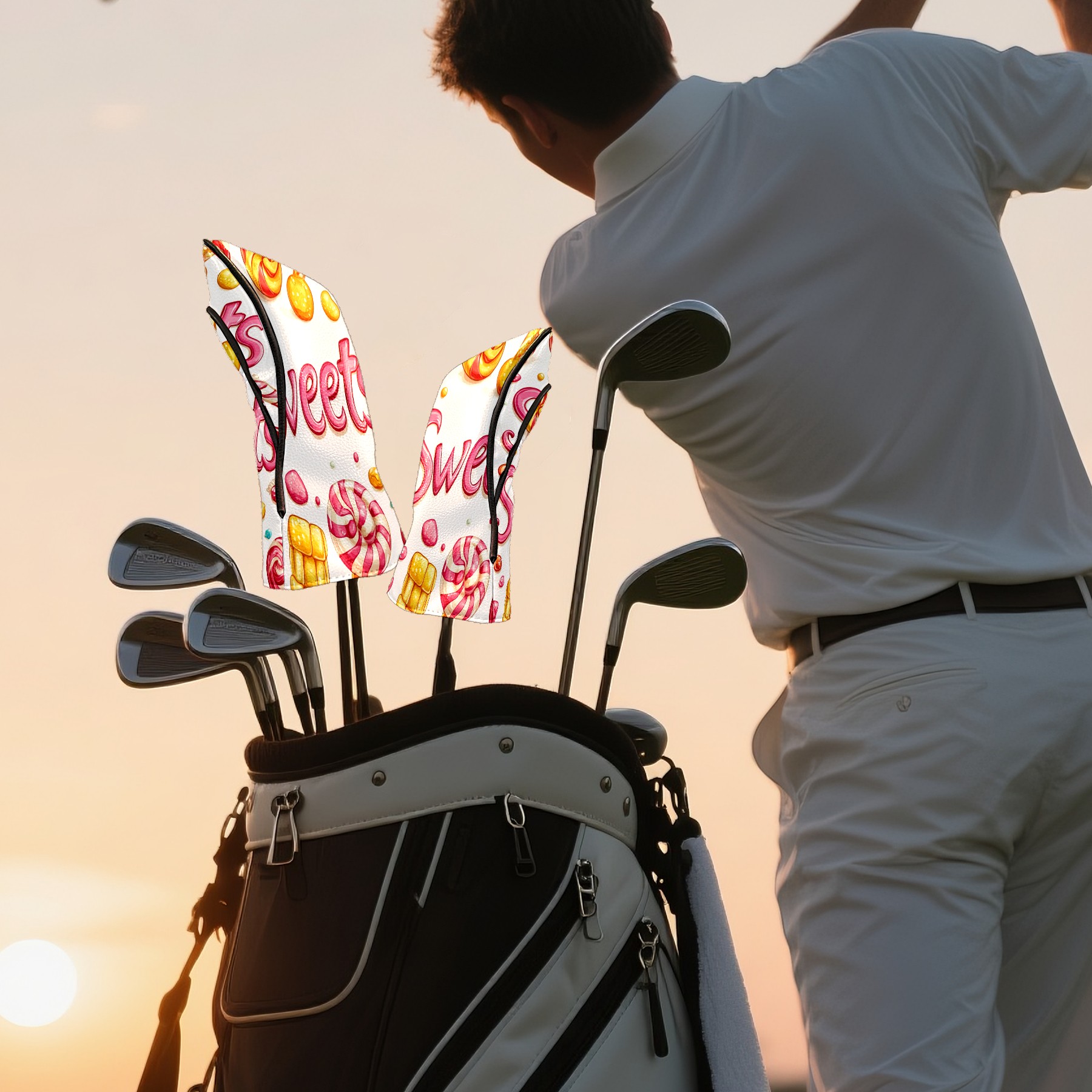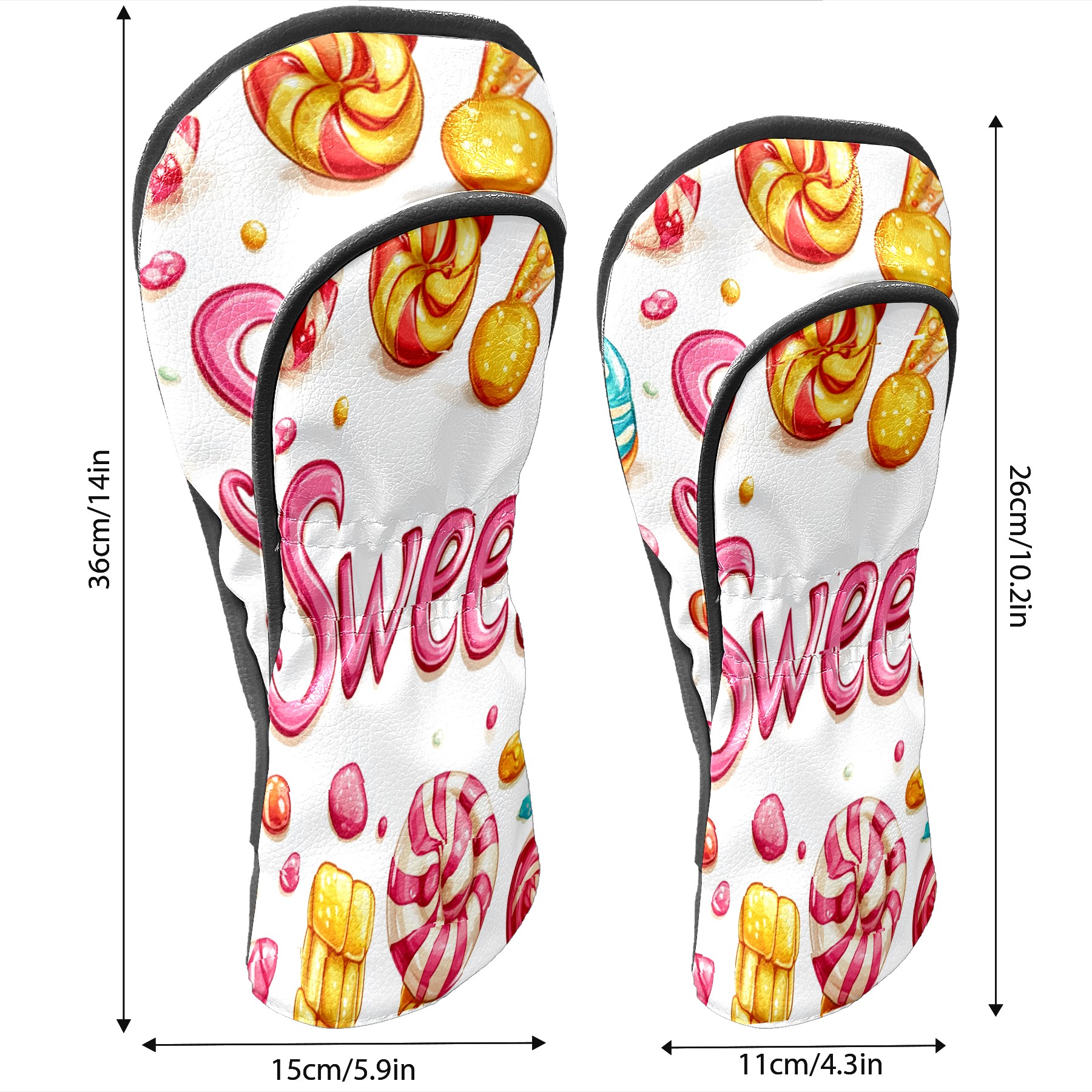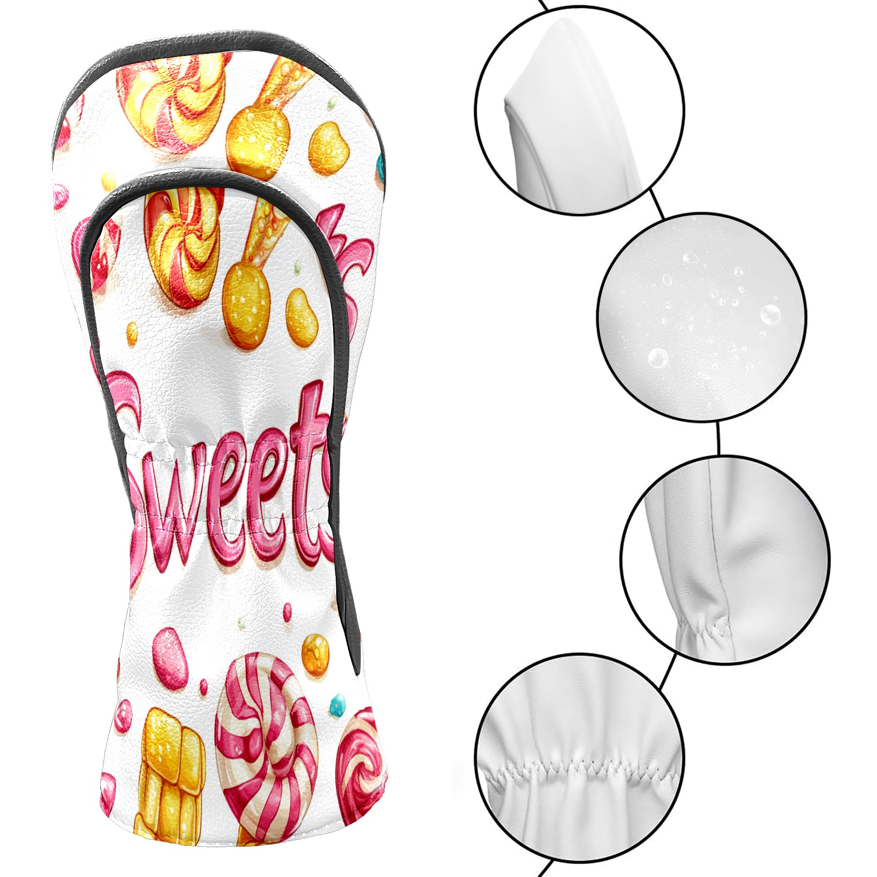 Golf Club Covers PU Leather Waterproof,Golf Club Head Covers for Fairway Woods and Hybrids Sweet Candy Unisex Suitable for Most Brands