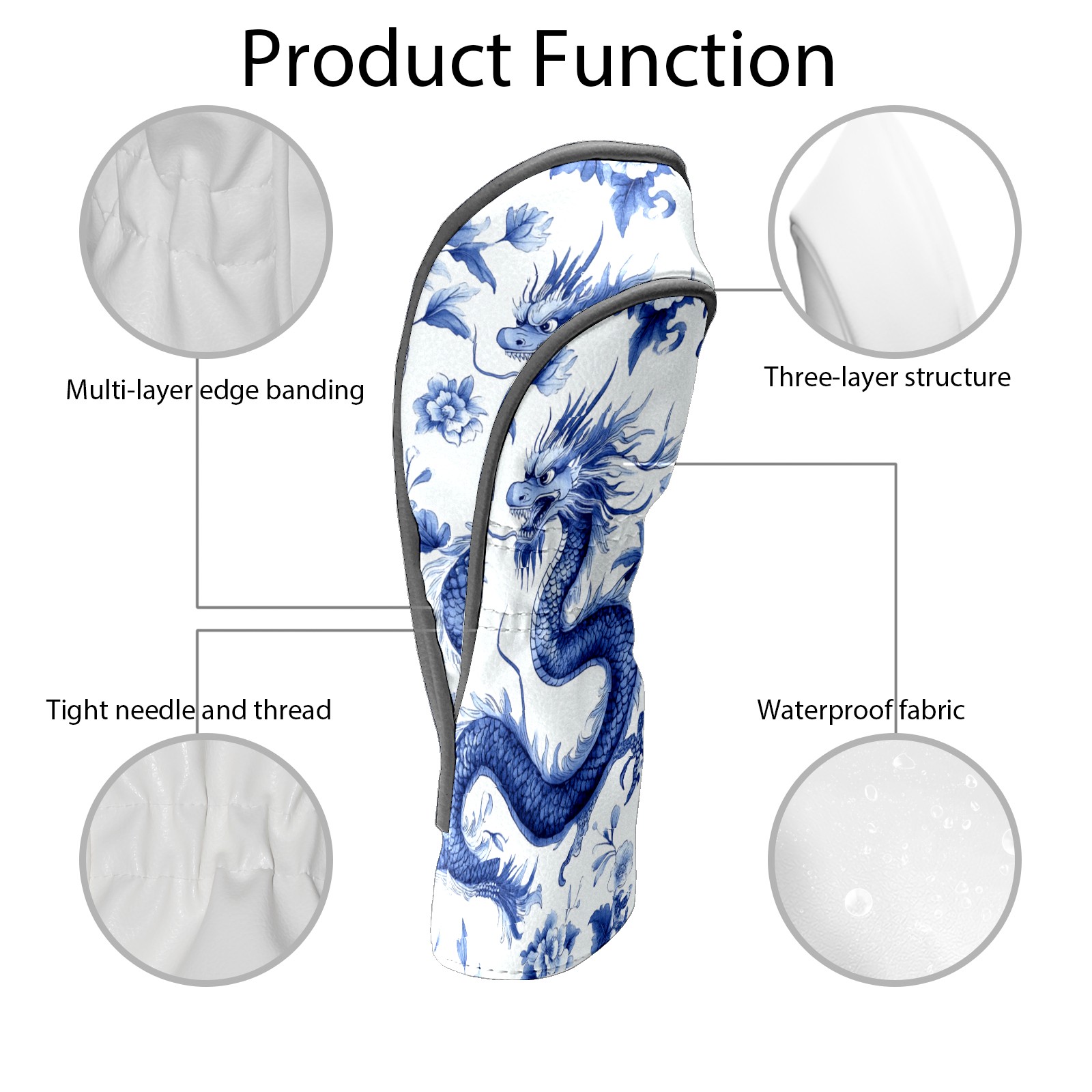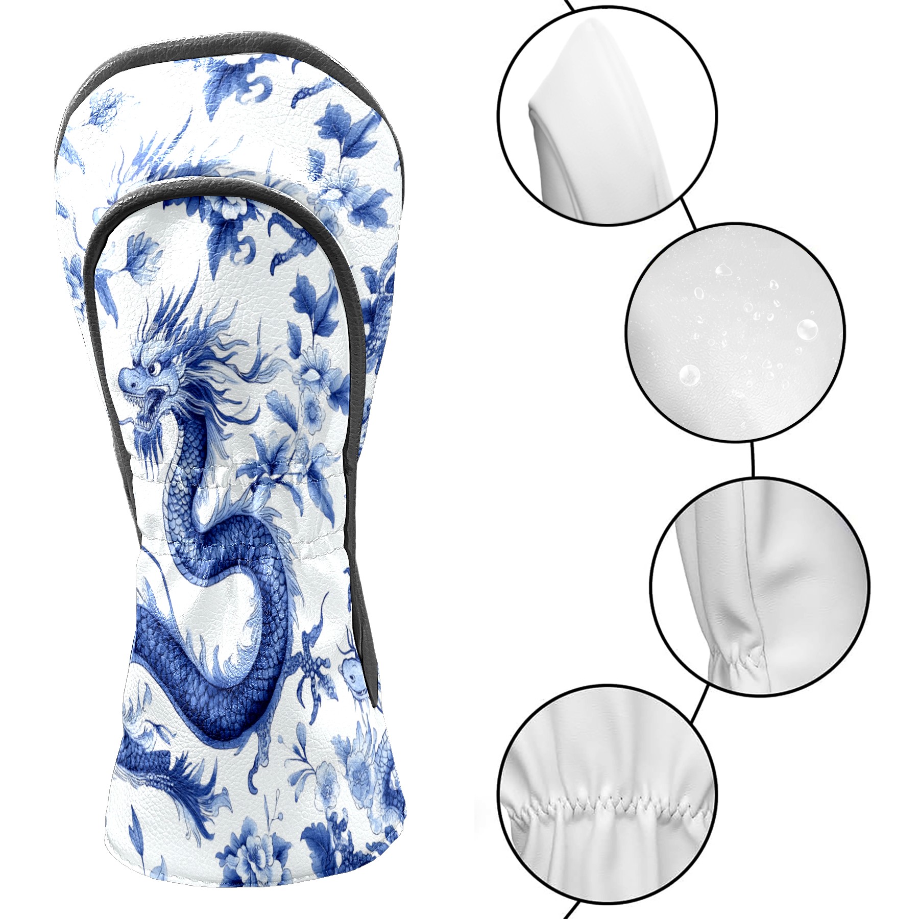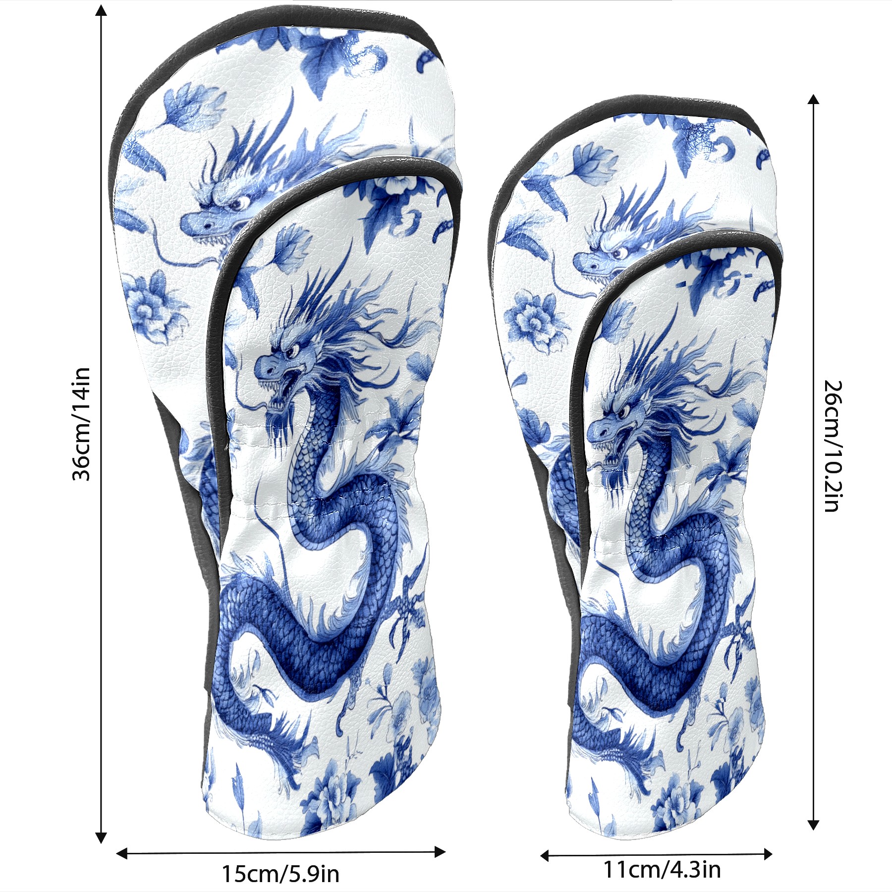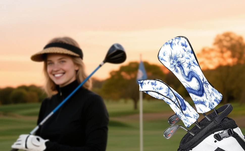 Golf Club Covers PU Leather Waterproof,Golf Club Head Covers for Fairway Woods and Hybrids Dragon Pattern Unisex Suitable for Most Brands