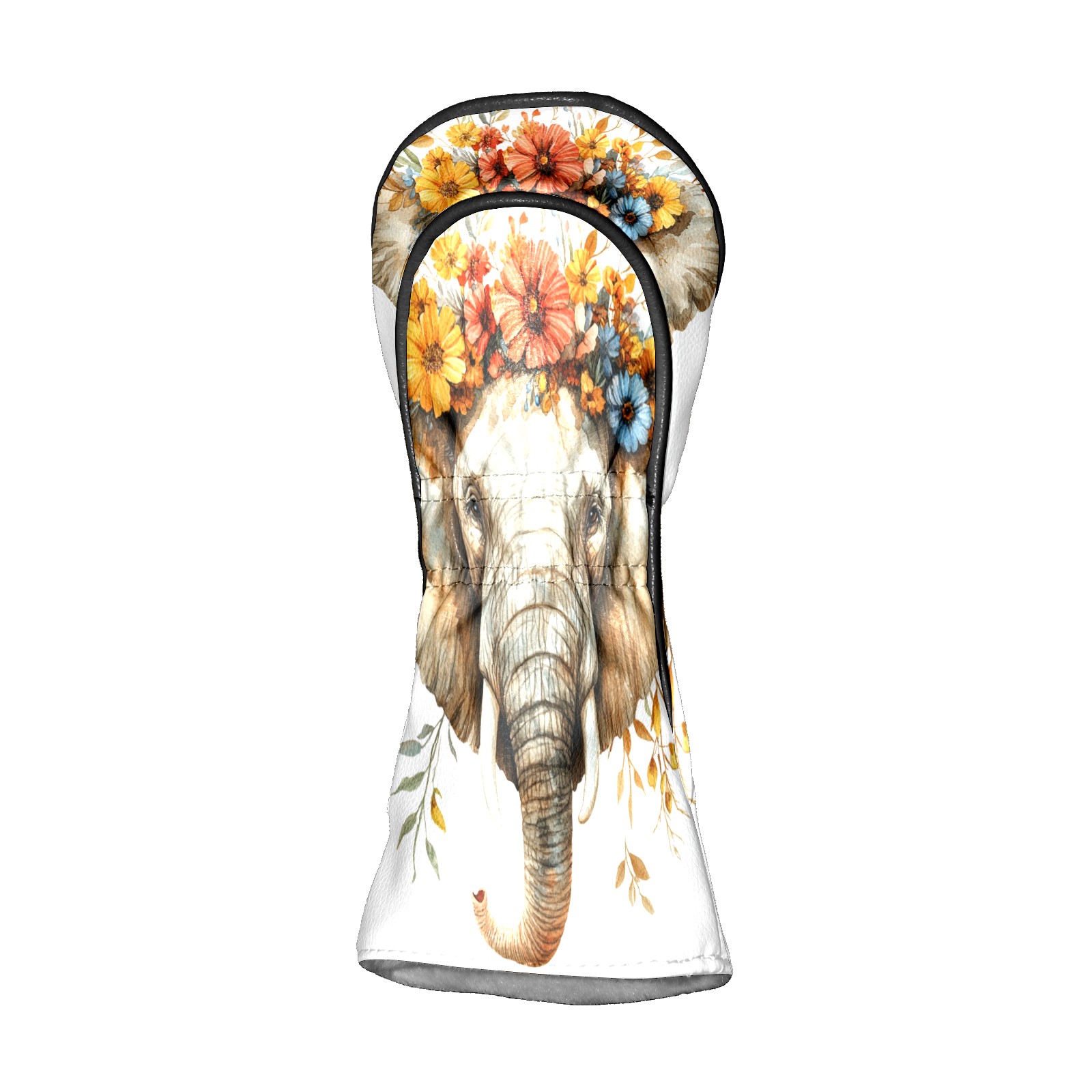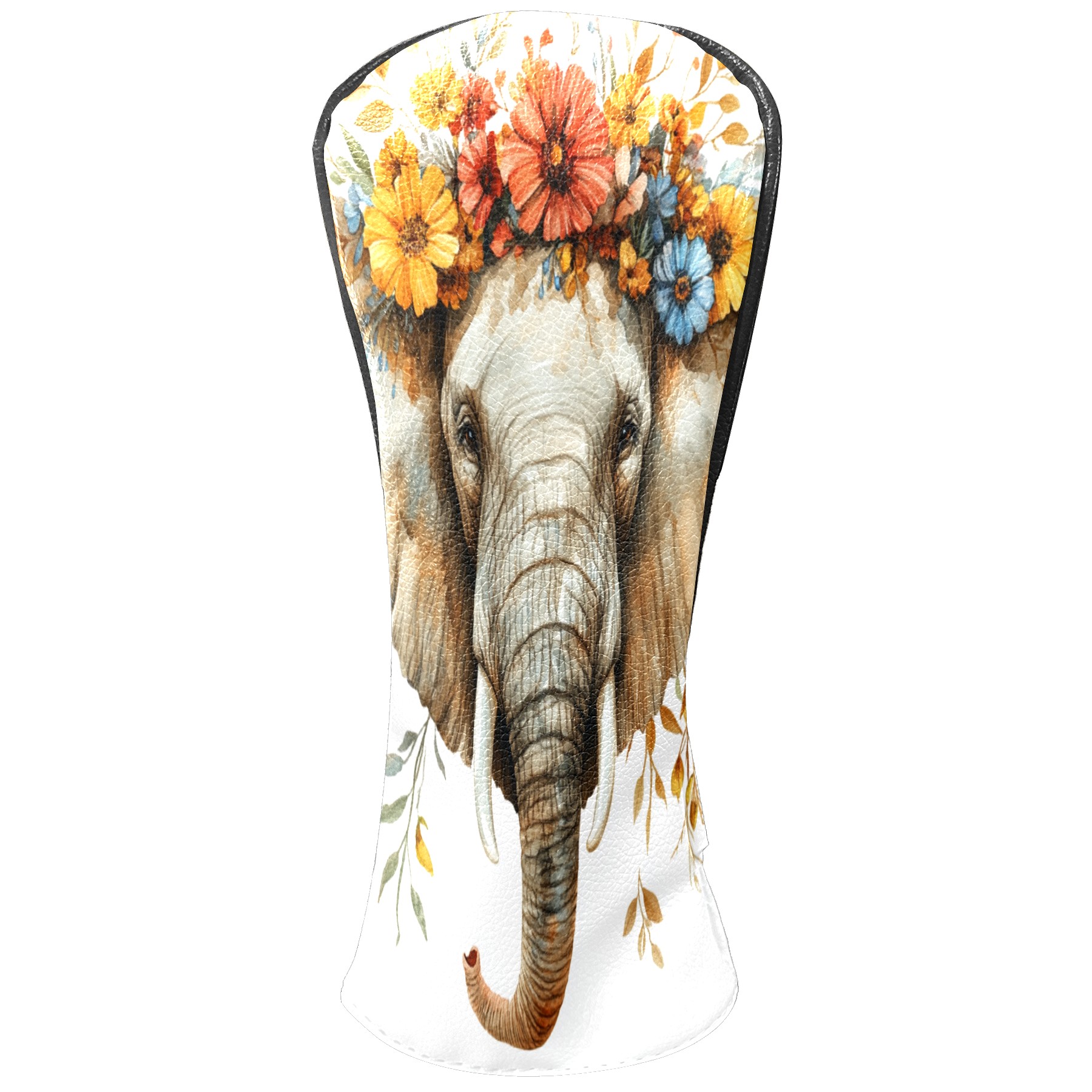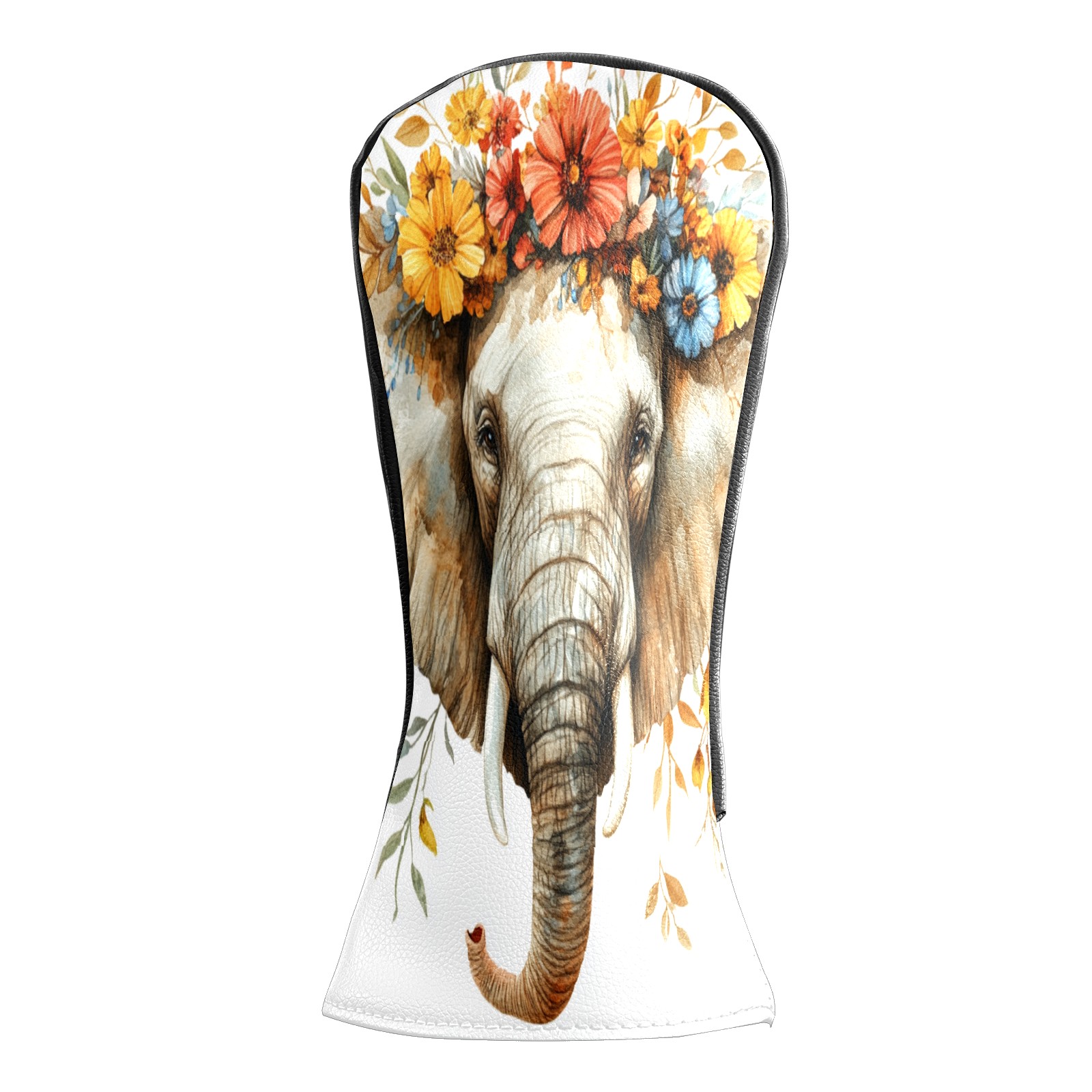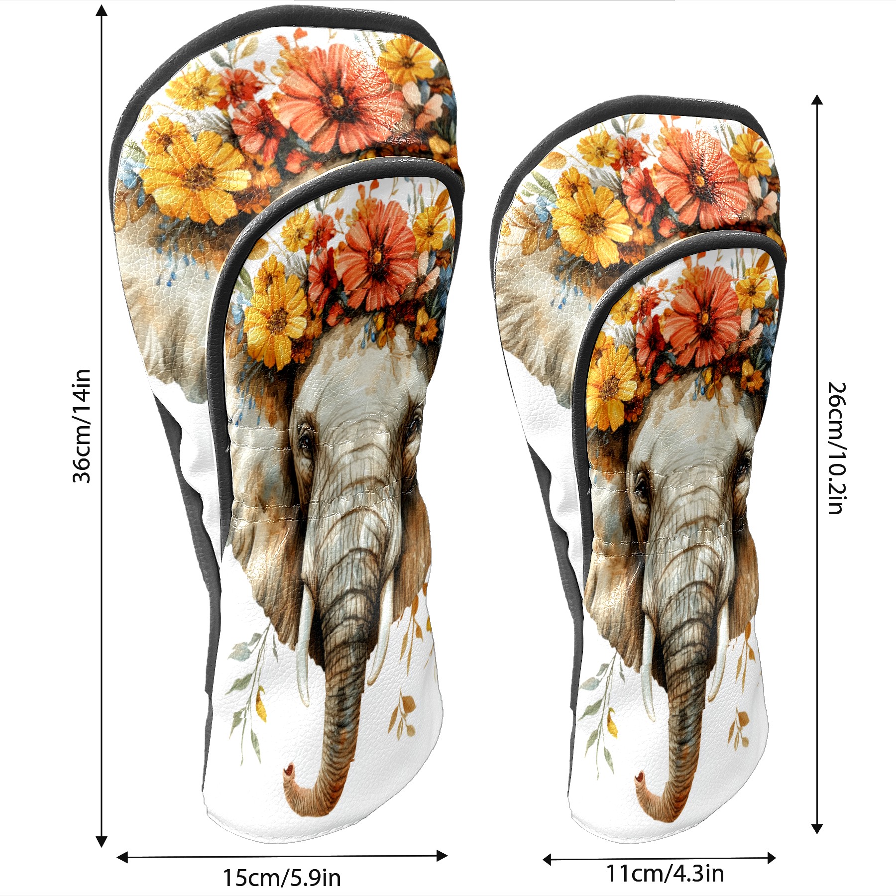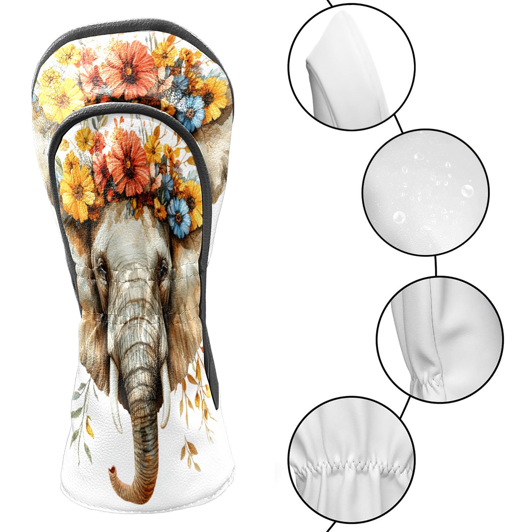Golf Club Covers PU Leather Waterproof,Golf Club Head Covers for Fairway Woods and Hybrids Wreath Elephant Unisex Suitable for Most Brands