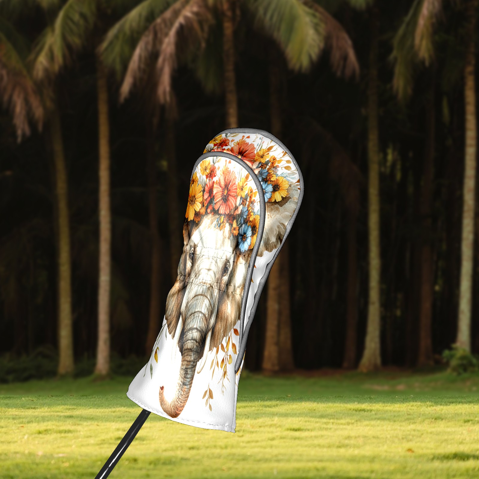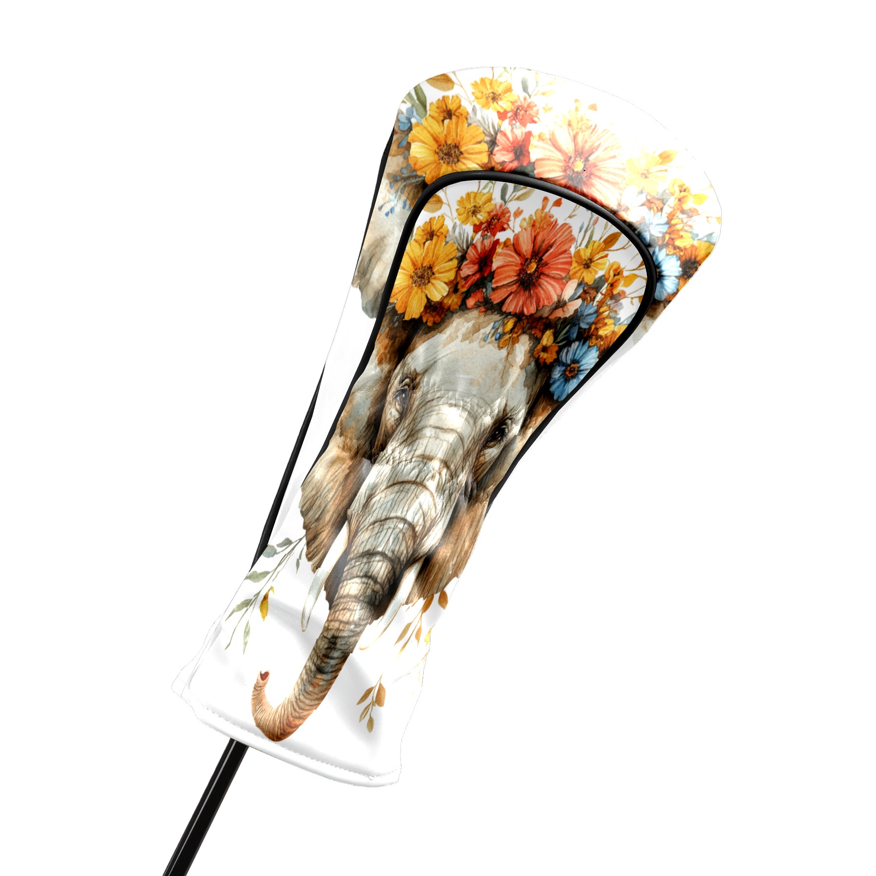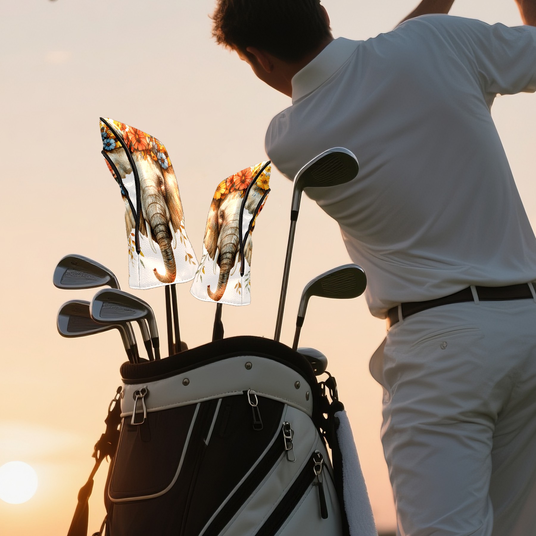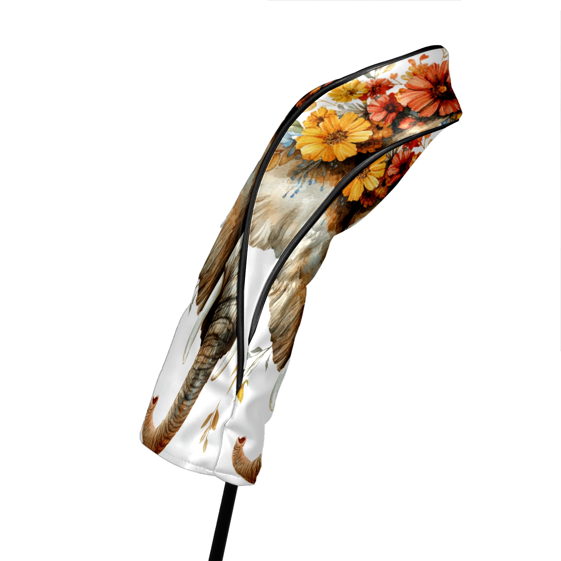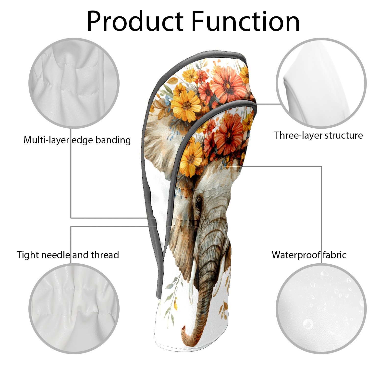 Golf Club Covers PU Leather Waterproof,Golf Club Head Covers for Fairway Woods and Hybrids Wreath Elephant Unisex Suitable for Most Brands