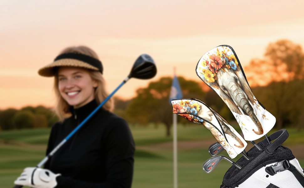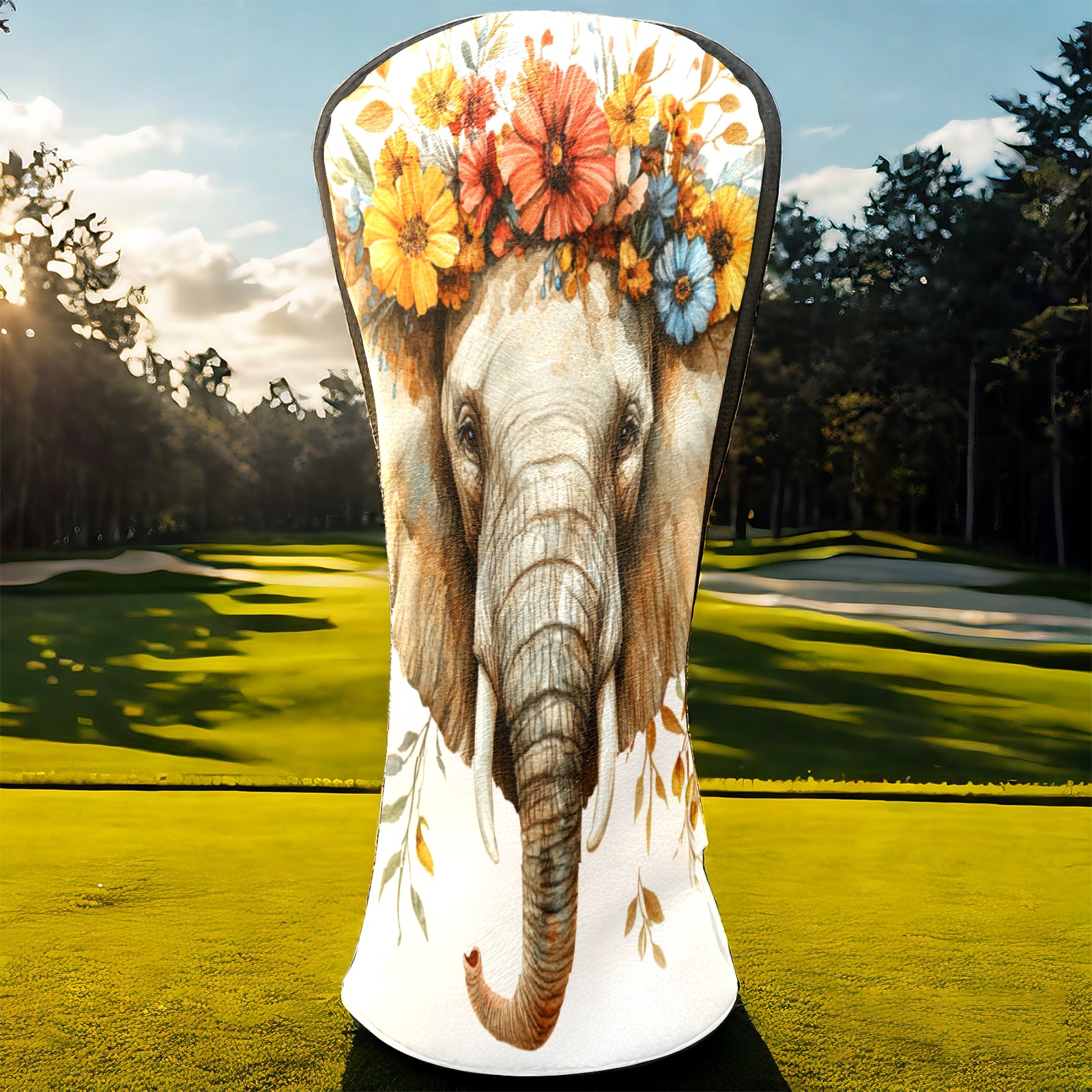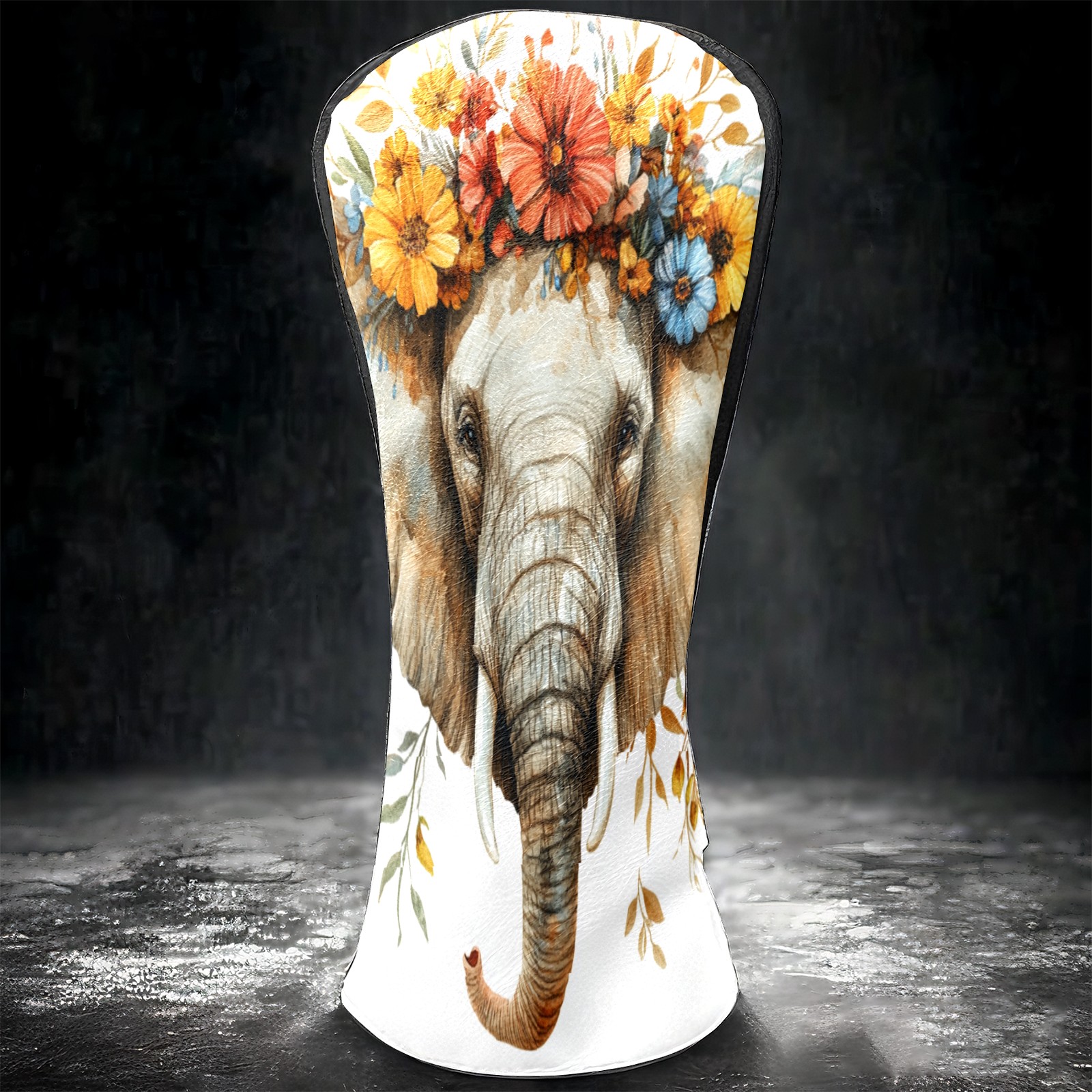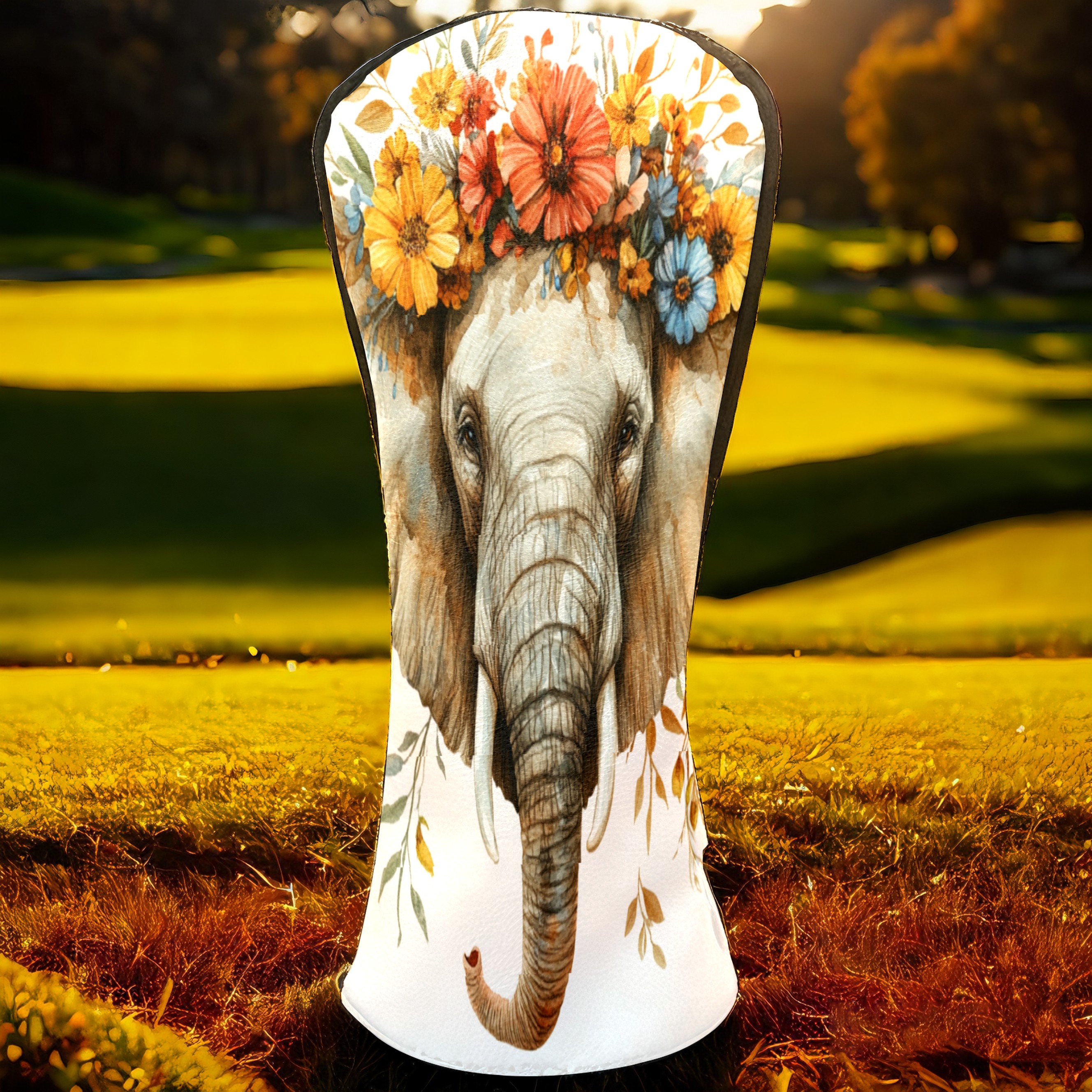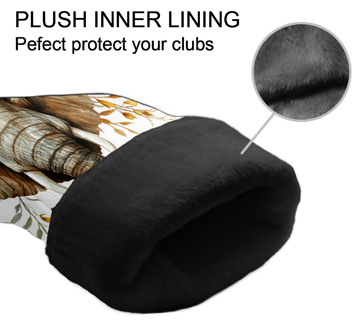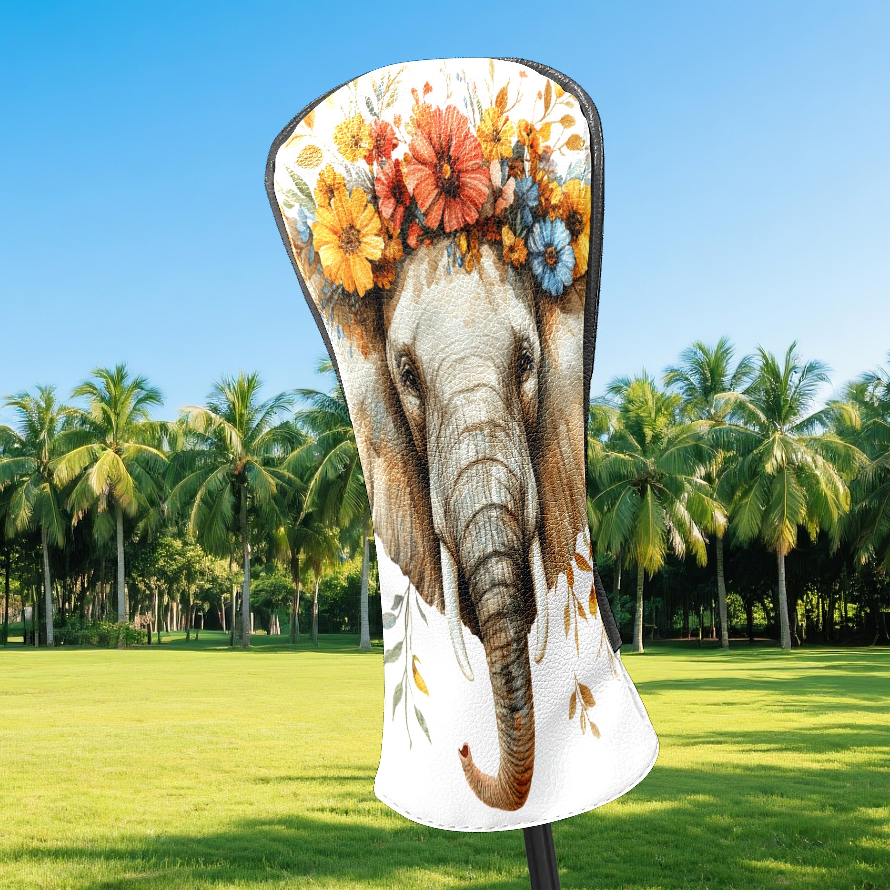 Golf Club Covers PU Leather Waterproof,Golf Club Head Covers for Fairway Woods and Hybrids Wreath Elephant Unisex Suitable for Most Brands