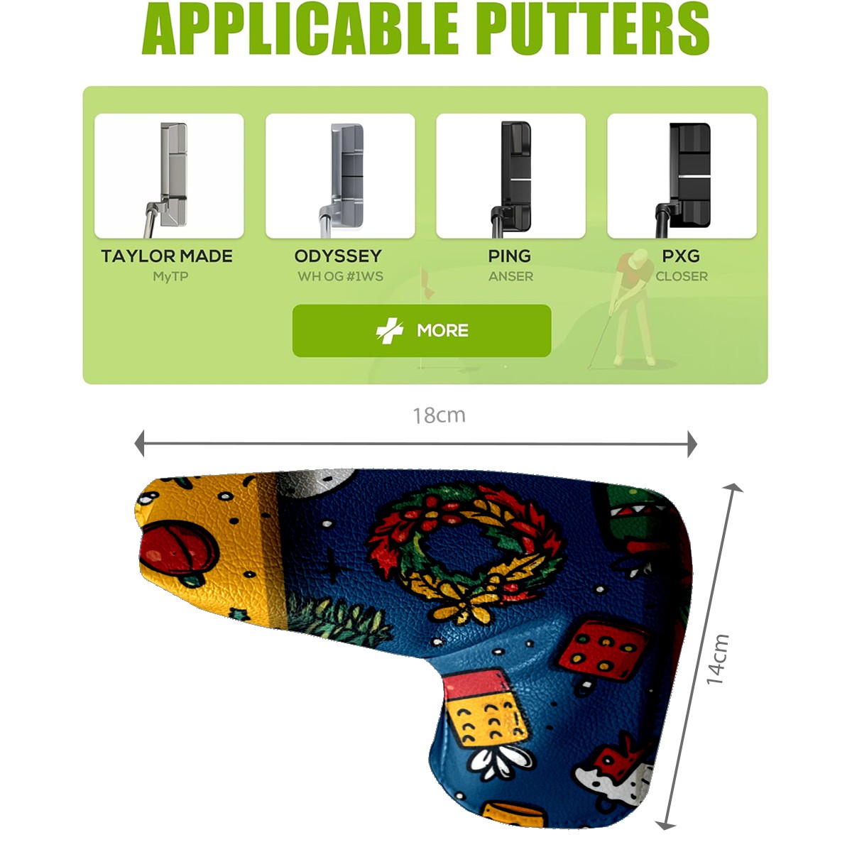 • <p>Golf putter head covers Made of high-quality PU leather They are eye-catching key protective equipment on the golf course, easy to clean, Suitable for most golf clubs. Not only waterproof and stain-proof, but also outlines a delicate texture with smooth lines.</p> <p>Whether it is given to a golf enthusiast with a sense of humor, or as a choice to reward yourself for upgrading your sports equipment, this club cover is an ideal gift that combines practicality and fun.</p>
