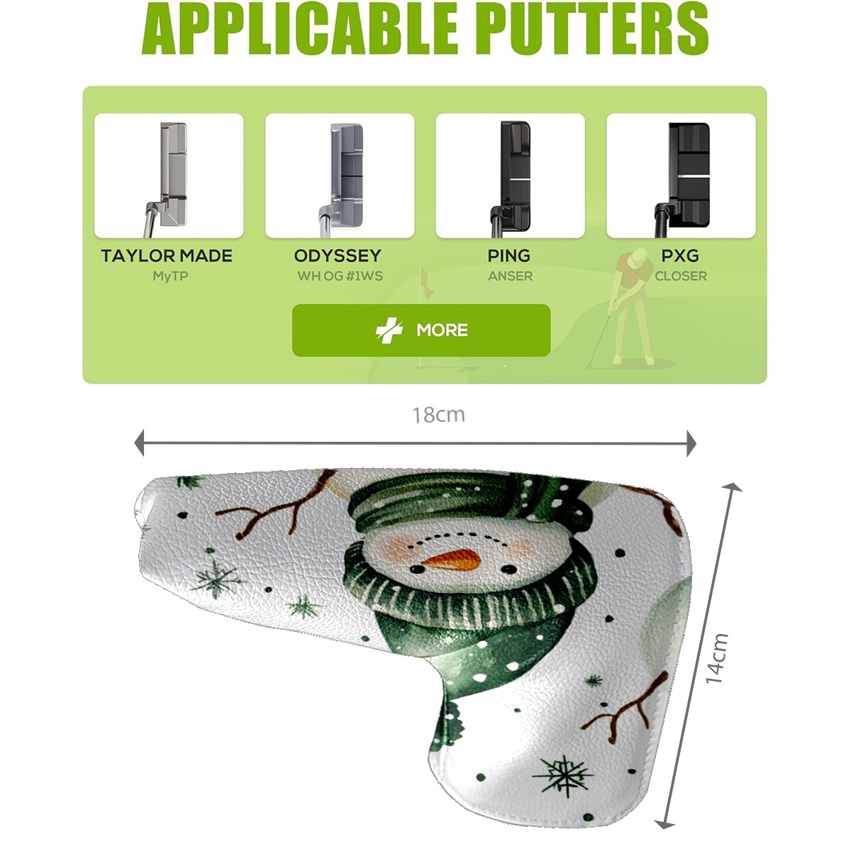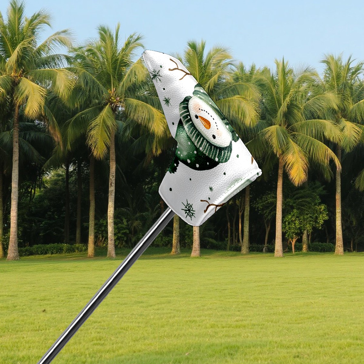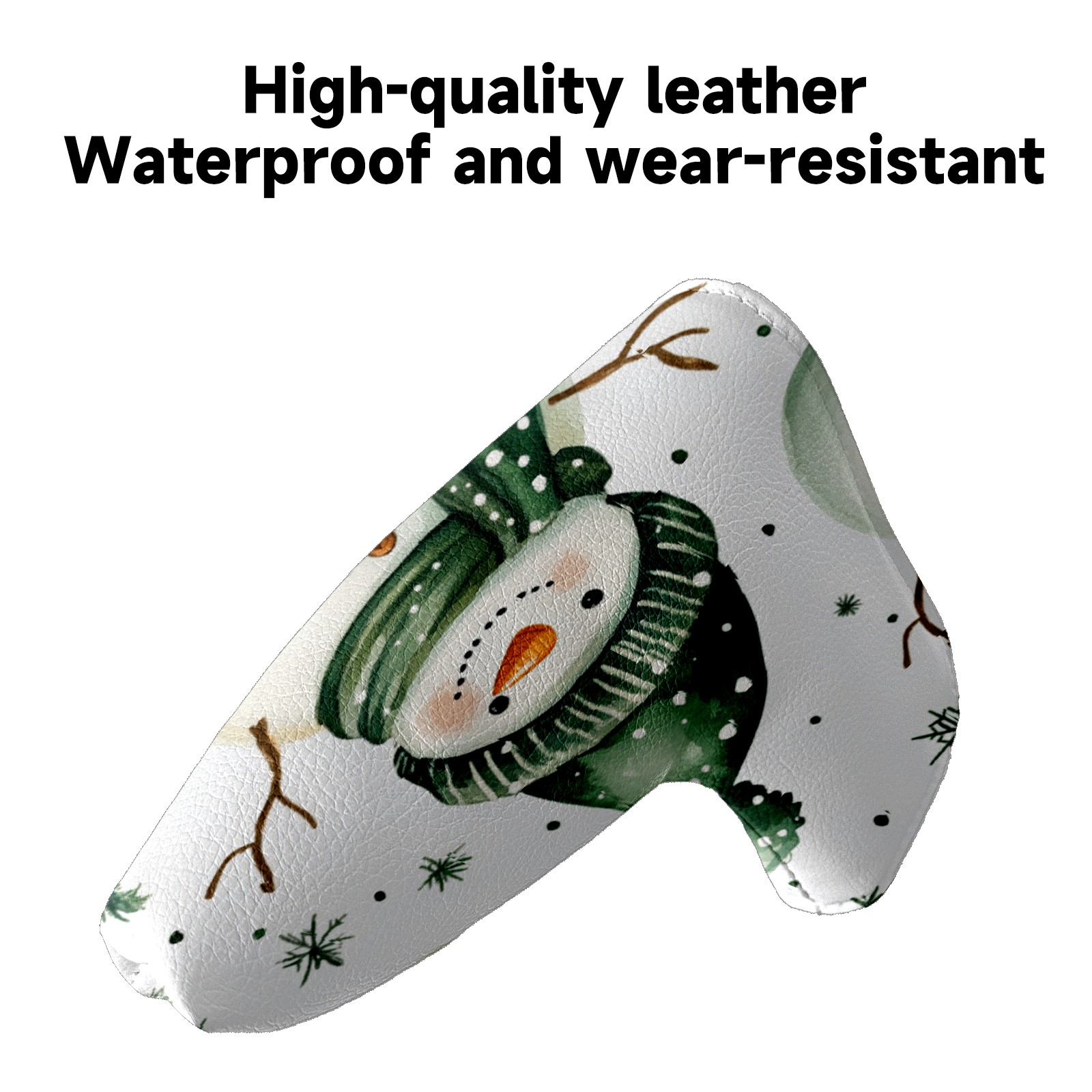 PU Leather Waterproof Golf Club Head Cover with Velvet Lining Golf Head Cover Suitable for Putters Golf Accessories for Men and Women White Christmas Snowman