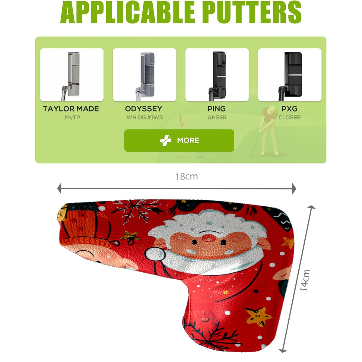 PU Leather Waterproof Golf Club Head Cover with Velvet Lining Golf Head Cover Suitable for Putters Golf Accessories for Men and Women Christmas Theme