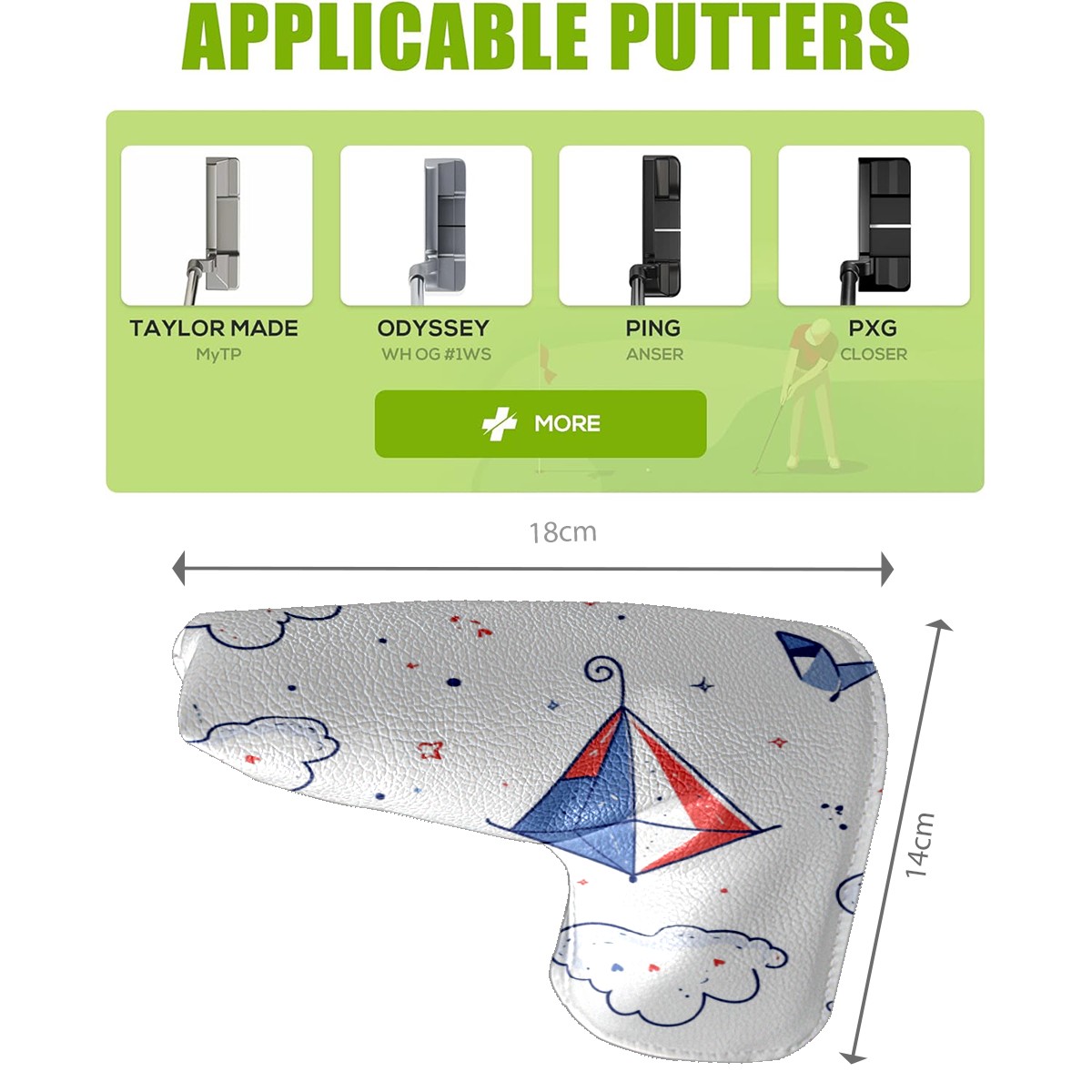PU Leather Waterproof Golf Club Head Cover with Velvet Lining Golf Head Cover Suitable for Putters Golf Accessories for Men and Women Cute Kite Clouds