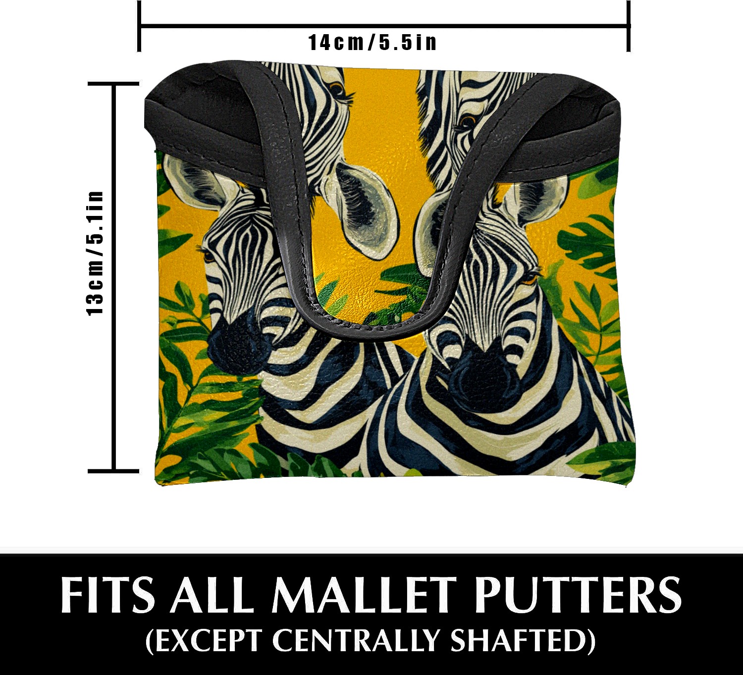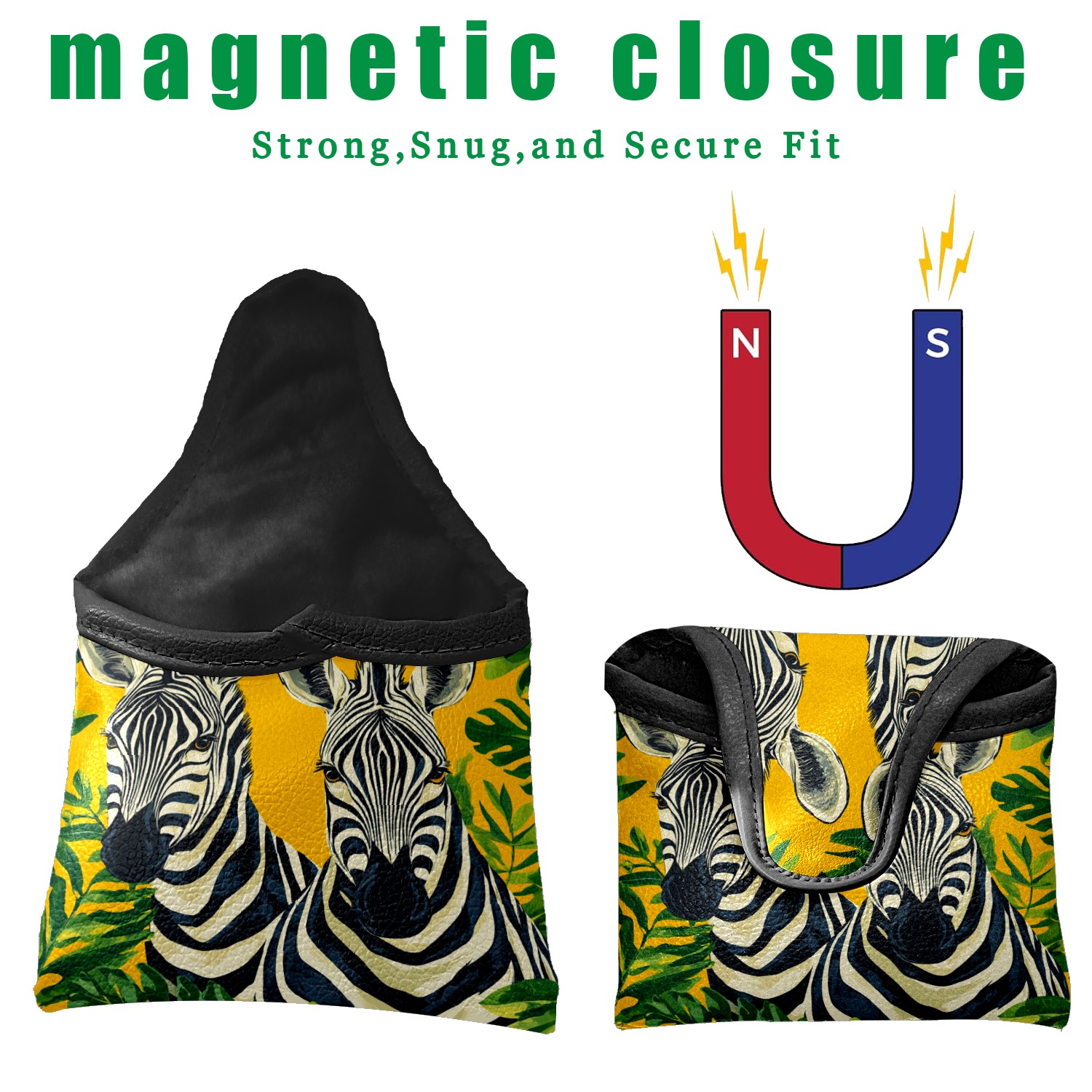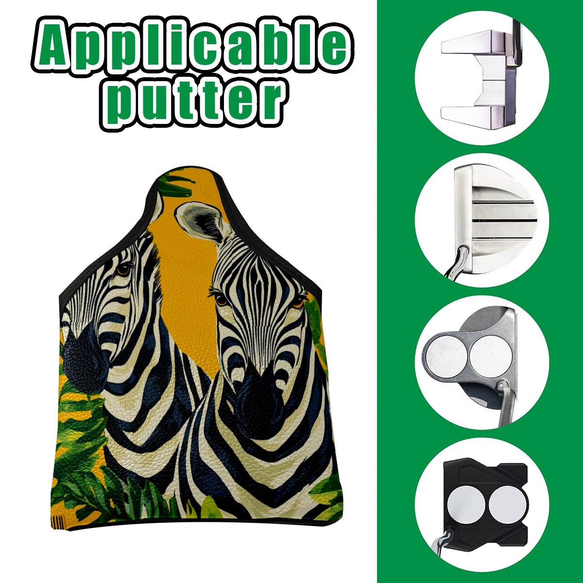 Golf Mallet Putter Cover Premium Leather Golf Putter Head Cover with Magnetic Closure Golf Cover for Men and Women Black White Zebra