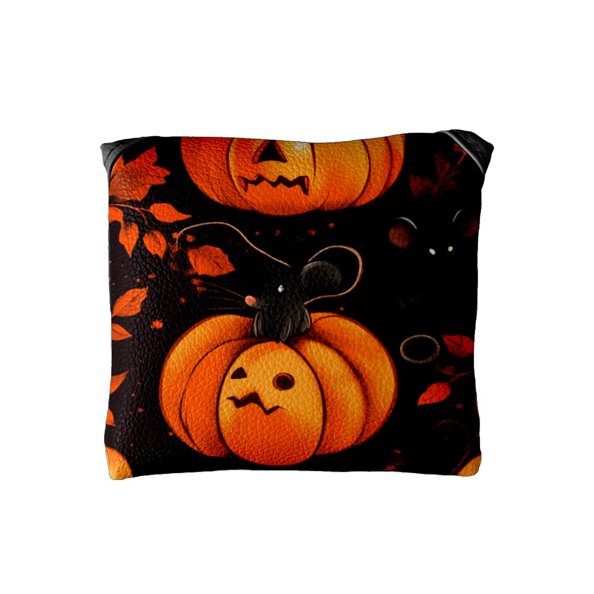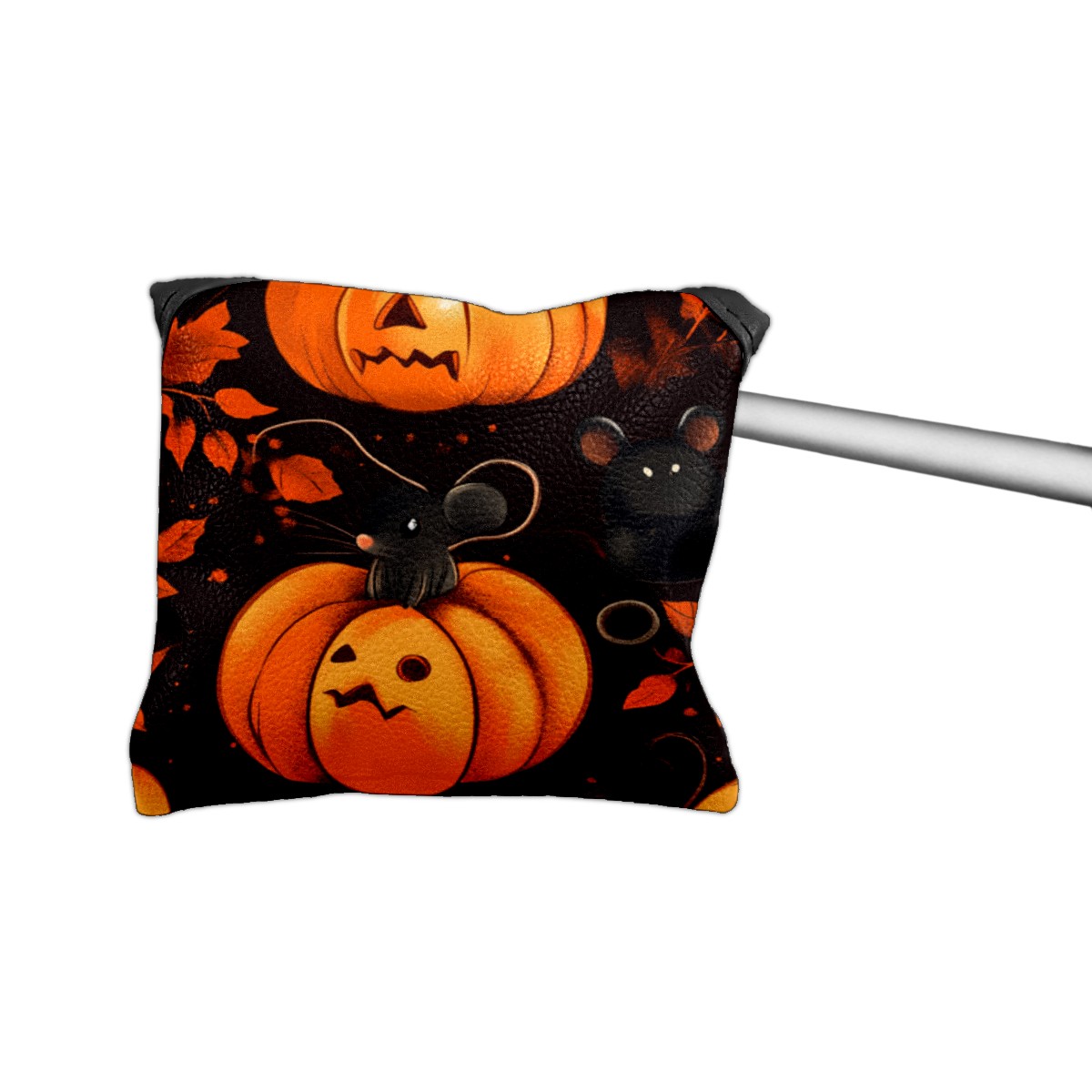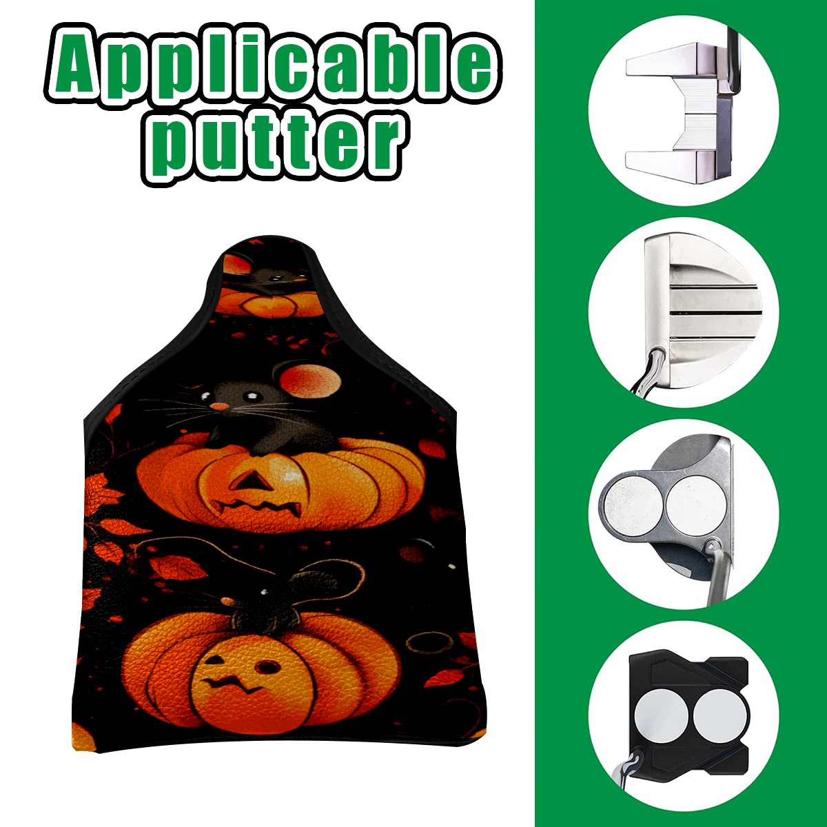 Golf Mallet Putter Cover Premium Leather Golf Putter Head Cover with Magnetic Closure Golf Cover for Men and Women Pumpkin Black Mouse