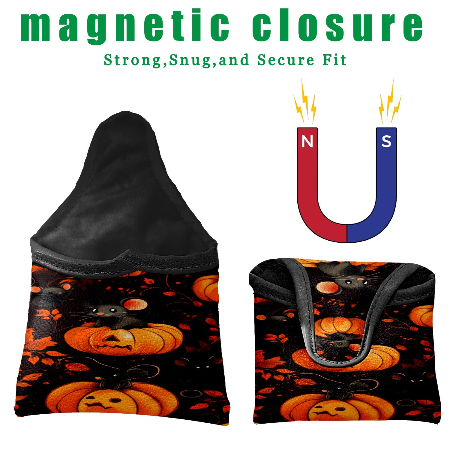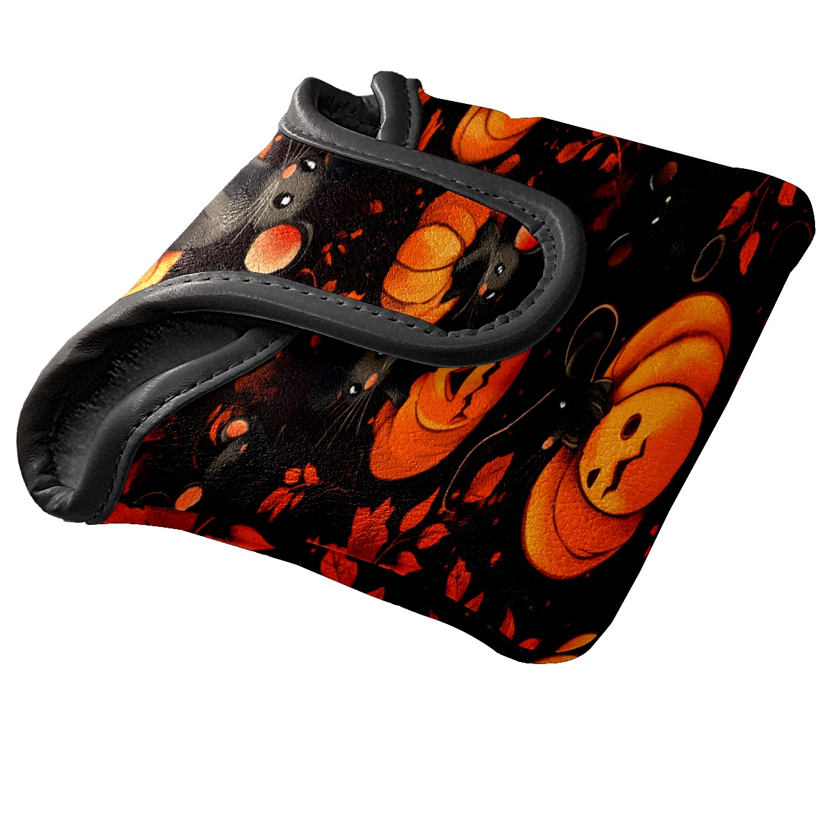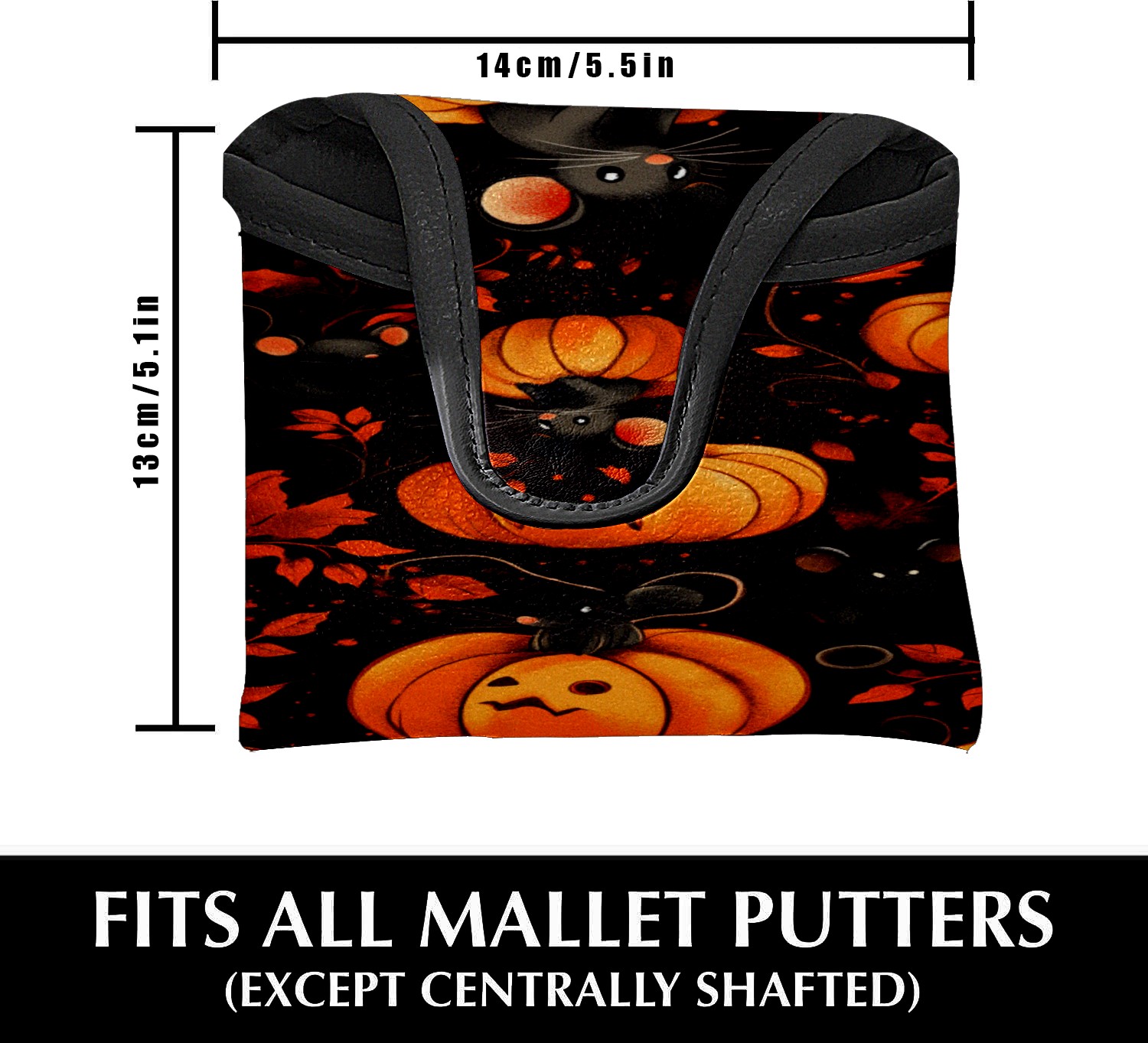 Golf Mallet Putter Cover Premium Leather Golf Putter Head Cover with Magnetic Closure Golf Cover for Men and Women Pumpkin Black Mouse