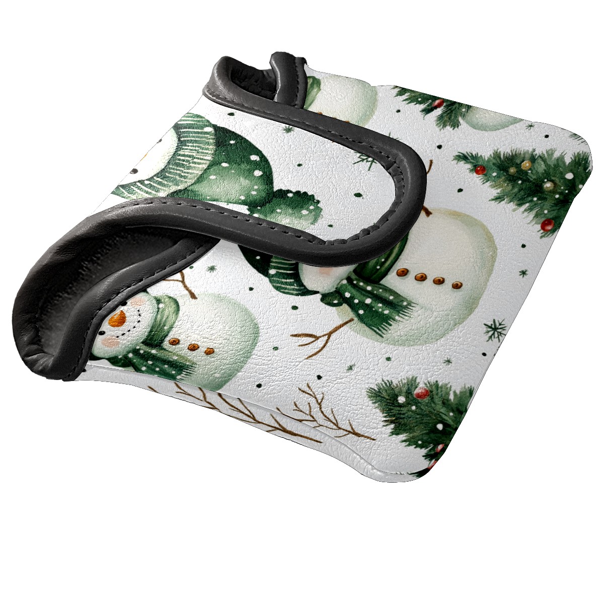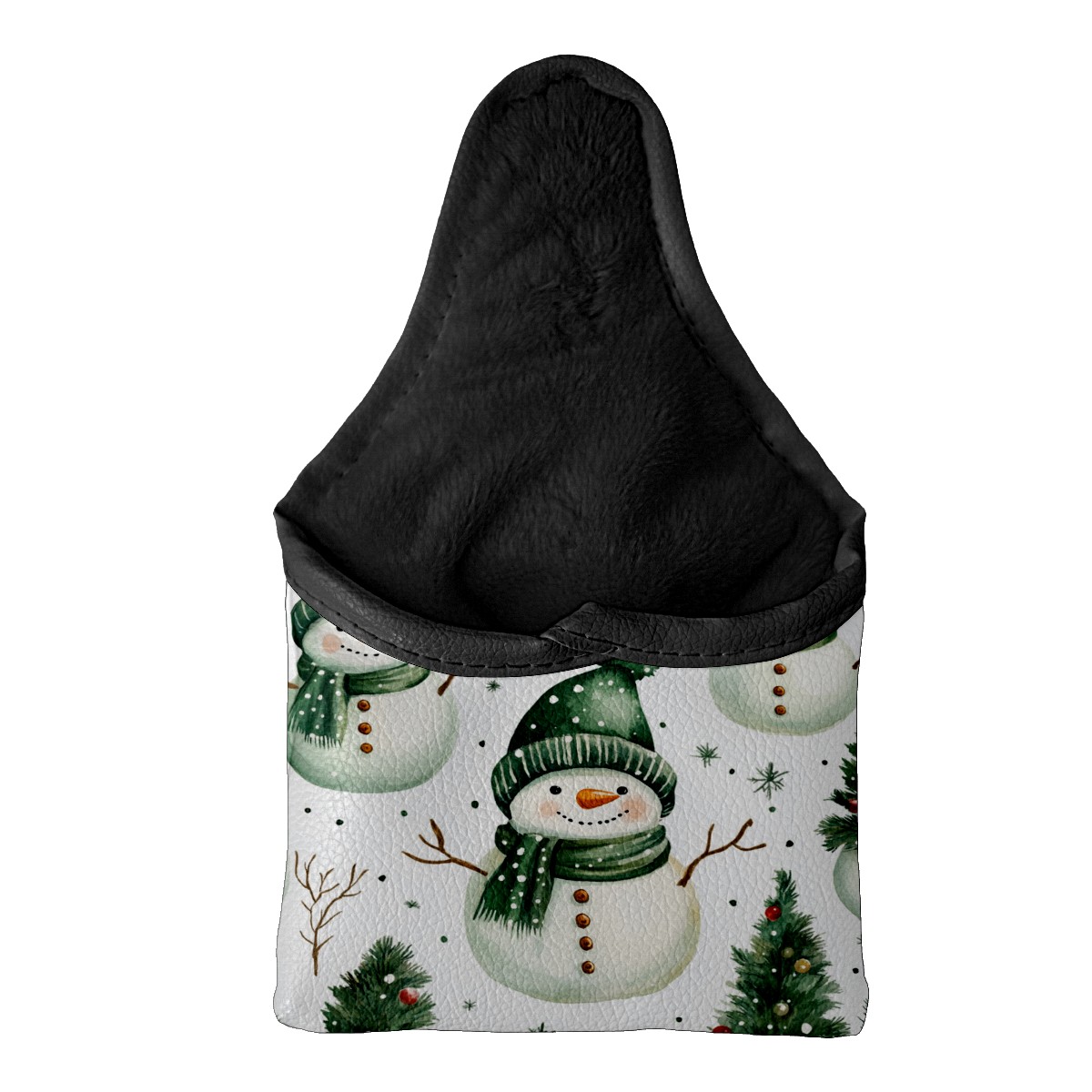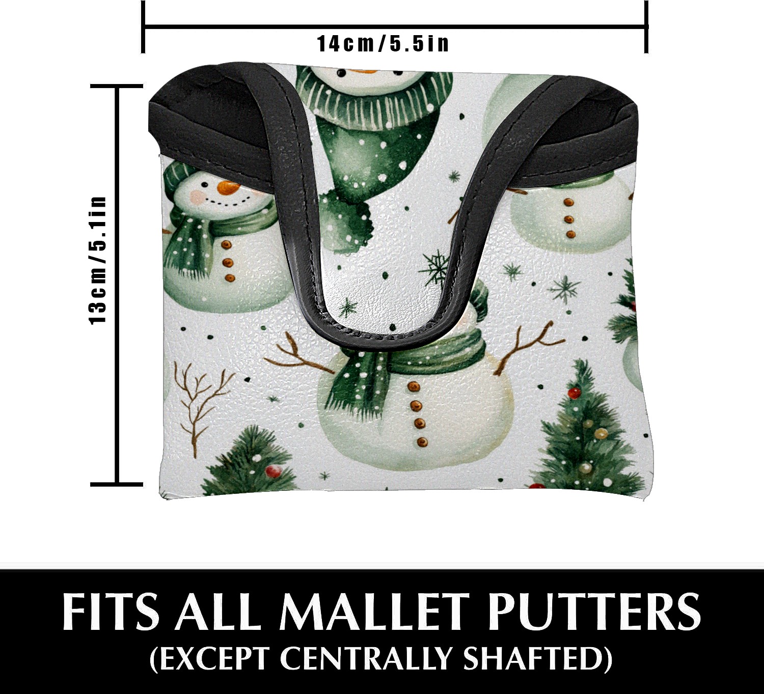 Golf Mallet Putter Cover Premium Leather Golf Putter Head Cover with Magnetic Closure Golf Cover for Men and Women White Christmas Snowman