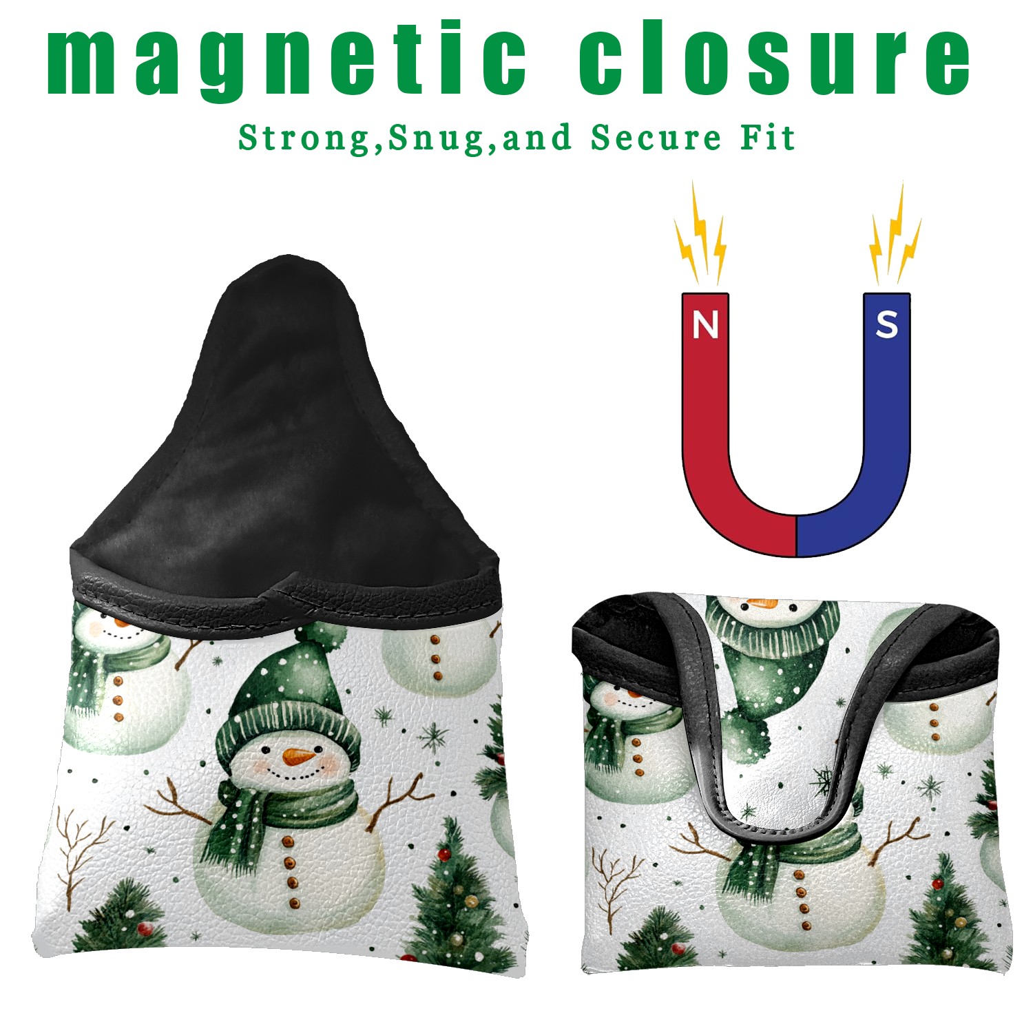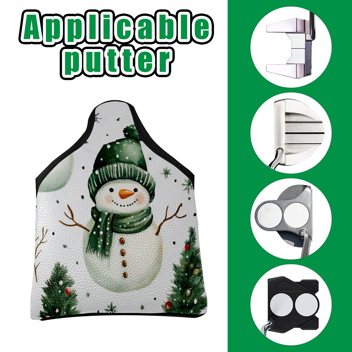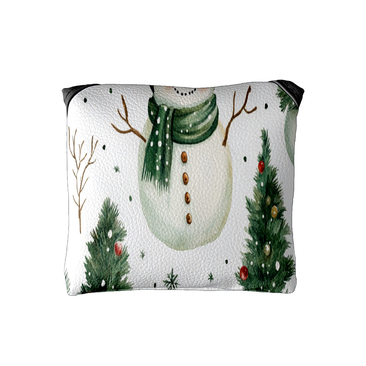 Golf Mallet Putter Cover Premium Leather Golf Putter Head Cover with Magnetic Closure Golf Cover for Men and Women White Christmas Snowman