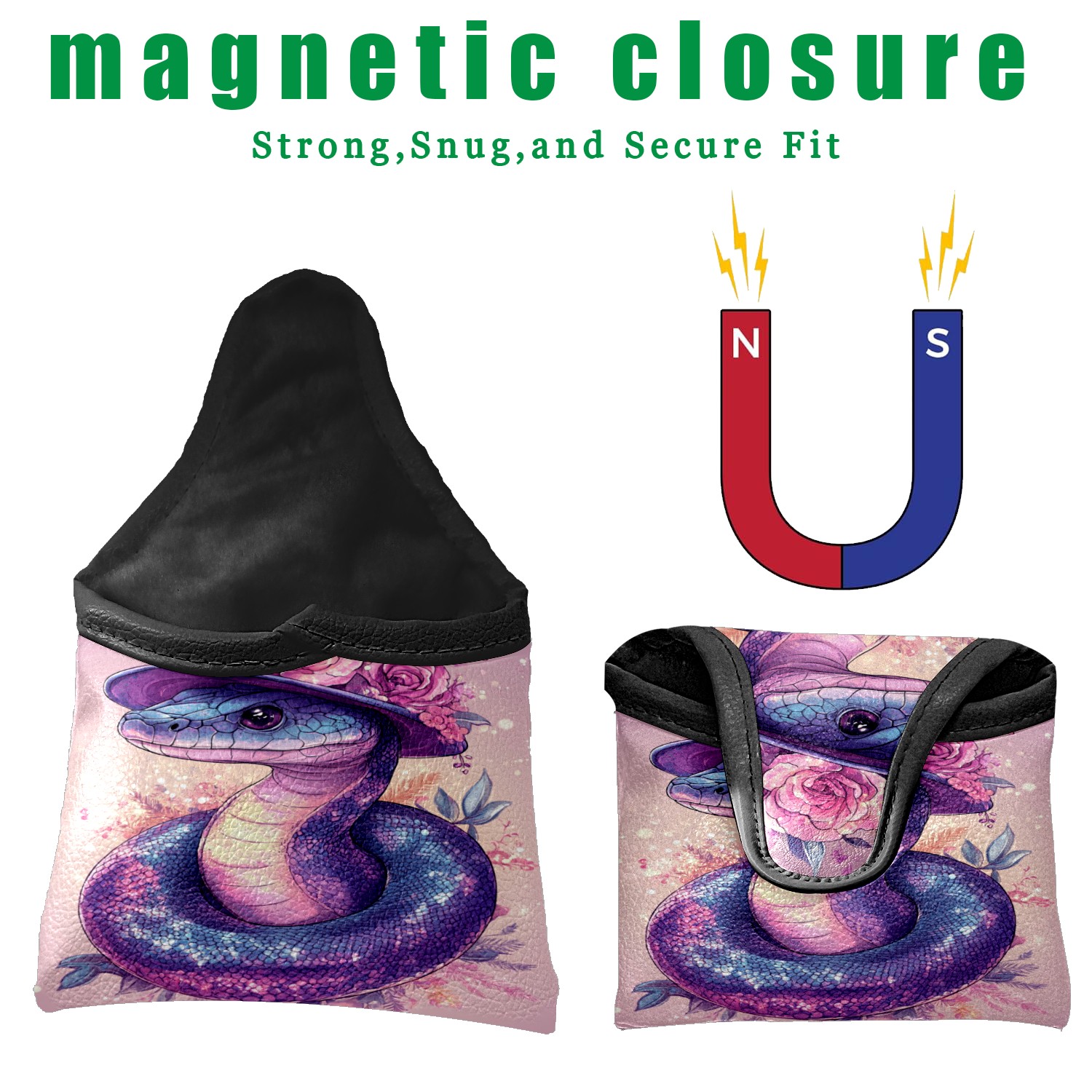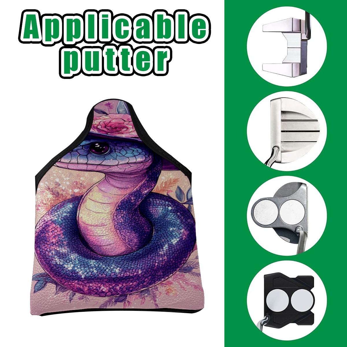 Golf Mallet Putter Cover Premium Leather Golf Putter Head Cover with Magnetic Closure Golf Cover for Men and Women Purple Snake