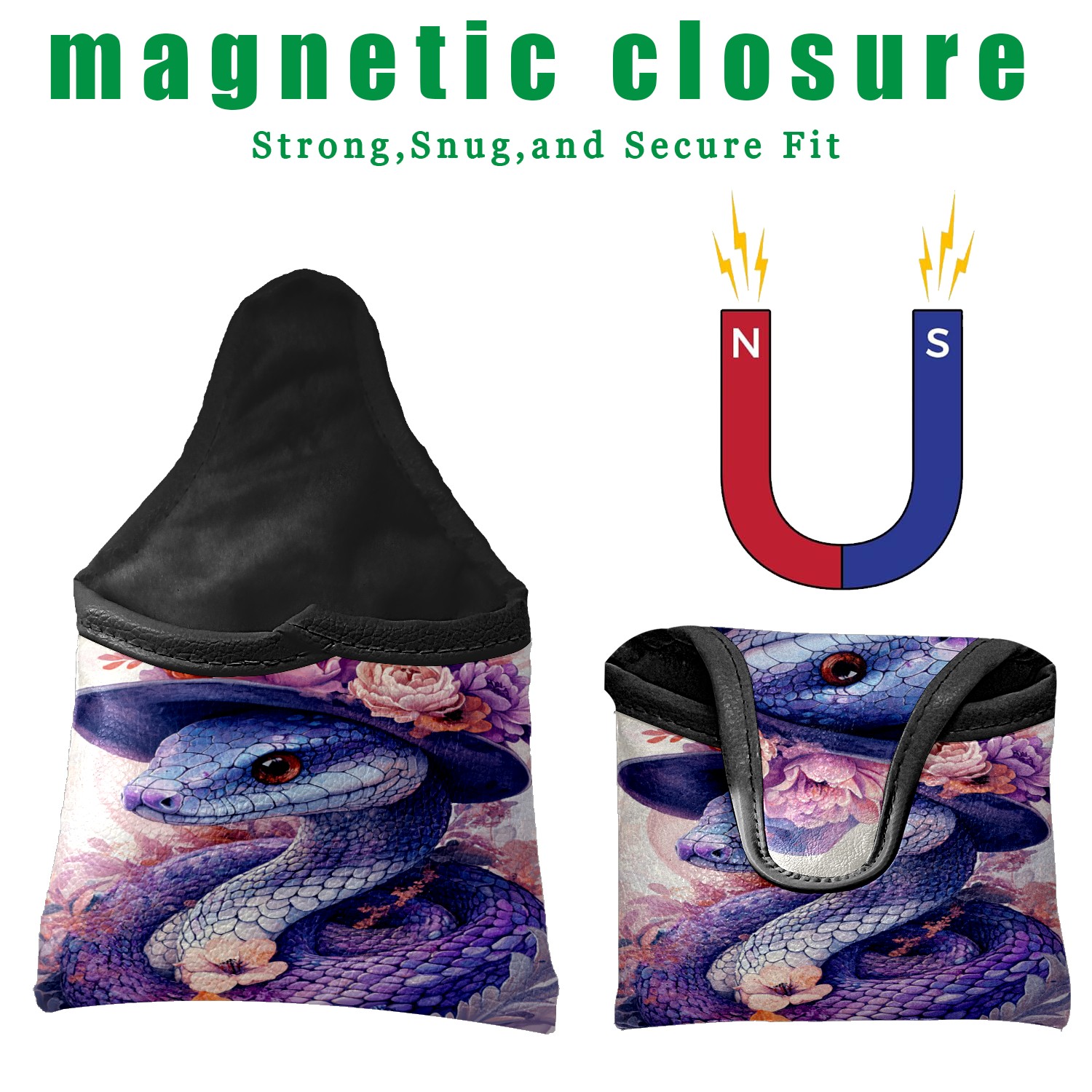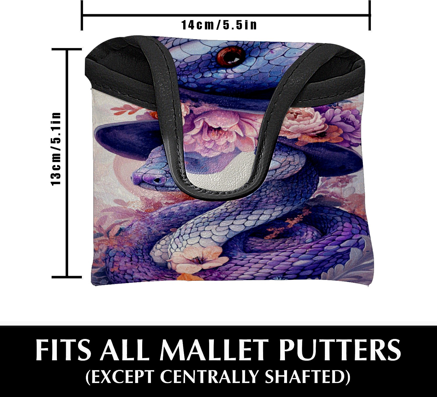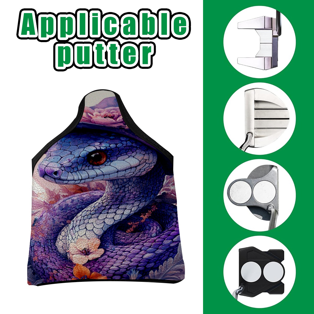 Golf Mallet Putter Cover Premium Leather Golf Putter Head Cover with Magnetic Closure Golf Cover for Men and Women Cute Purple Snake