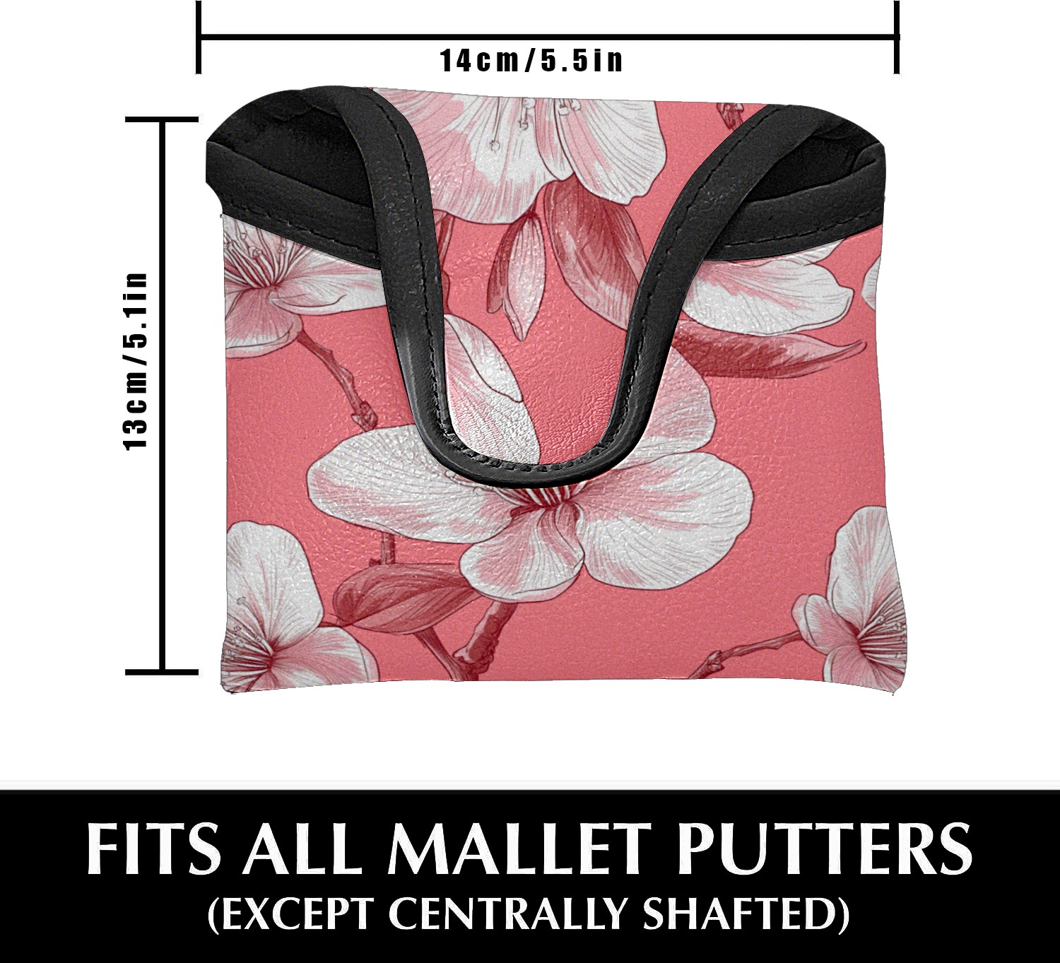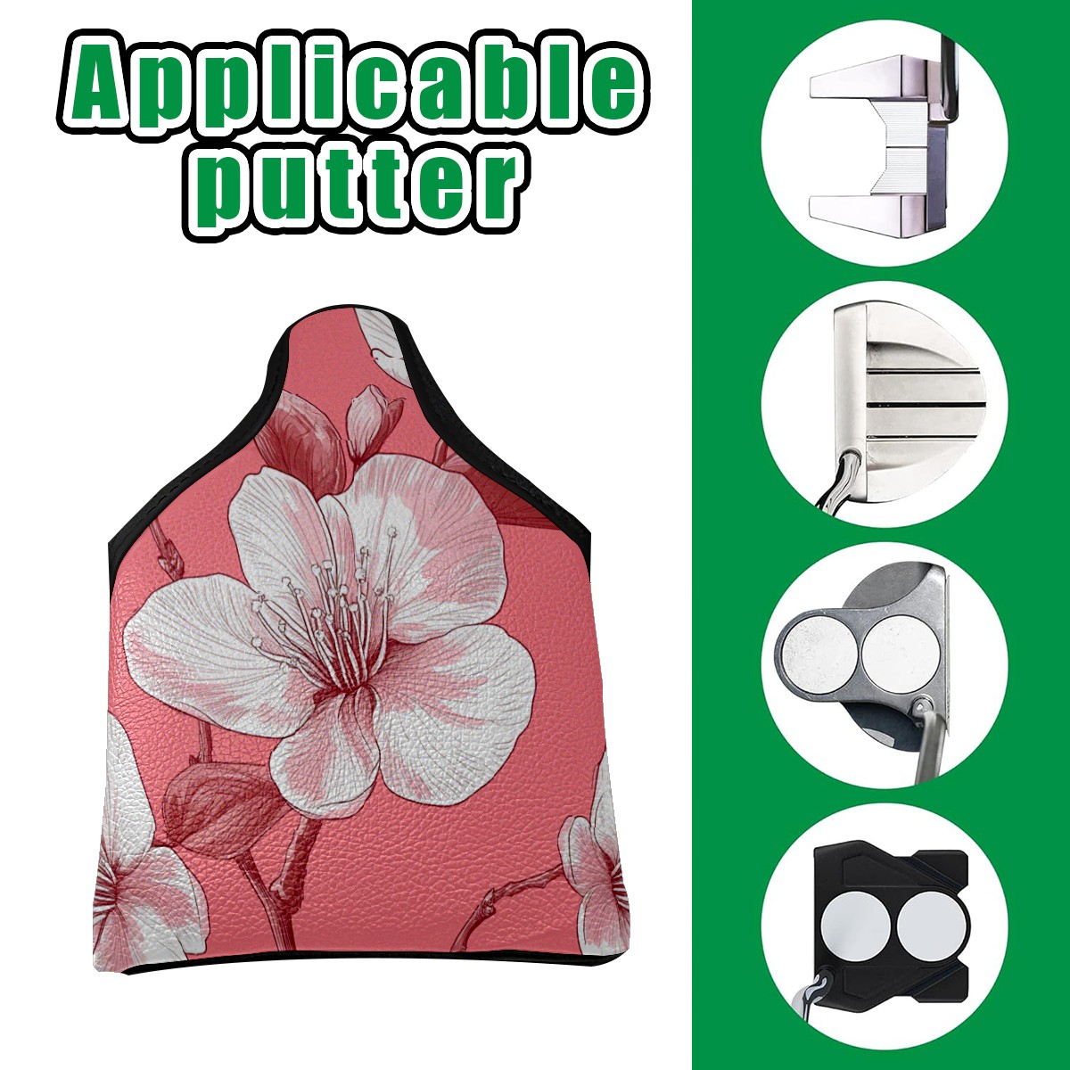 Golf Mallet Putter Cover Premium Leather Golf Putter Head Cover with Magnetic Closure Golf Cover for Men and Women Cherry Blossoms
