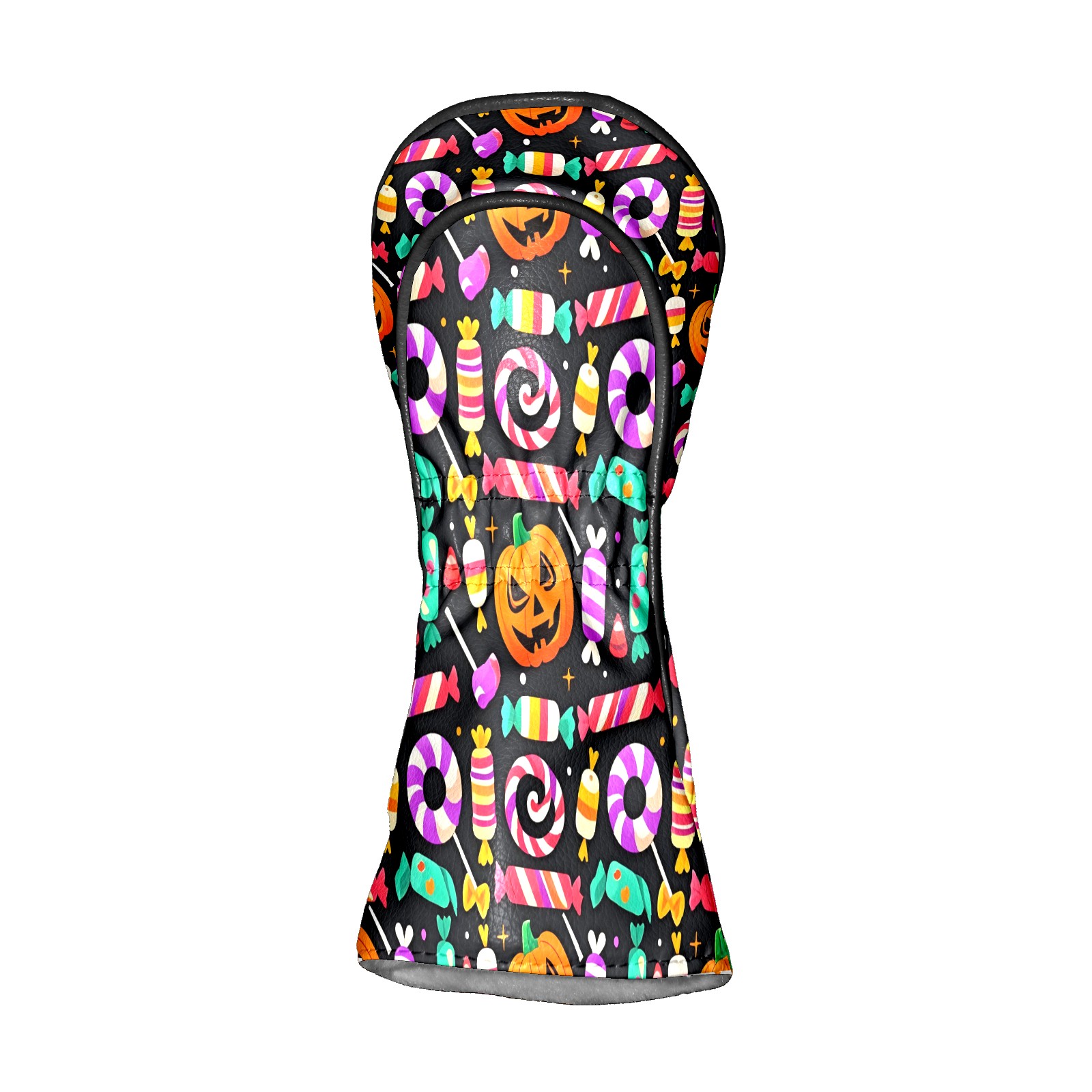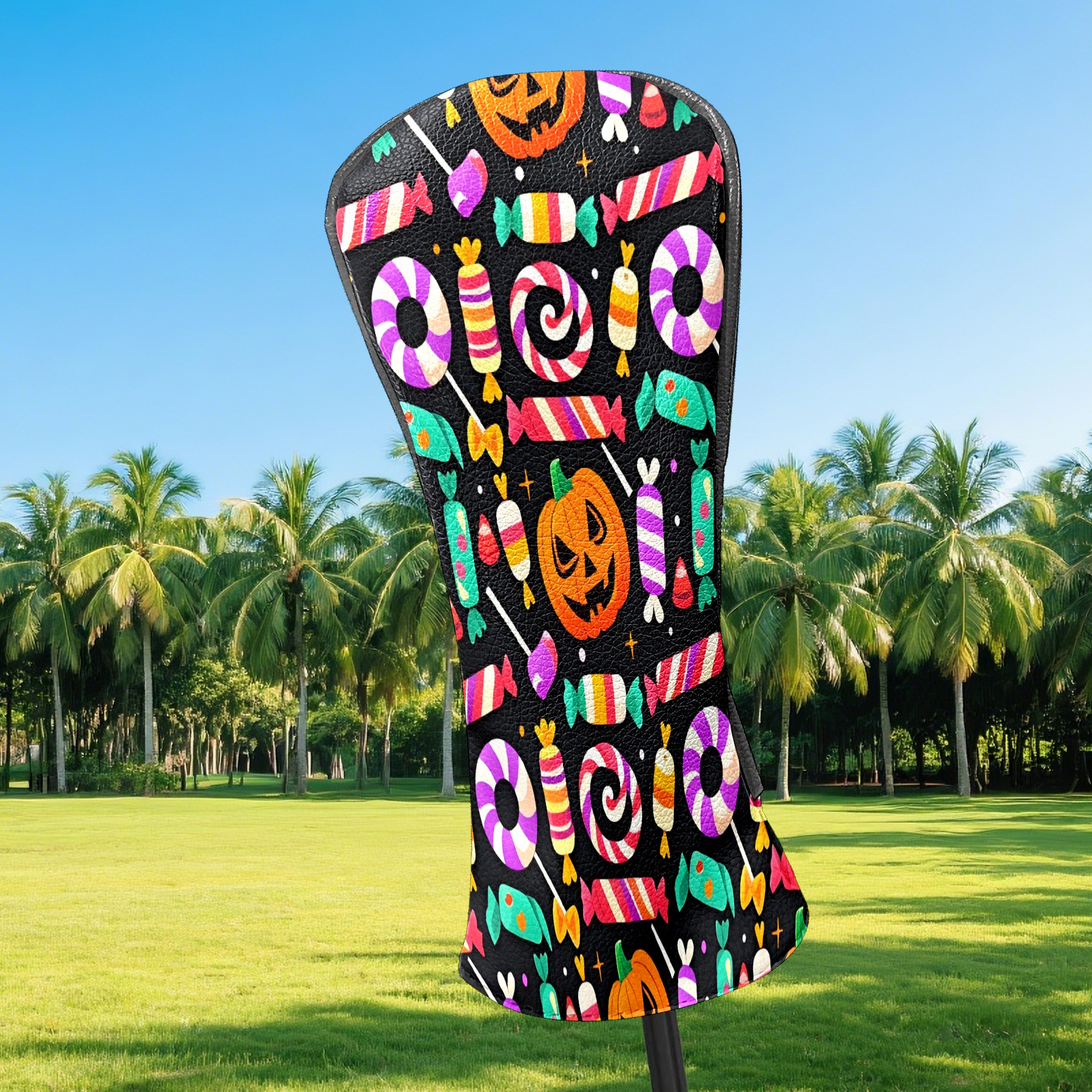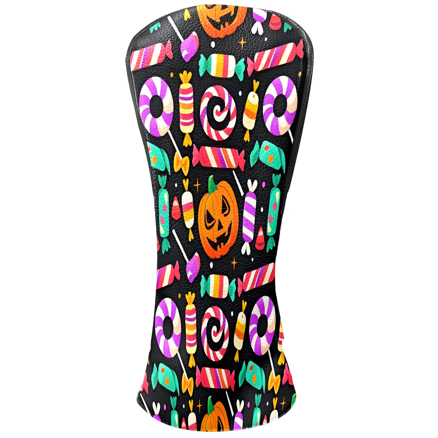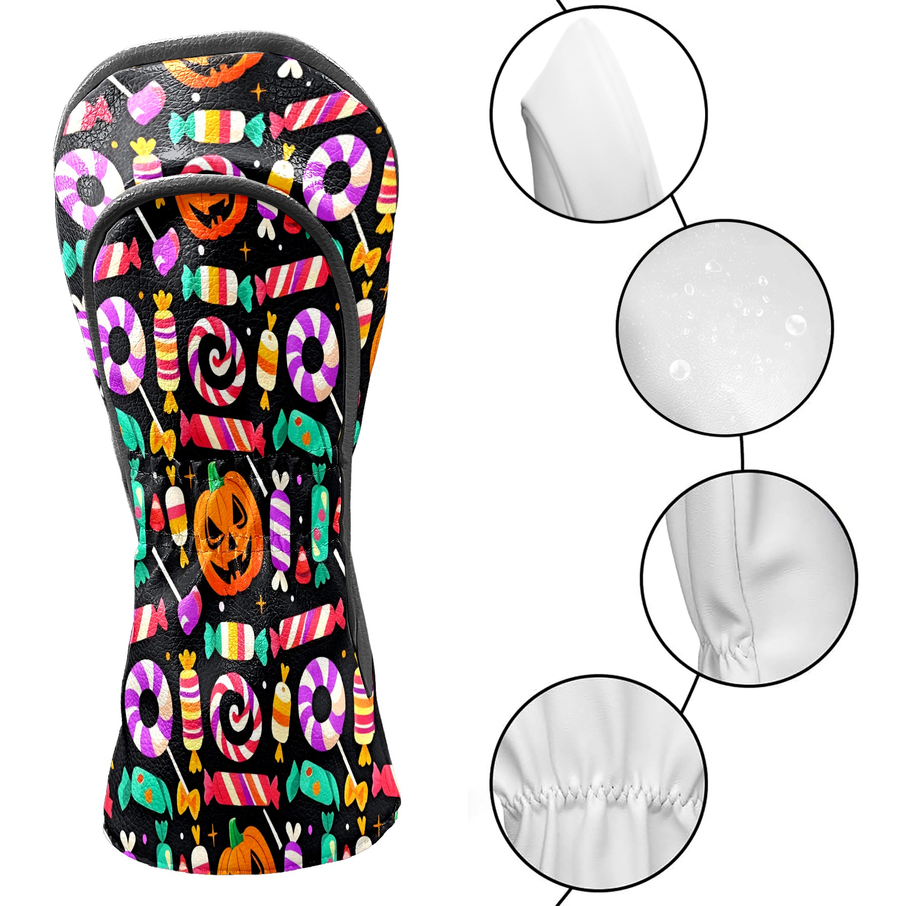 Golf Club Covers, Black HalloweenCandy Premium PU Leather Driver Hybrid Putter Head Covers with Velvet Lining, Waterproof Golf Gifts for Men Women